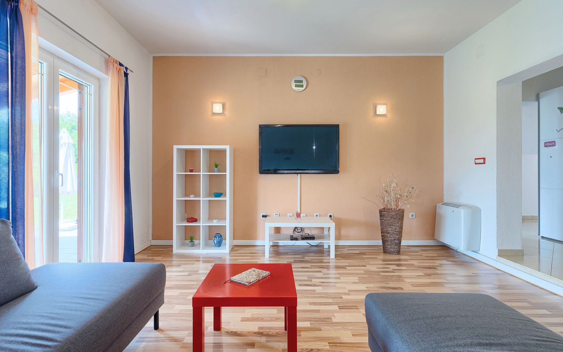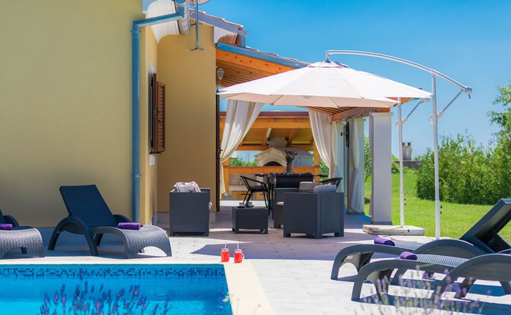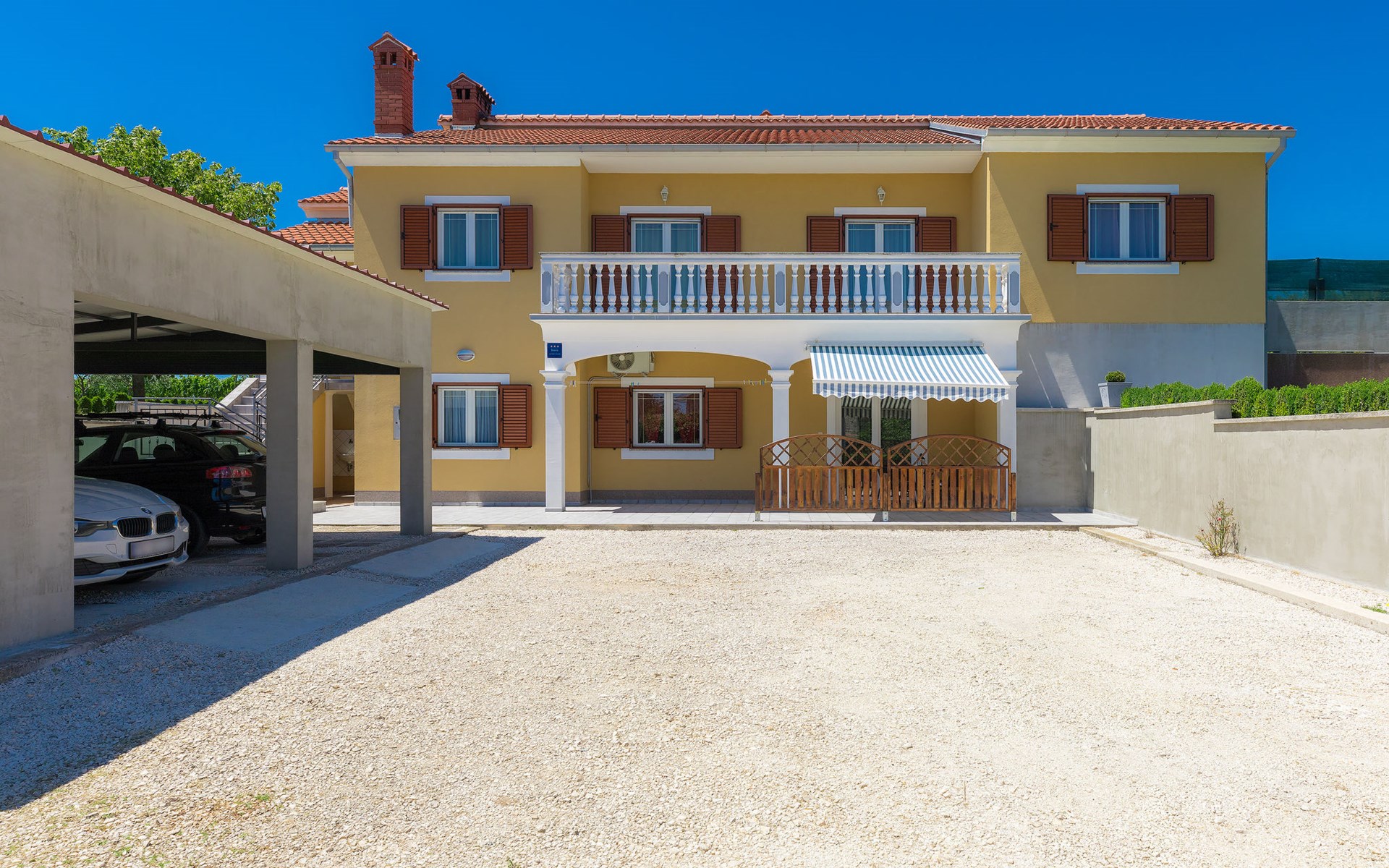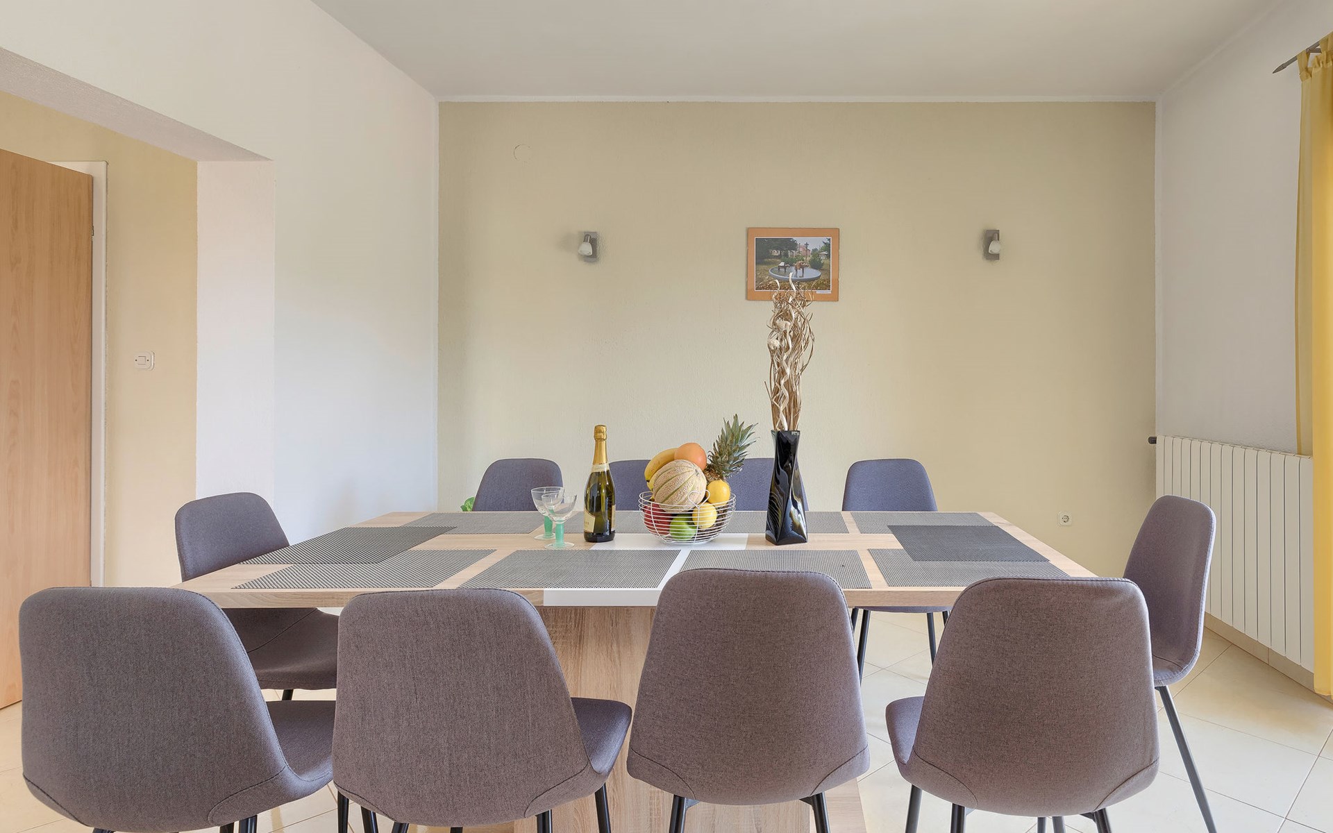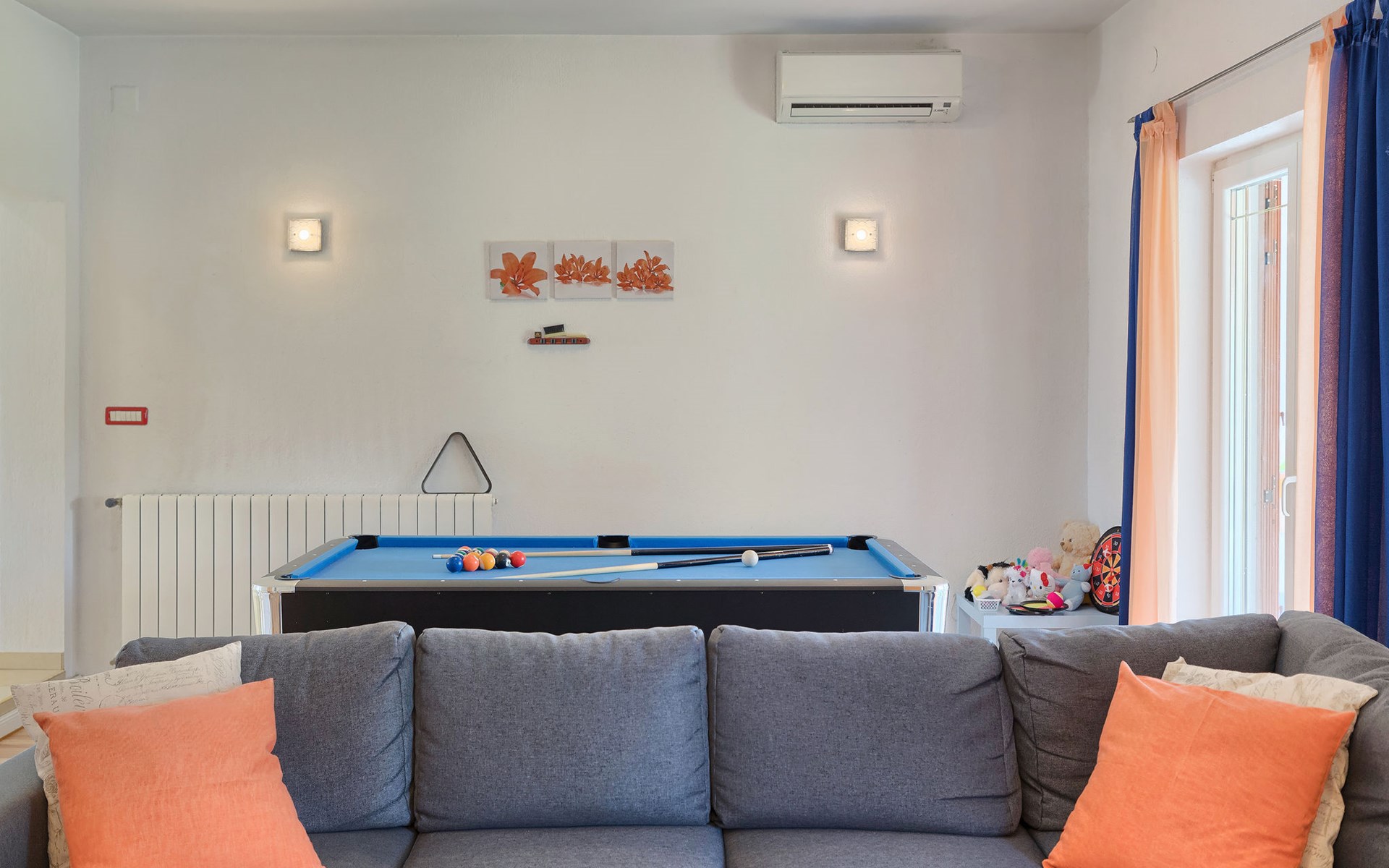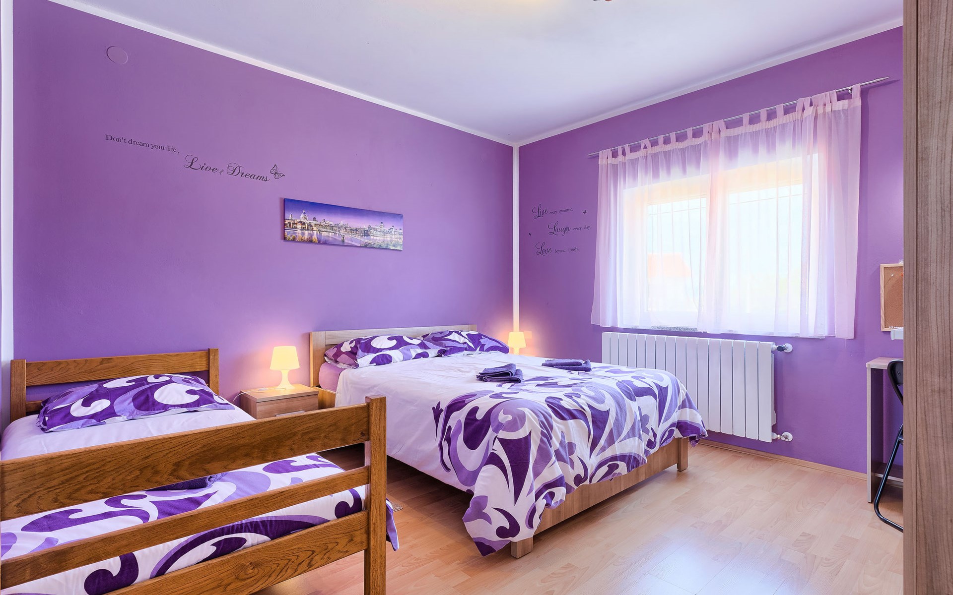 Einfamilienhaus "Melian", auf 2 Stockwerken. Im Weiler Jurićev Kal, 5 km vom Zentrum von Barban, sonnige Lage, 14 km vom Meer, im Grünen. Zur Alleinbenutzung: Grundstück 2'500 m2, schöner Garten mit Rasen und Pflanzen, Schwimmbad eckig (8 x 4 m, 140 cm tief, saisonale Verfügbarkeit: 15.Mai. - 01.Okt.) mit Innentreppe. Aussendusche, Volleyball, Badminton, Grillhaus, Kinderspielplatz (Schaukel). Im Hause: Internetzugang, Billard, Tischfussball, Einstellraum für Fahrräder, Waschmaschine. Parkplatz (für 2 Autos, überdacht) beim Haus auf dem Grundstück. Einkaufsgeschäft 5 km, Supermarkt 14 km, Restaurant 5 km, Café 5 km, Bushaltestelle 5.2 km, Kieselstrand 14 km. Tennis 25 km, Reitstall 13 km, Wanderwege ab Haus 100 m, Radweg 150 m. Das Haus besteht aus 2 Wohnungen vermietet als eine Einheit. .