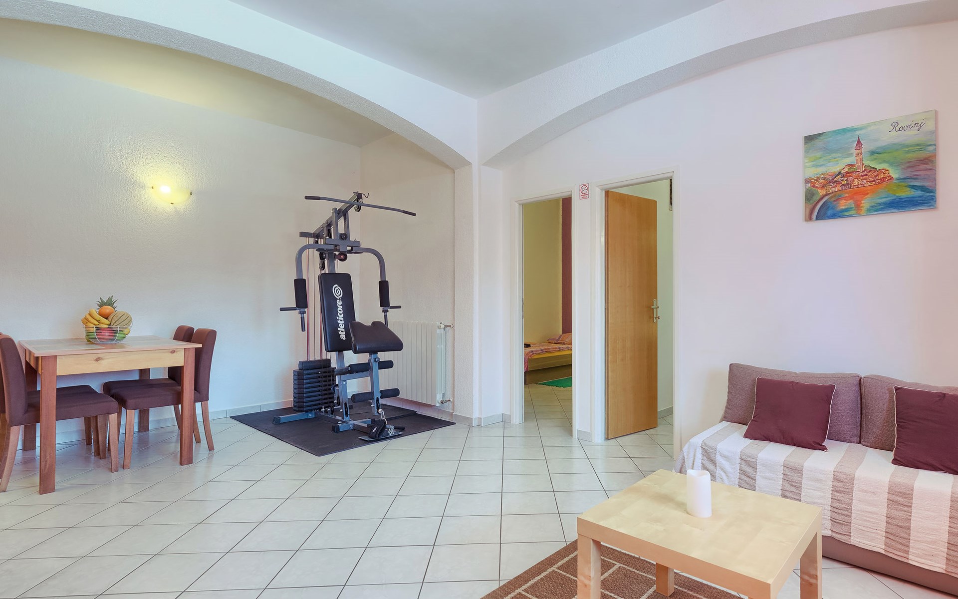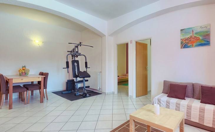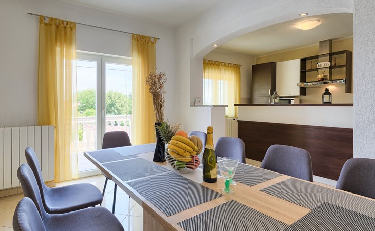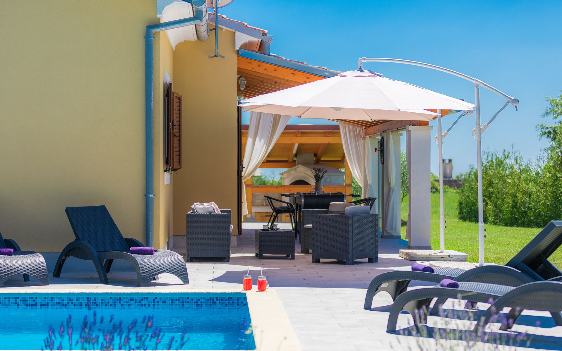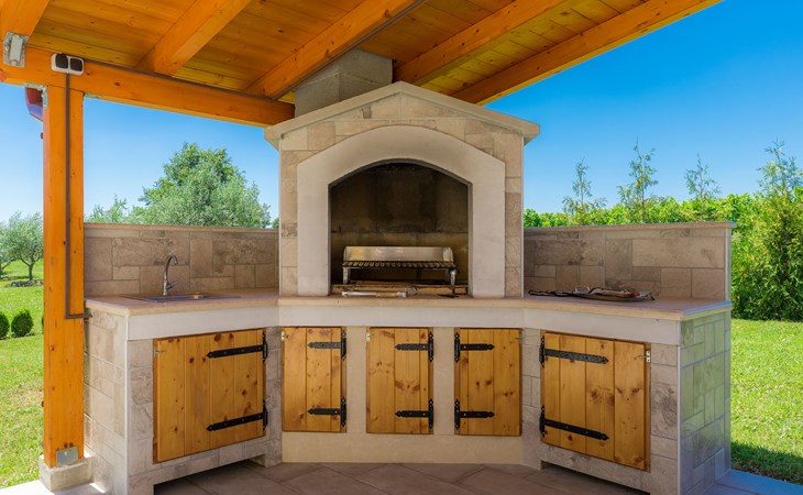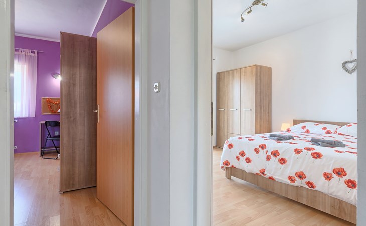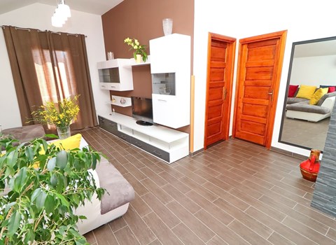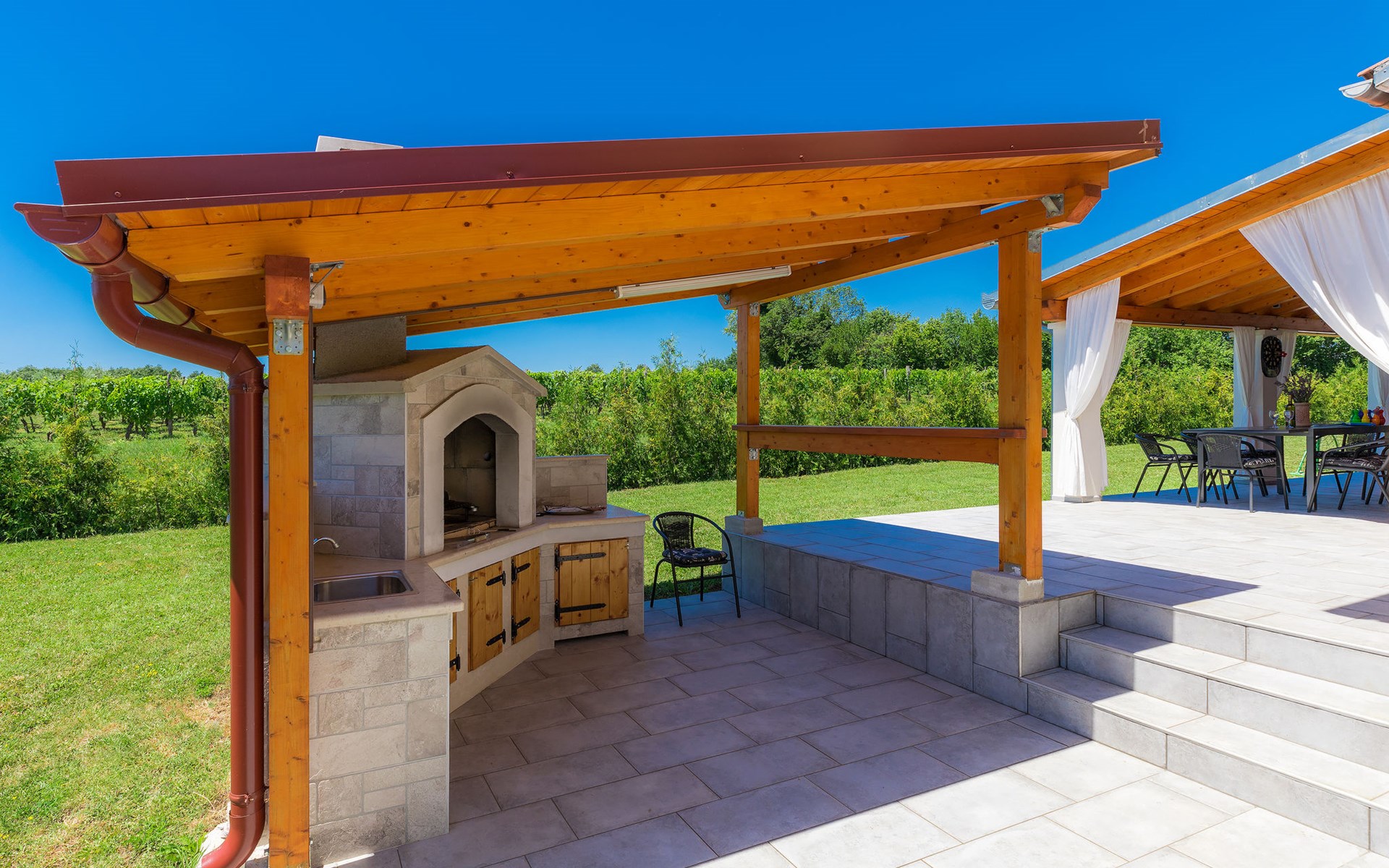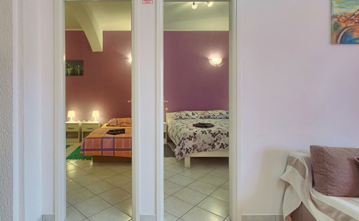 Einfamilienhaus "Melian", auf 2 Stockwerken. Im Weiler Jurićev Kal, 5 km vom Zentrum von Barban, sonnige Lage, 14 km vom Meer, im Grünen. Zur Alleinbenutzung: Grundstück 2'500 m2, schöner Garten mit Rasen und Pflanzen, Schwimmbad eckig (8 x 4 m, 140 cm tief, saisonale Verfügbarkeit: 15.Mai. - 01.Okt.) mit Innentreppe. Aussendusche, Volleyball, Badminton, Grillhaus, Kinderspielplatz (Schaukel). Im Hause: Internetzugang, Billard, Tischfussball, Einstellraum für Fahrräder, Waschmaschine. Parkplatz (für 2 Autos, überdacht) beim Haus auf dem Grundstück. Einkaufsgeschäft 5 km, Supermarkt 14 km, Restaurant 5 km, Café 5 km, Bushaltestelle 5.2 km, Kieselstrand 14 km. Tennis 25 km, Reitstall 13 km, Wanderwege ab Haus 100 m, Radweg 150 m. Das Haus besteht aus 2 Wohnungen vermietet als eine Einheit. .