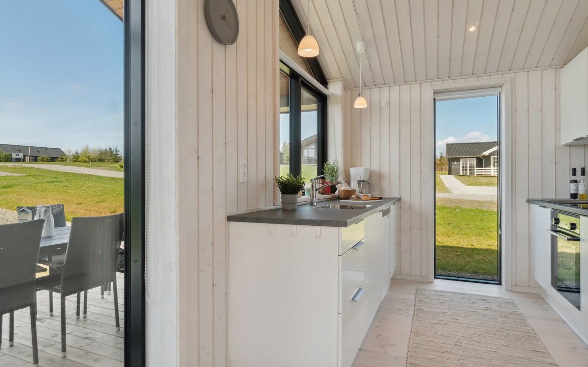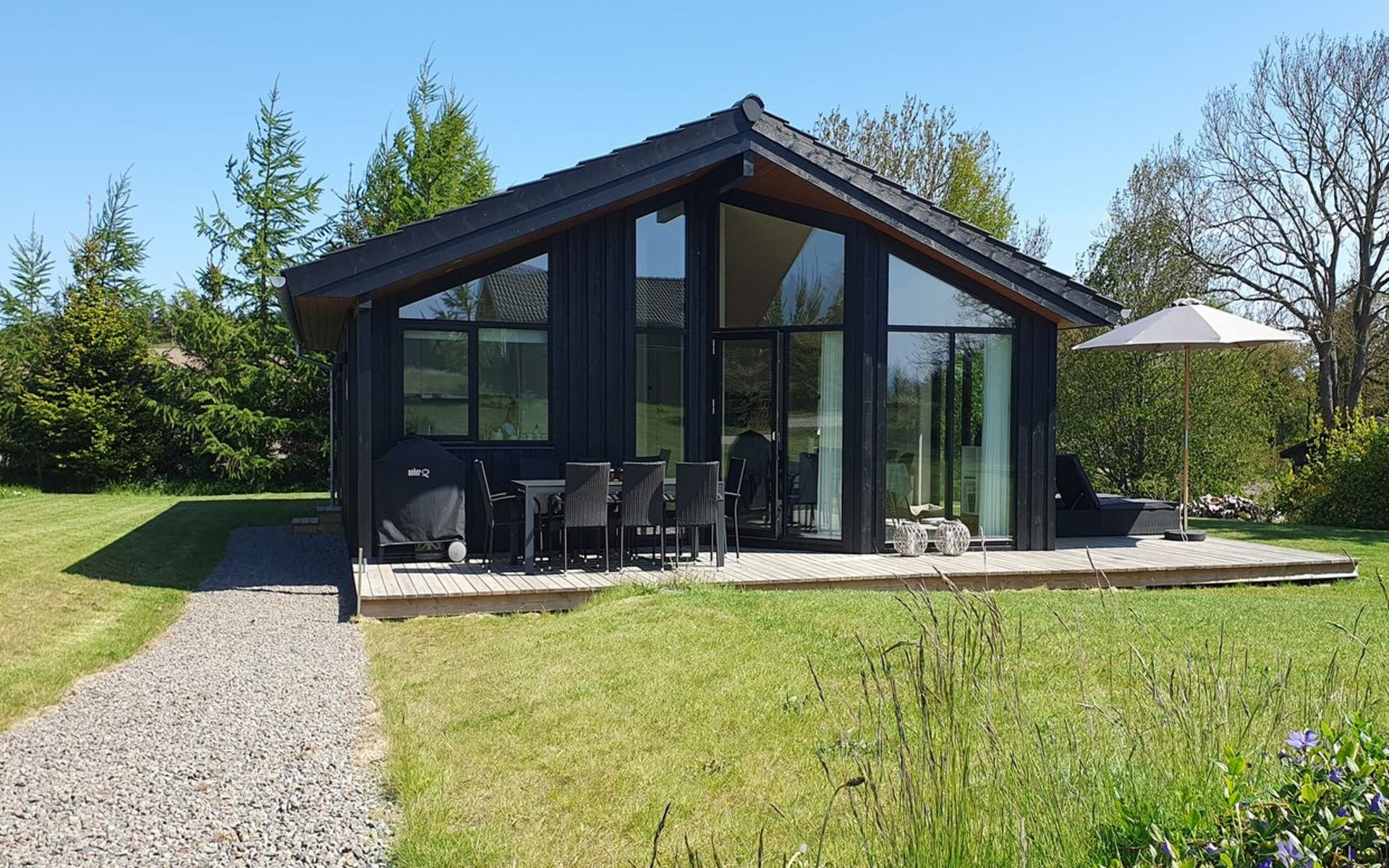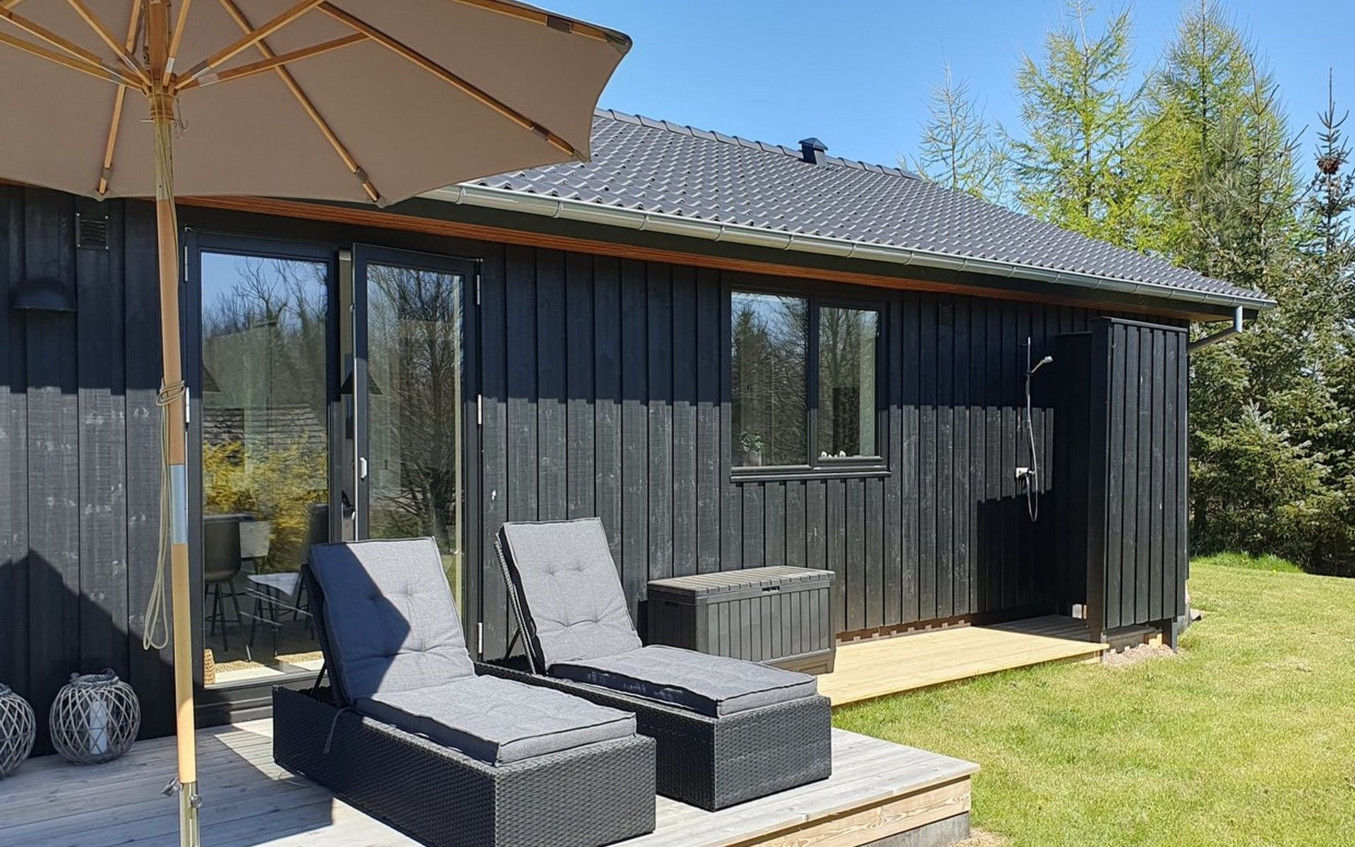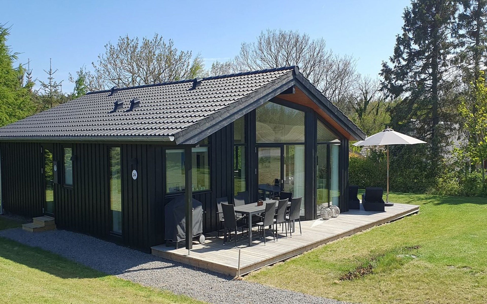Einfamilienhaus, Baujahr 2022. 800 m vom Meer. Zur Alleinbenutzung: naturbelassenes Grundstück 1'201 m2. Aussendusche, Grill. Im Hause: Waschmaschine. Parkplatz beim Haus. Lebensmittelgeschäft 3.5 km. Golfplatz 5.5 km. Der Besitzer akzeptiert keine Jugendgruppen.