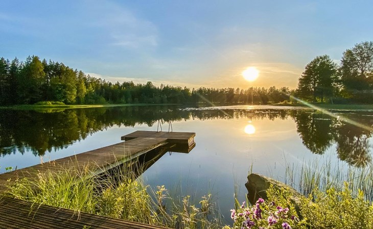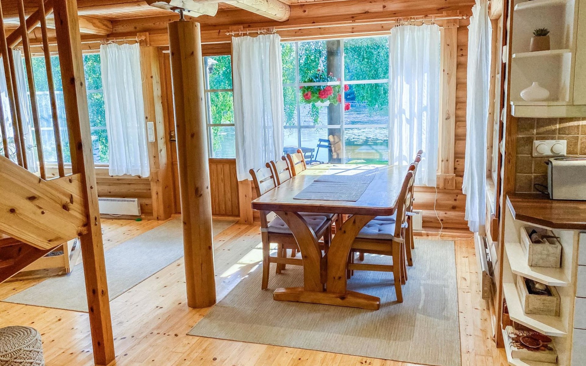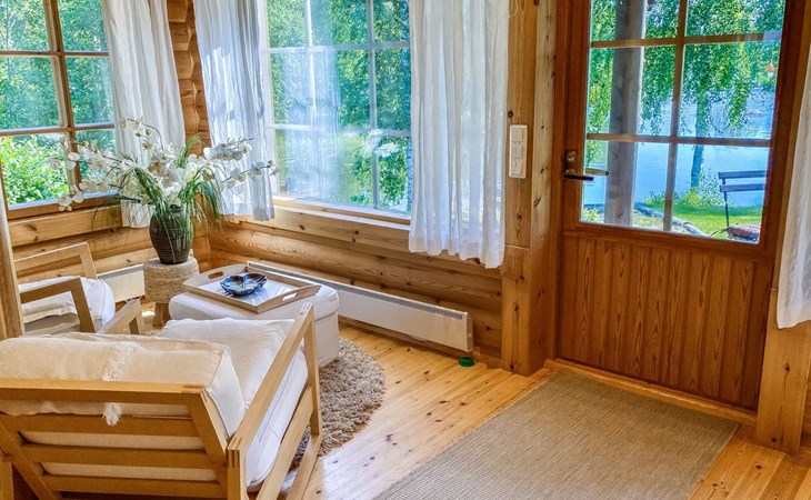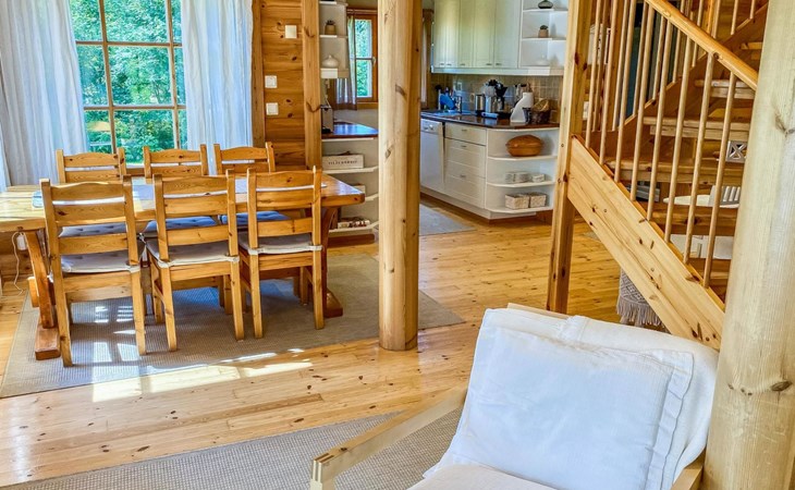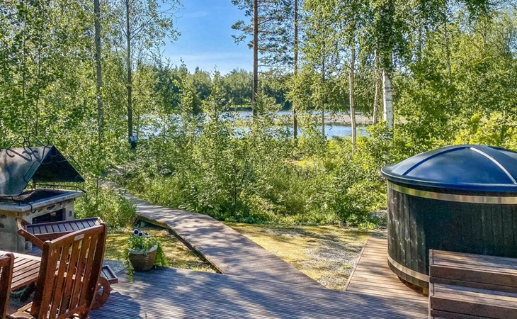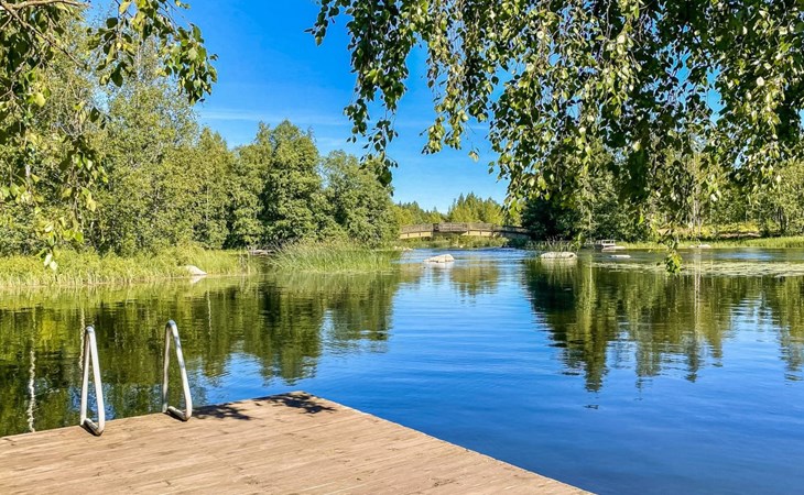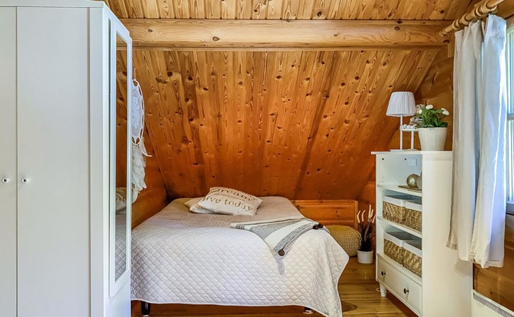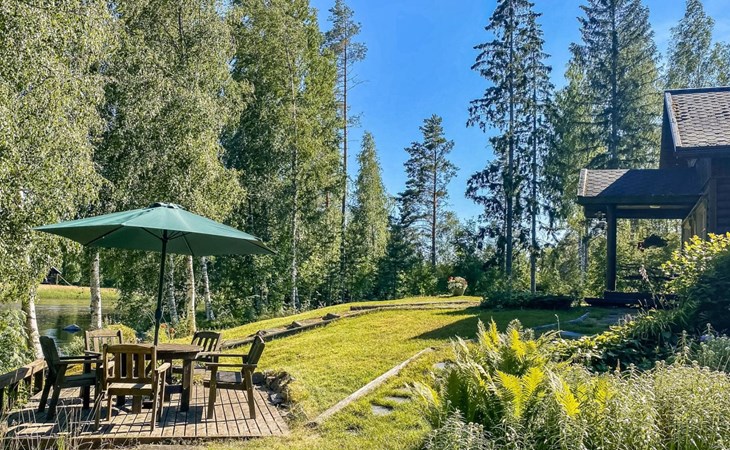 40 km nördlich von Heinola, Fluss Tainionvirta 15 m (Länge 30 km, Breite 0.02 km), tiefes Schlammufer und 2 Stege, eigenes Boot. Blockferienhaus, Baujahr 1989, renoviert 2008, Wohnküche/Salon, Badezimmer, 2 Veranden. Im Obergeschoss (Raumhöhe max. 170 cm, Dachschrägen) Schlafzimmer mit 3 Betten, Schlafzimmer mit 1 Einzelbett und Schlafsofa, im Salon Doppelbett. Klimaanlage. 2x TV. Separate Block-Flusssauna und Raum mit Kamin (20 m²), Baujahr 2005, zum Schwimmufer 30 m, tiefer Schlammboden (2 m tief am Ende des Stegs), Anlegestegs. Sauna, Waschraum mit Duschkabine und WC. Raum mit Kamin verfügt über Miniküche, Wärmespeicher und Fernseher. Holzgrill sowie Gasgrill. Garage und Lagergebäude, 1 Parkplatz in der Garage für die Mieter des Ferienhauses reserviert. Sehr ordentliches Ferienhaus mit hohem Standard auf 1.3 ha Grundstück am Vorgebirge. Schöne Aussicht vom Haus aus und von der Sauna am Fluss, der wie ein See wirkt. Hof mit grosser Rasenfläche, Sand, Steinplatten-Wege und Wald sowie Trampolin. In Bezug auf die Landschaft und Lage ist dies eine der besten Ferienhäuser in Hartola! Gegenüber der Küste 0.3 km, 2 benachbarten Häuser (Ferienhaus-Ausstellung fand in diesem Gebiet im Jahr 2004 statt), öffentlicher Angelsteg 0.5 km. 2 Anlegestege, die nur zum Haus gehören. Das Ferienhaus hat viel Freiraum drinnen. Schlafbereiche sind im Obergeschoss. W-LAN verfügbar. Die Sauna am Fluss verfügt über Terrasse und Holzweg zum Steg und Terrasse an der Flussseite. Öffentliches Sandufer am See Jääsjärvi ist besonders für Kinder geeignet, 1.5 km. DER FLUSS TAINIONVIRTA IST FINNLANDS SÜDLICHSTER FORELLEN-FLUSS! Hartola Golf 0.4 km, Linnahotelli Hotel 0.4 km, Sportpark 1 km, Kegelbahn 1 km, "Krouvin lava" Tanzpavillon und Campingplatz 15 km, Go-Cart-Rennstrecke 15 km, Purnuvuori 30 km, Lahti 83 km. Für gesonderte Vereinbarung steht Kinderreisebett zur Verfügung. Hinweis! Der Ferienhaus-Preis beinhaltet die Unterkunft für 8 Personen. Gegen gesonderte Gebühr und Vereinbarung 2 Zustellbetten erhältlich (im Saunagebäude gibt es Schlafsofa im Kaminzimmer). Diese Zustellbetten müssen im Voraus gebucht und vor Ort bezahlt werden. Hinweis! Die obligatorische Reinigungskaution von € 150 sollte vor Ort bezahlt werden.