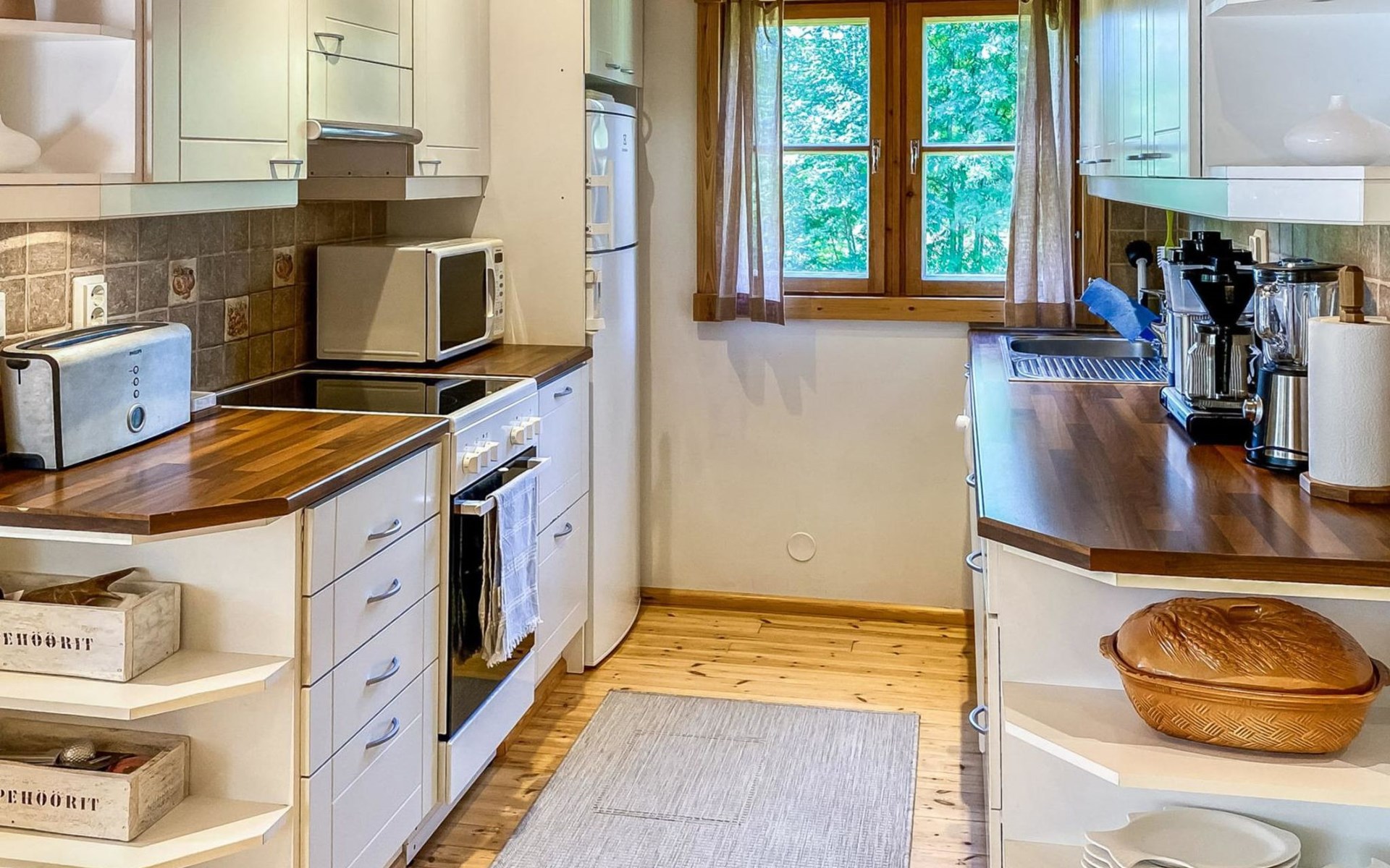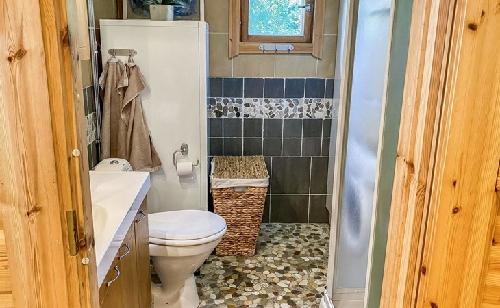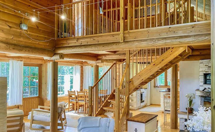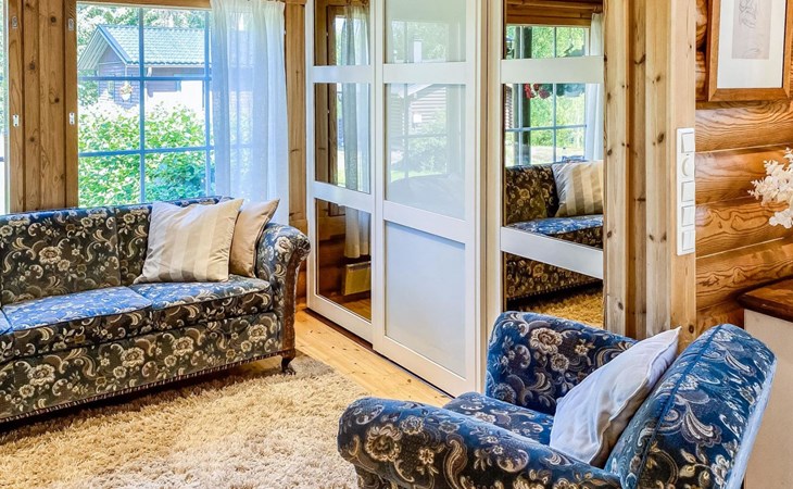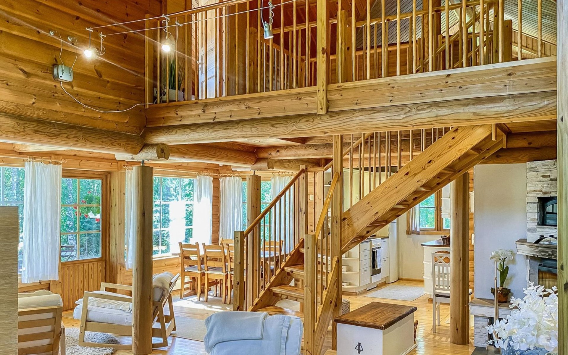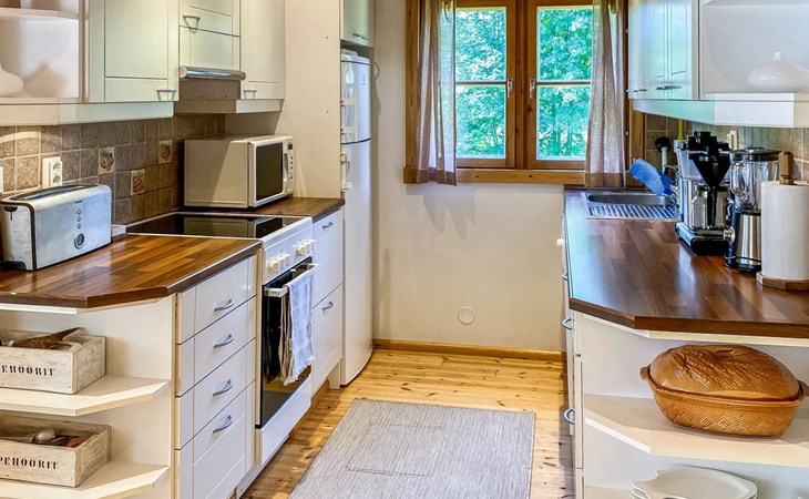 40 km nördlich von Heinola, Fluss Tainionvirta 15 m (Länge 30 km, Breite 0.02 km), tiefes Schlammufer und 2 Stege, eigenes Boot. Blockferienhaus, Baujahr 1989, renoviert 2008, Wohnküche/Salon, Badezimmer, 2 Veranden. Im Obergeschoss (Raumhöhe max. 170 cm, Dachschrägen) Schlafzimmer mit 3 Betten, Schlafzimmer mit 1 Einzelbett und Schlafsofa, im Salon Doppelbett. Klimaanlage. 2x TV. Separate Block-Flusssauna und Raum mit Kamin (20 m²), Baujahr 2005, zum Schwimmufer 30 m, tiefer Schlammboden (2 m tief am Ende des Stegs), Anlegestegs. Sauna, Waschraum mit Duschkabine und WC. Raum mit Kamin verfügt über Miniküche, Wärmespeicher und Fernseher. Holzgrill sowie Gasgrill. Garage und Lagergebäude, 1 Parkplatz in der Garage für die Mieter des Ferienhauses reserviert. Sehr ordentliches Ferienhaus mit hohem Standard auf 1.3 ha Grundstück am Vorgebirge. Schöne Aussicht vom Haus aus und von der Sauna am Fluss, der wie ein See wirkt. Hof mit grosser Rasenfläche, Sand, Steinplatten-Wege und Wald sowie Trampolin. In Bezug auf die Landschaft und Lage ist dies eine der besten Ferienhäuser in Hartola! Gegenüber der Küste 0.3 km, 2 benachbarten Häuser (Ferienhaus-Ausstellung fand in diesem Gebiet im Jahr 2004 statt), öffentlicher Angelsteg 0.5 km. 2 Anlegestege, die nur zum Haus gehören. Das Ferienhaus hat viel Freiraum drinnen. Schlafbereiche sind im Obergeschoss. W-LAN verfügbar. Die Sauna am Fluss verfügt über Terrasse und Holzweg zum Steg und Terrasse an der Flussseite. Öffentliches Sandufer am See Jääsjärvi ist besonders für Kinder geeignet, 1.5 km. DER FLUSS TAINIONVIRTA IST FINNLANDS SÜDLICHSTER FORELLEN-FLUSS! Hartola Golf 0.4 km, Linnahotelli Hotel 0.4 km, Sportpark 1 km, Kegelbahn 1 km, "Krouvin lava" Tanzpavillon und Campingplatz 15 km, Go-Cart-Rennstrecke 15 km, Purnuvuori 30 km, Lahti 83 km. Für gesonderte Vereinbarung steht Kinderreisebett zur Verfügung. Hinweis! Der Ferienhaus-Preis beinhaltet die Unterkunft für 8 Personen. Gegen gesonderte Gebühr und Vereinbarung 2 Zustellbetten erhältlich (im Saunagebäude gibt es Schlafsofa im Kaminzimmer). Diese Zustellbetten müssen im Voraus gebucht und vor Ort bezahlt werden. Hinweis! Die obligatorische Reinigungskaution von € 150 sollte vor Ort bezahlt werden.