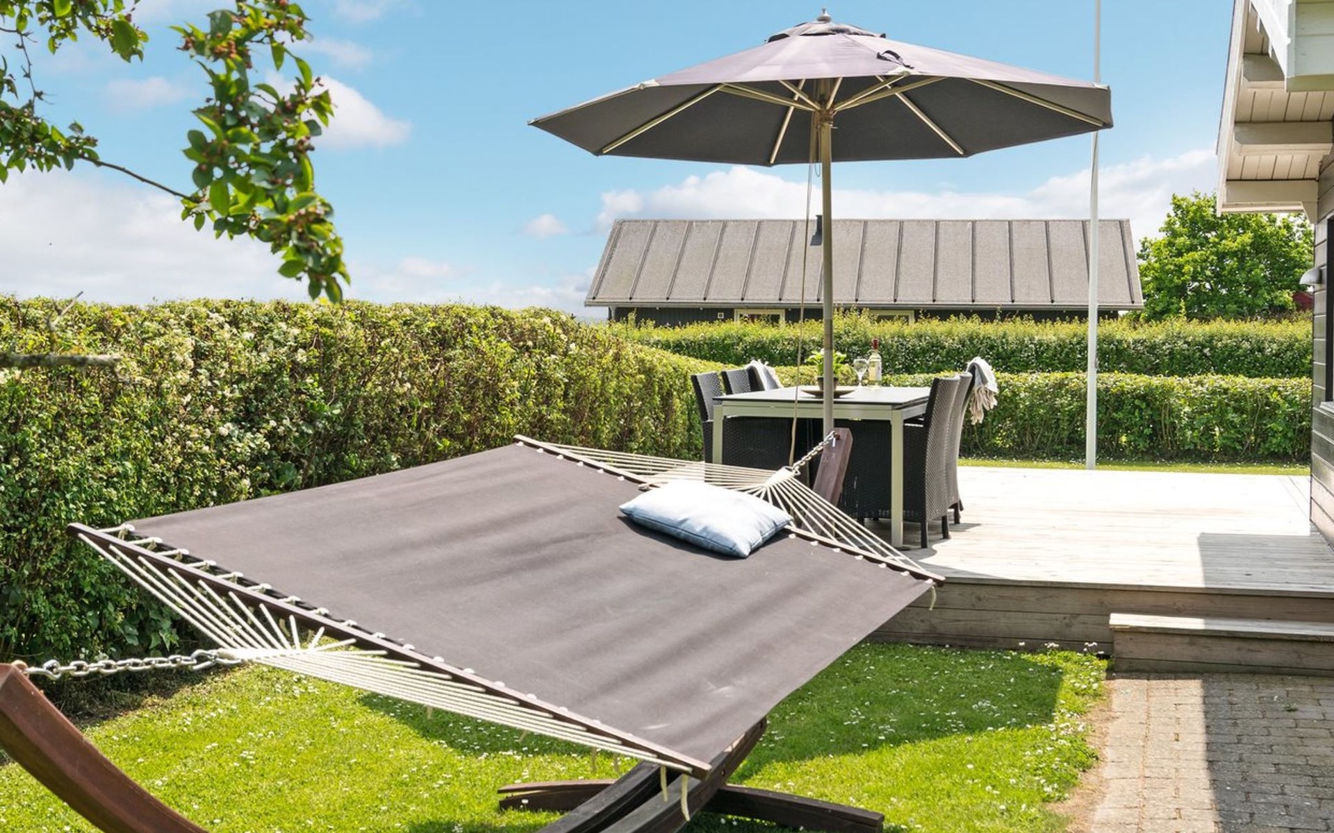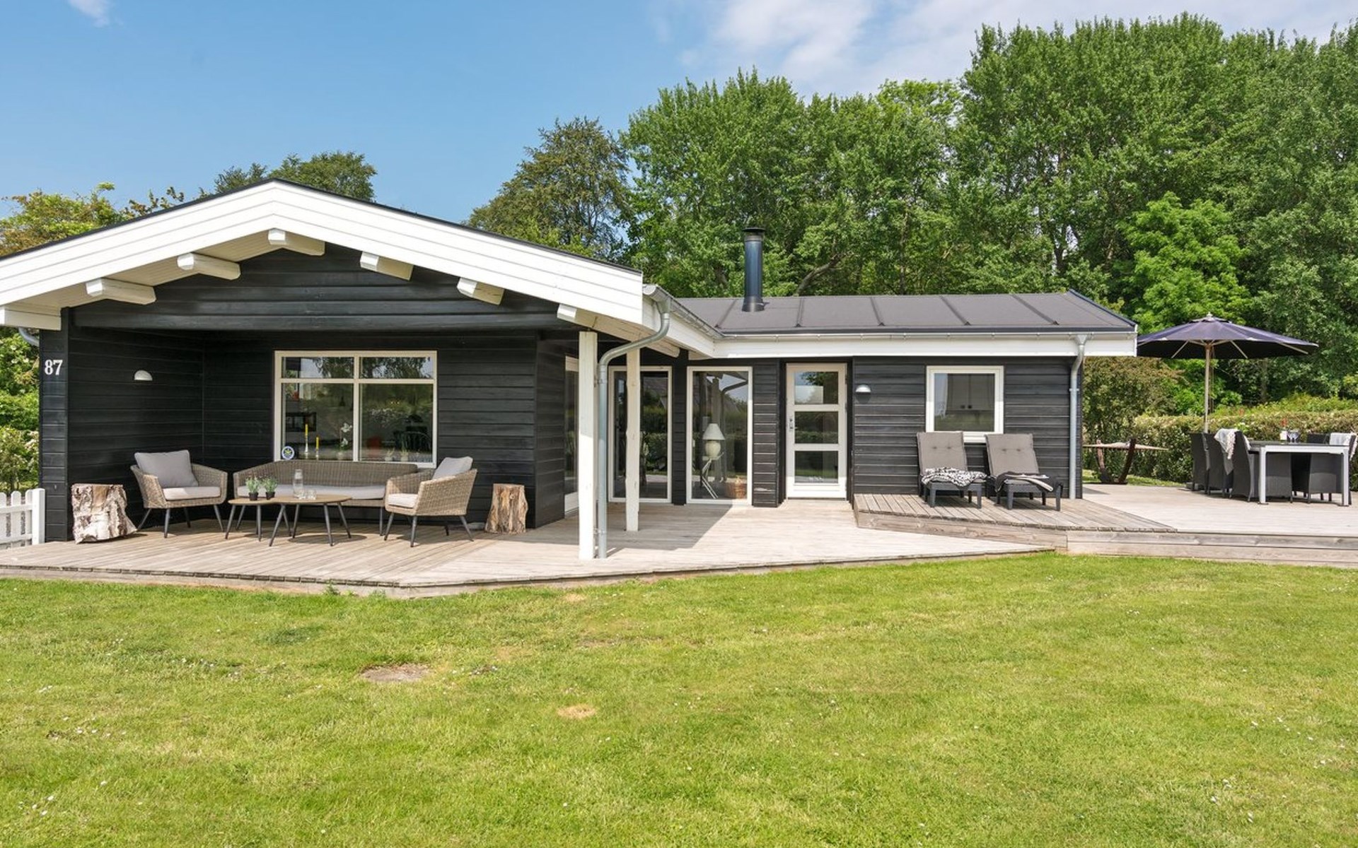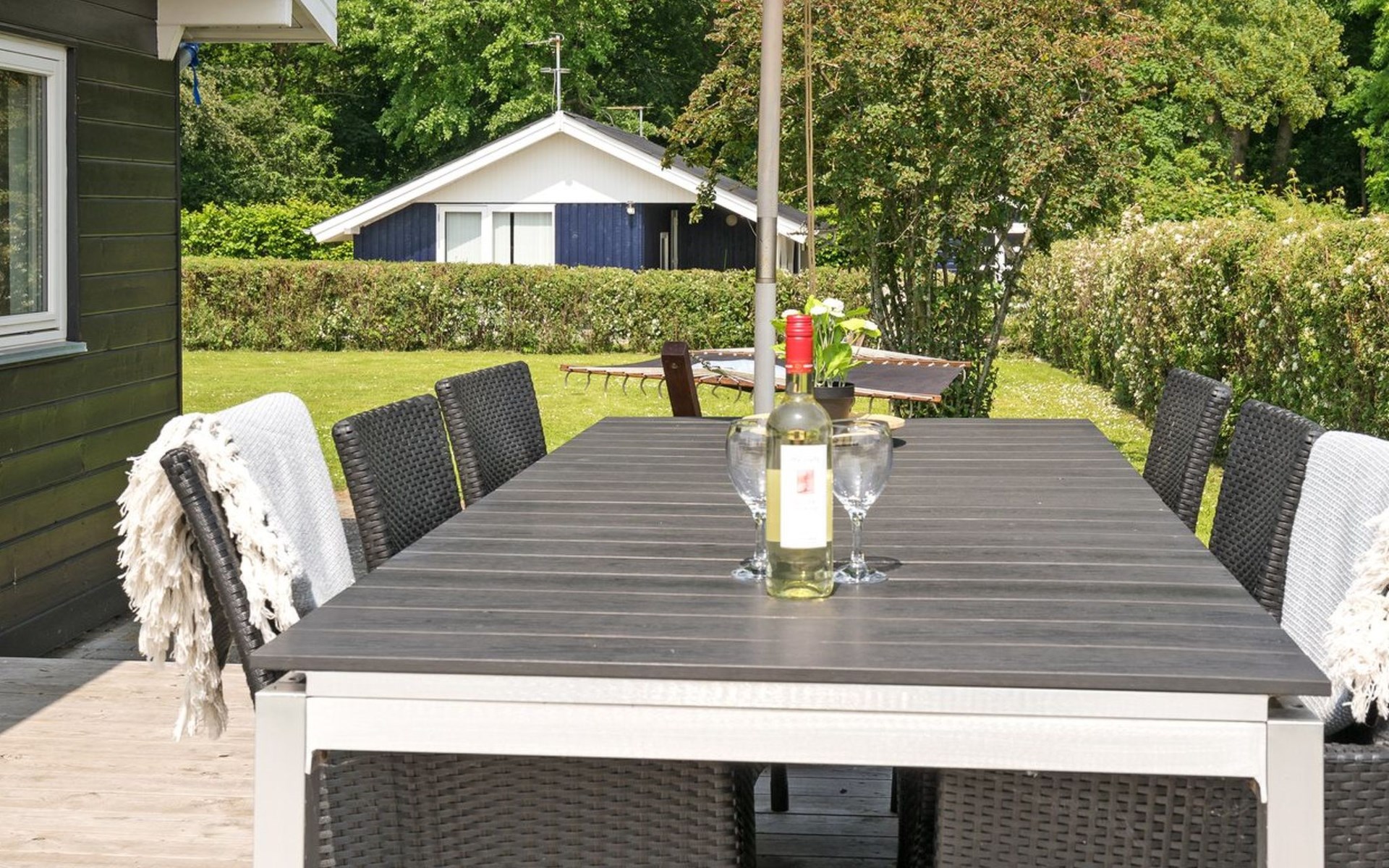 Einfamilienhaus, Baujahr 1974. Zur Alleinbenutzung: Grundstück 803 m2, gepflegter Garten. Terrasse (40 m2), Grill. Im Hause: Waschmaschine, Wäschetrockner. Parkplatz beim Haus. Lebensmittelgeschäft 3.4 km. Der Besitzer akzeptiert keine Jugendgruppen.