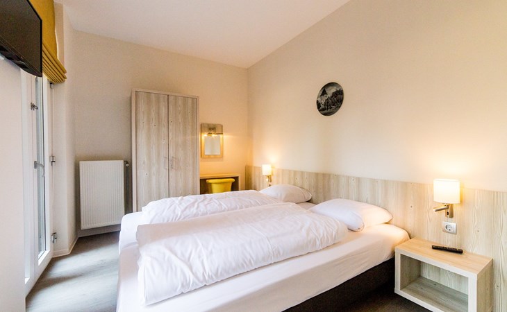 Die 2-Zimmer-Ferienwohnung ist mit 2 Einzelbetten ausgestattet. Außerdem gibt es ein Badezimmer mit Badewanne und/oder Dusche, Waschbecken und Toilette. Nehmen Sie draußen auf dem Balkon oder der Terrasse mit Sitzgelegenheiten Platz und genießen Sie ein leckeres Getränk. Die Ferienwohnung verfügt über einen separaten Abstellraum, in dem Sie z. B. Ihre (Leih-)Fahrräder sicher unterbringen können.