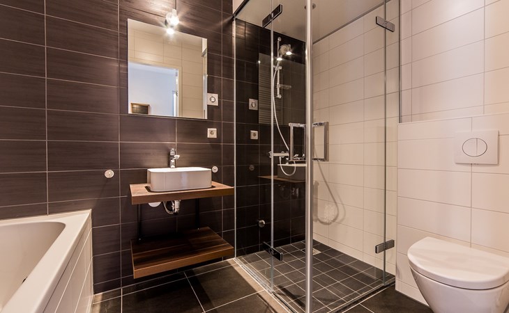 Die Ferienwohnung ist modern eingerichtet und verfügt über ein großzügiges Wohnzimmer mit einer Sitzecke und einem Essbereich. Die offene Küche verfügt über Luxusgeräte und ist komplett ausgestattet.