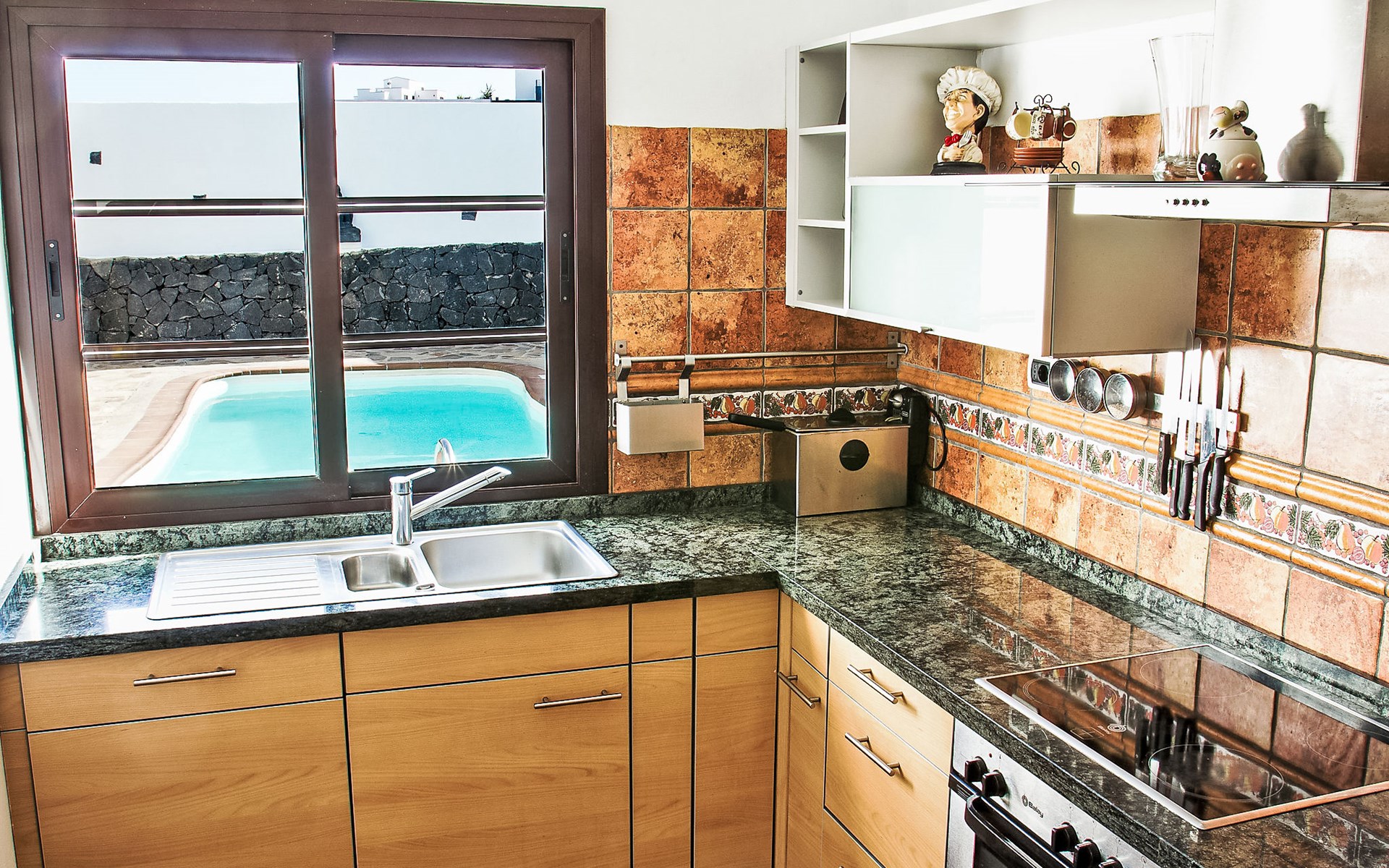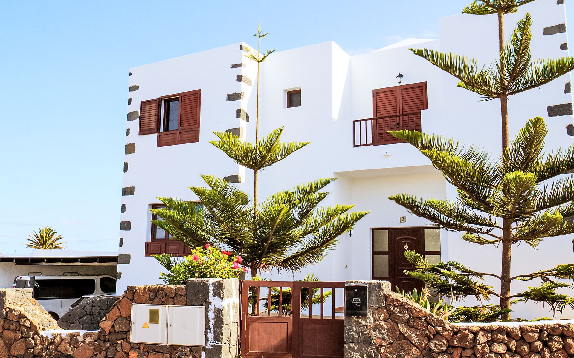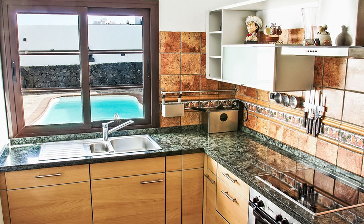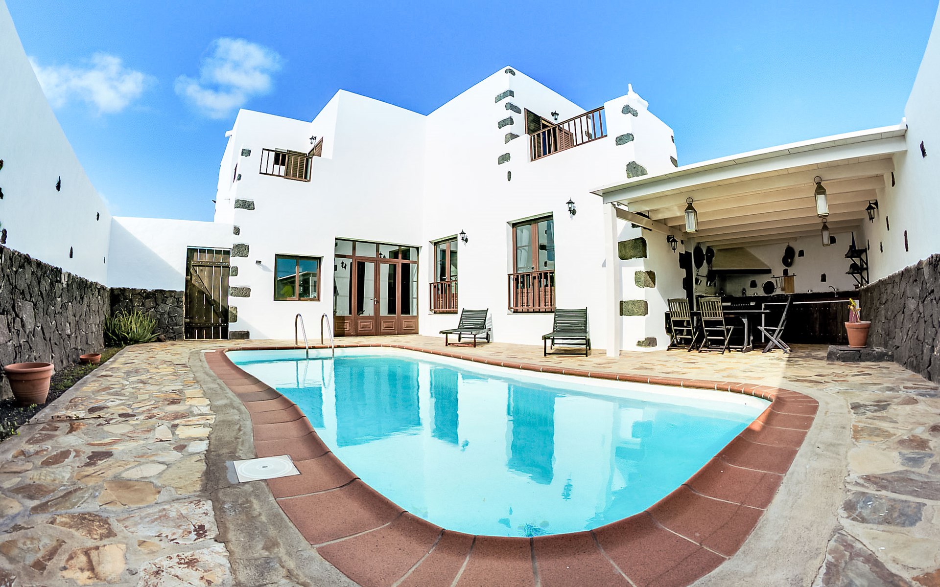 Tinajo: Grosses, modernes Einfamilienhaus "Villa Mareta". Im Ort, zentrale, ruhige, sonnige Lage, 5 km vom Meer. Zur Alleinbenutzung: Schwimmbad (8 x 4 m, 100 - 190 cm tief, saisonale Verfügbarkeit: 01.Jan. - 31.Dez.). Parkplatz beim Haus. Supermarkt 30 m, Restaurant 800 m, Bäckerei, Café, Internet-Café 800 m, Bushaltestelle. Bitte beachten: Fahrzeug empfohlen.