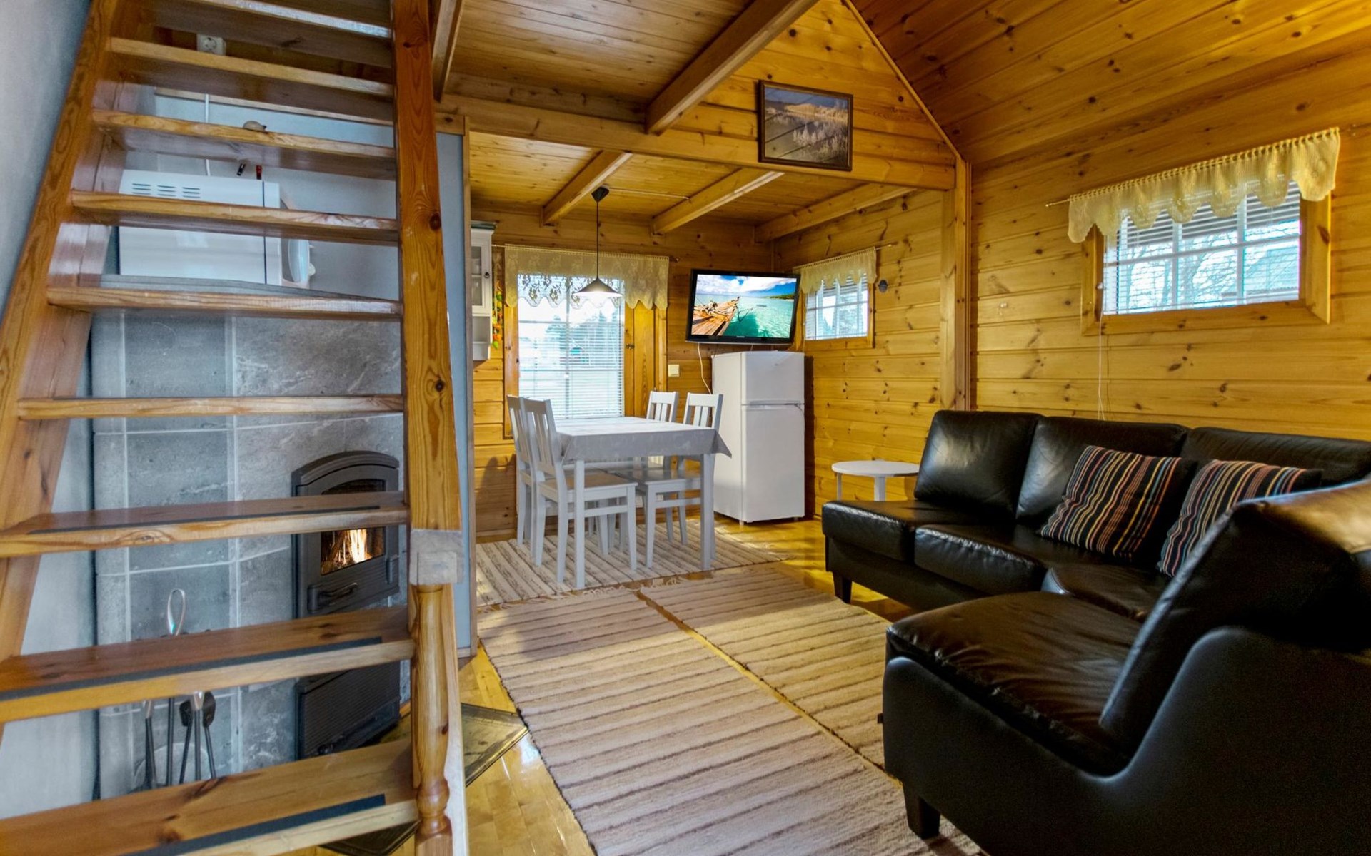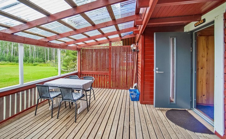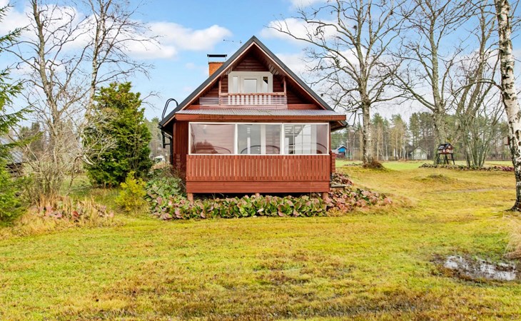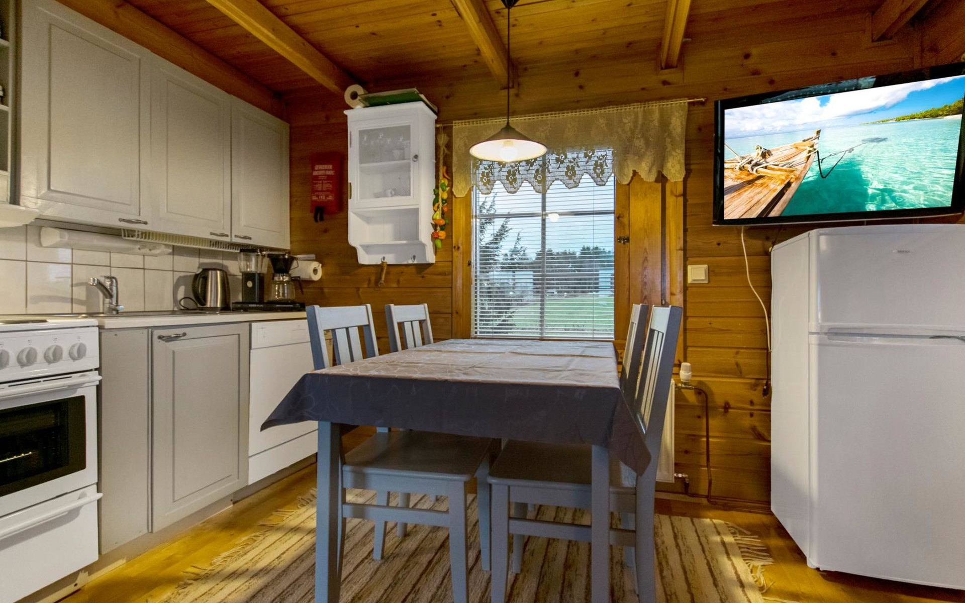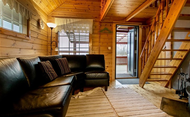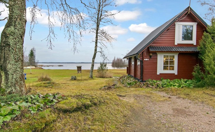 Log-built cabin (1994), spacious and partially glazed terrace, living room with heat reserving soapstone fireplace, living room/kitchen, sauna (wood-burning sauna stove) washroom with WC. On the upper floor, bedroom with low slope ceiling (160 x 200 cm spring mattress on the floor) and lobby (2 x 80 x 200 cm foam mattress on the floor). Wood storage and waste collection between cabins 15162 Kaunotar and 15163 Missi. The cottage is suitable for year-round use.