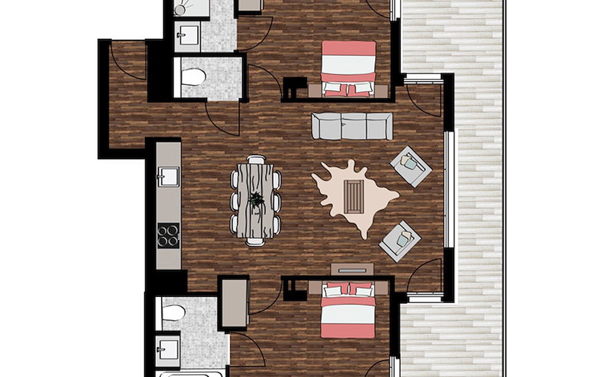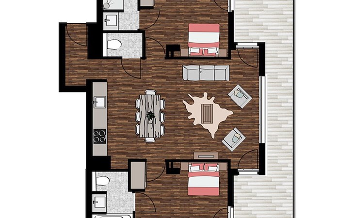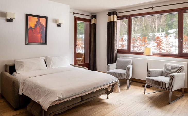 Übernachten Sie in der angenehmen 3-Zimmer-Ferienwohnung Du Dru (T3) für maximal 6 Personen im Dormio Resort Les Portes Du Mont Blanc. Diese Ferienwohnung hat 2 Schlafzimmer, 2 Badezimmer und eine Fläche von ca. 60 m2. Das große Wohnzimmer verfügt über ein Schlafsofa für 2 Personen, einen Fernseher mit Streaming-Funktion und einen Essbereich mit Esstisch. Die Küche ist mit Kühlschrank, Cerankochfeld, Geschirrspüler, Backofen, Mikrowelle/Grill, Toaster, Filterkaffeemaschine und Wasserkocher ausgestattet. Die Ferienwohnung hat 2 Schlafzimmer mit 2 Einzelbetten (einige Wohnungen haben ein Doppelbett in einem der Schlafzimmer). Es gibt 2 Badezimmer, eines mit Dusche, Waschbecken und Toilette und eines mit Badewanne, Waschbecken und Toilette. Sie haben auch Zugang zu einem großzügigem Balkon mit Sitzgelegenheiten. Von hier aus haben Sie eine beeindruckende Aussicht auf die umliegenden Berge. Natürlich können Sie kostenloses WLAN in Ihrer Unterkunft und im Resort nutzen. Die Aufteilung der Unterkunft kann variieren. Die Grundrisse und Bilder vermitteln einen guten Eindruck, dienen aber nur zur Veranschaulichung.
