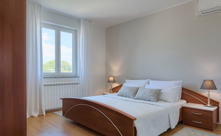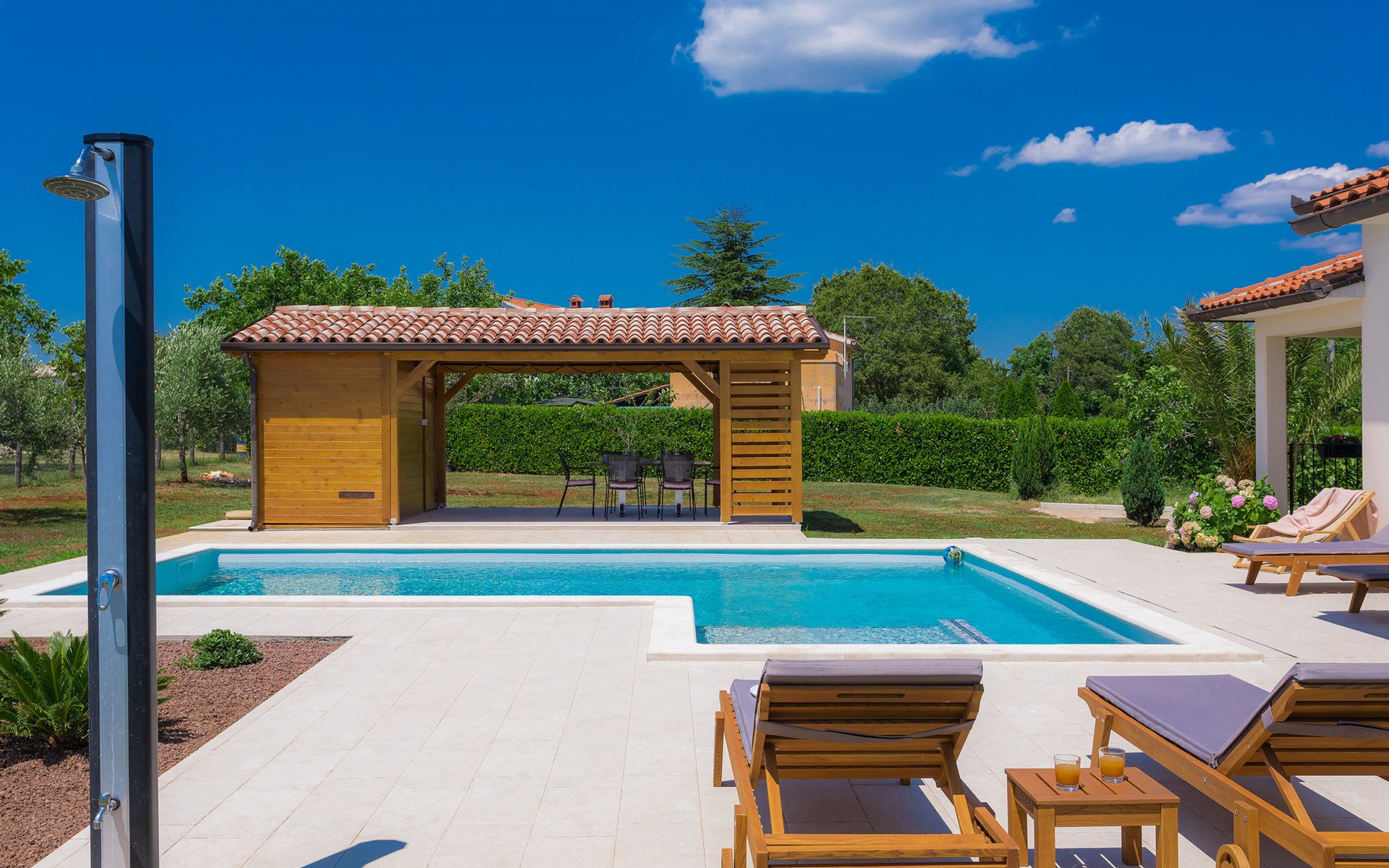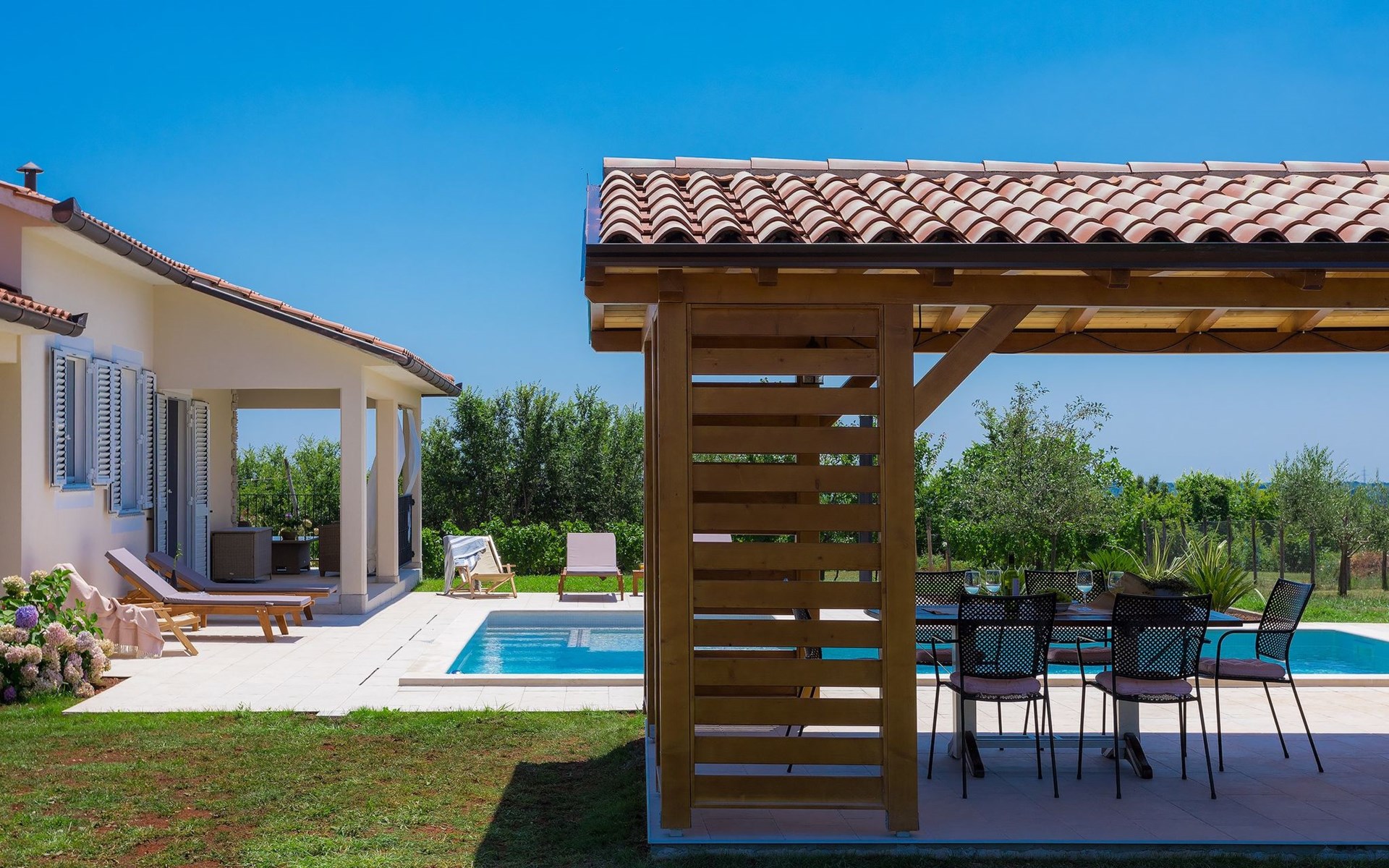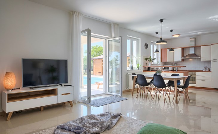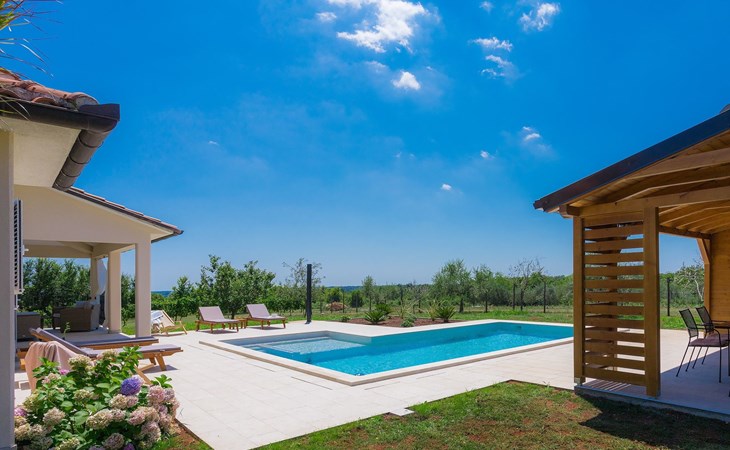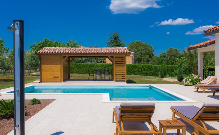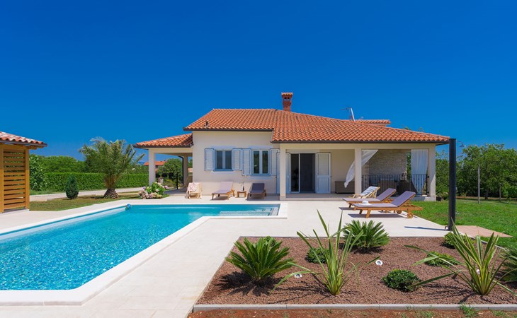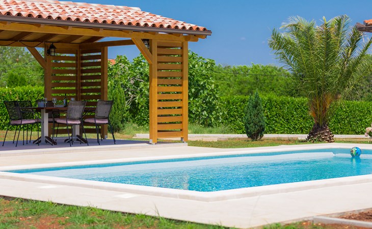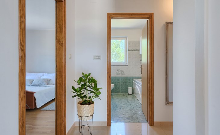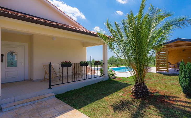 Schönes Einfamilienhaus "Eugen". Im Weiler Camlići, 5 km vom Zentrum von Barban, ruhige, sonnige Lage, 14 km vom Meer, im Grünen. Zur Alleinbenutzung: Grundstück 3'500 m2 mit Rasen, Obstgarten, Schwimmbad eckig, beheizt (8 x 4 m, 150 cm tief, saisonale Verfügbarkeit: 15.Apr. - 15.Okt.) mit Innentreppe. WC im Poolbereich, Kinderbecken, Aussendusche, Terrasse (18 m2), Gartenmöbel. Im Hause: Internetzugang, Waschmaschine. Parkplatz (für 3 Autos) beim Haus auf dem Grundstück. Einkaufsgeschäft 5 km, Supermarkt 5 km, Restaurant 5 km, Bushaltestelle 5.3 km, Kieselstrand 14 km. Reitstall 12.5 km, Wanderwege ab Haus 50 m, Radweg 100 m. Nahe gelegene Sehenswürdigkeiten: adventure park 11.5 km. Schwimmbad beheizt (extra). Es ist notwendig 7 Tage im Voraus bekannt zu geben, ob die Schwimmbadheizung eingeschaltet werden soll. Das veranstalten von Partys ist nicht gestattet. Keine Vermietung an Jugendgruppen.