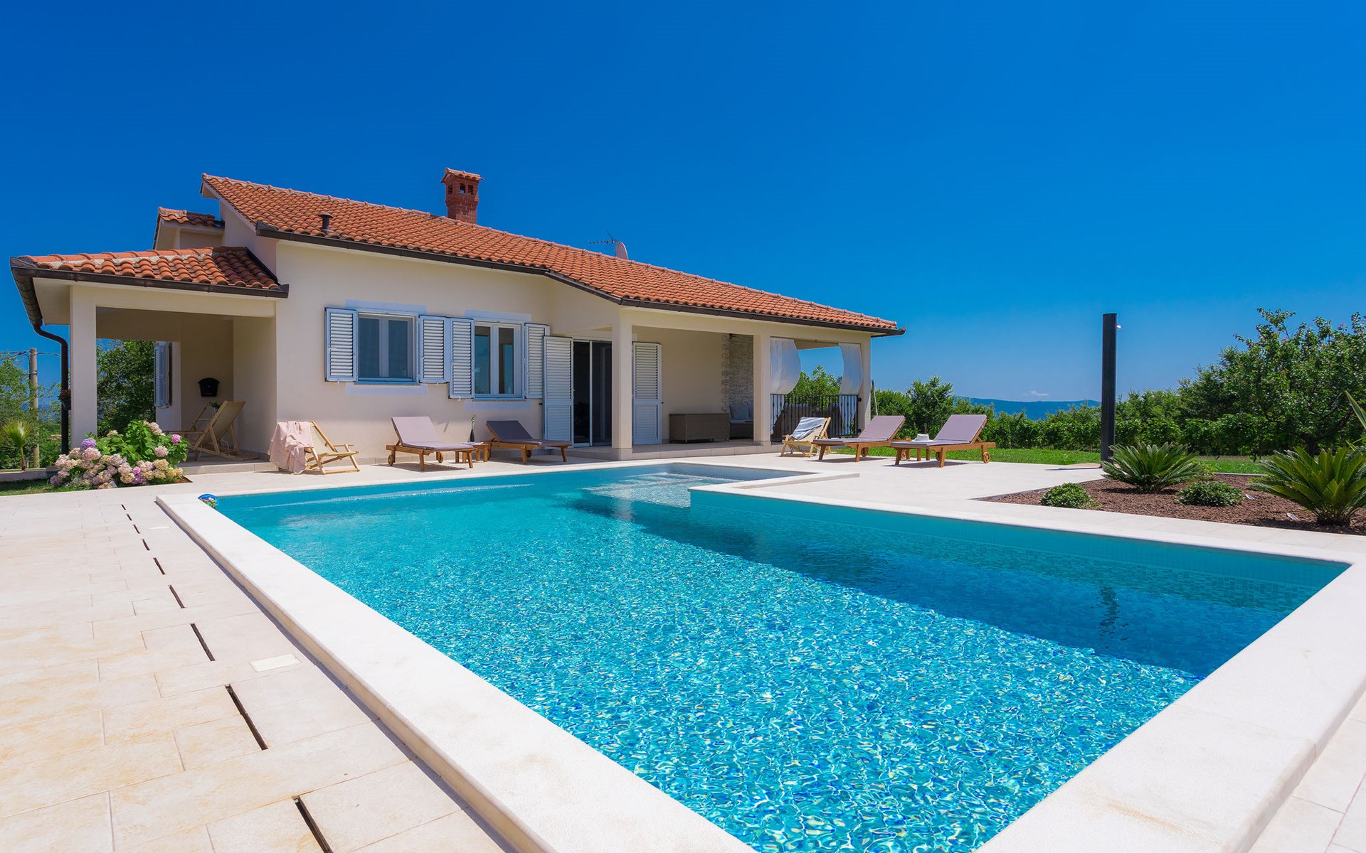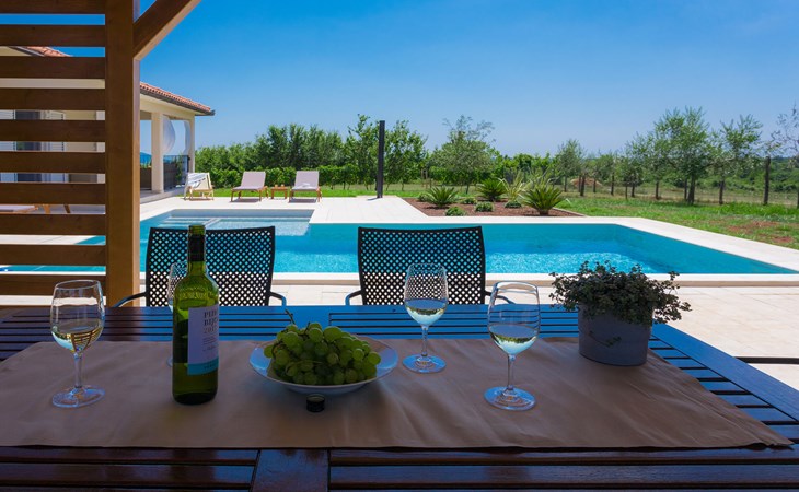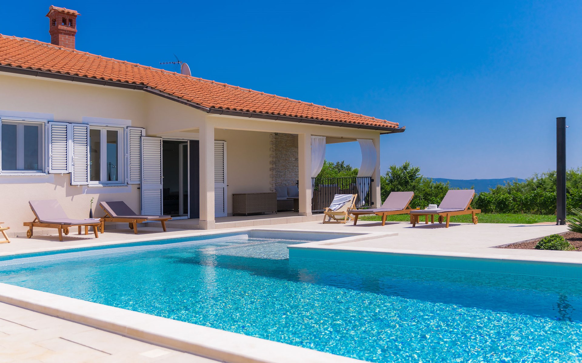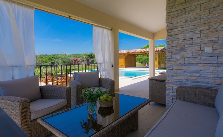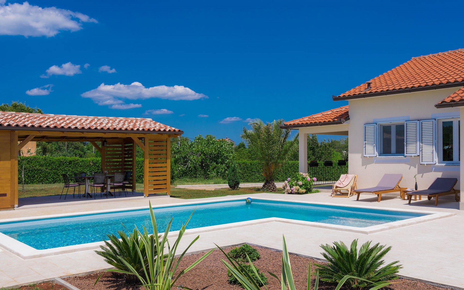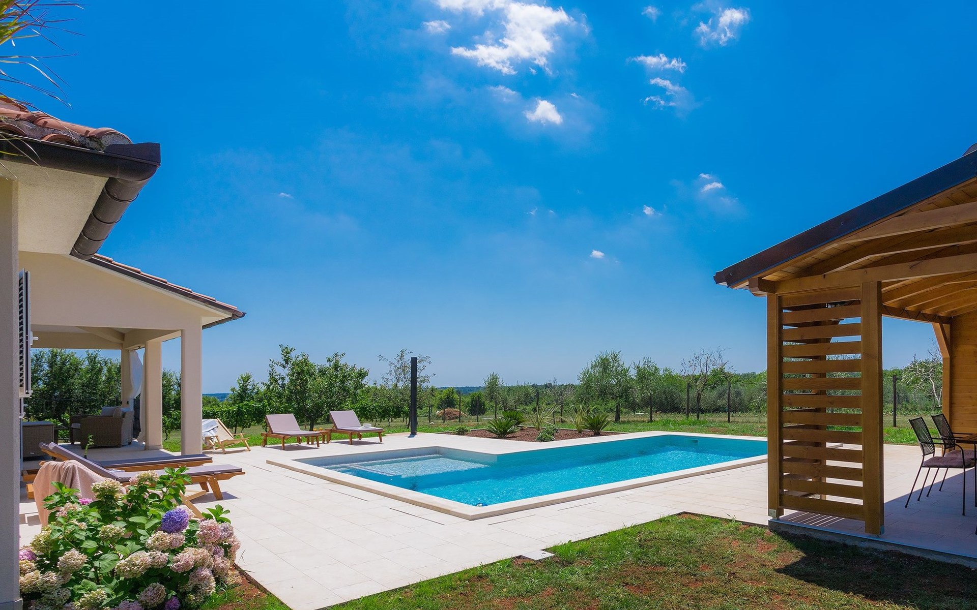 Schönes Einfamilienhaus "Eugen". Im Weiler Camlići, 5 km vom Zentrum von Barban, ruhige, sonnige Lage, 14 km vom Meer, im Grünen. Zur Alleinbenutzung: Grundstück 3'500 m2 mit Rasen, Obstgarten, Schwimmbad eckig, beheizt (8 x 4 m, 150 cm tief, saisonale Verfügbarkeit: 15.Apr. - 15.Okt.) mit Innentreppe. WC im Poolbereich, Kinderbecken, Aussendusche, Terrasse (18 m2), Gartenmöbel. Im Hause: Internetzugang, Waschmaschine. Parkplatz (für 3 Autos) beim Haus auf dem Grundstück. Einkaufsgeschäft 5 km, Supermarkt 5 km, Restaurant 5 km, Bushaltestelle 5.3 km, Kieselstrand 14 km. Reitstall 12.5 km, Wanderwege ab Haus 50 m, Radweg 100 m. Nahe gelegene Sehenswürdigkeiten: adventure park 11.5 km. Schwimmbad beheizt (extra). Es ist notwendig 7 Tage im Voraus bekannt zu geben, ob die Schwimmbadheizung eingeschaltet werden soll. Das veranstalten von Partys ist nicht gestattet. Keine Vermietung an Jugendgruppen.