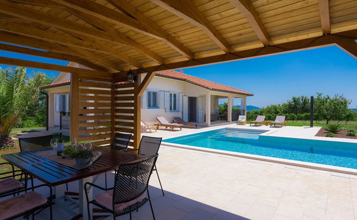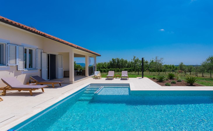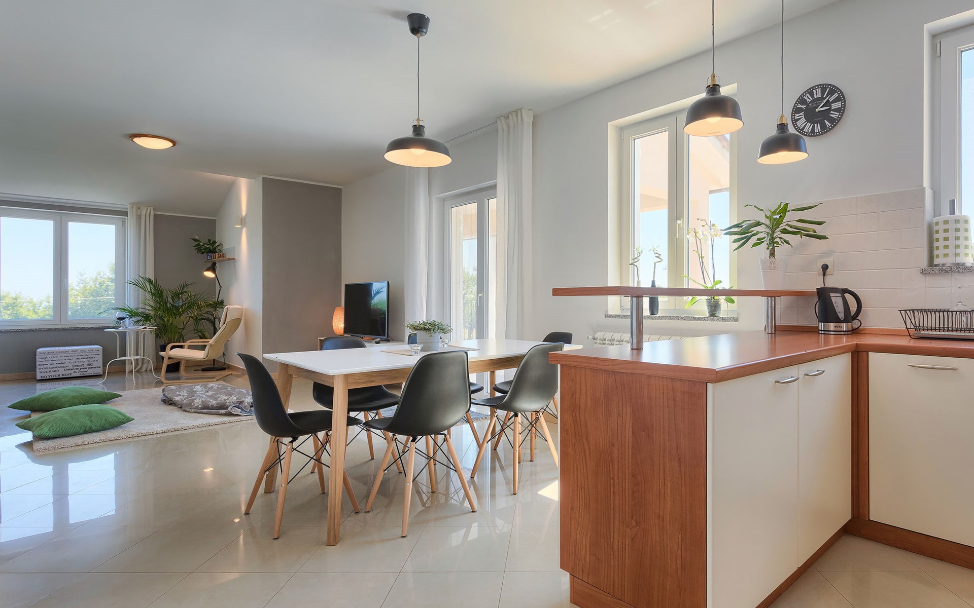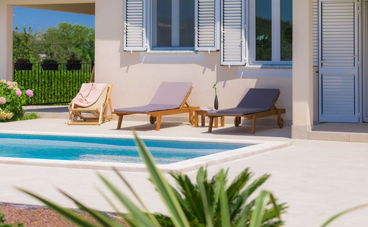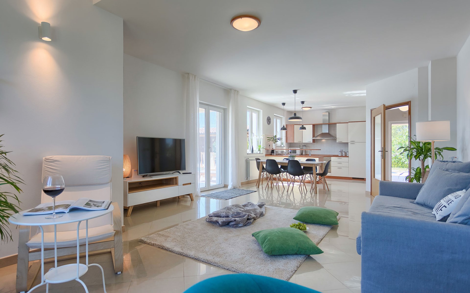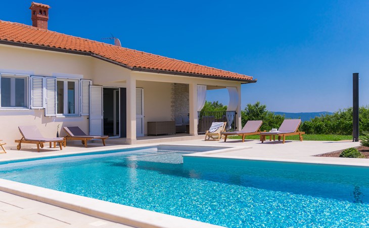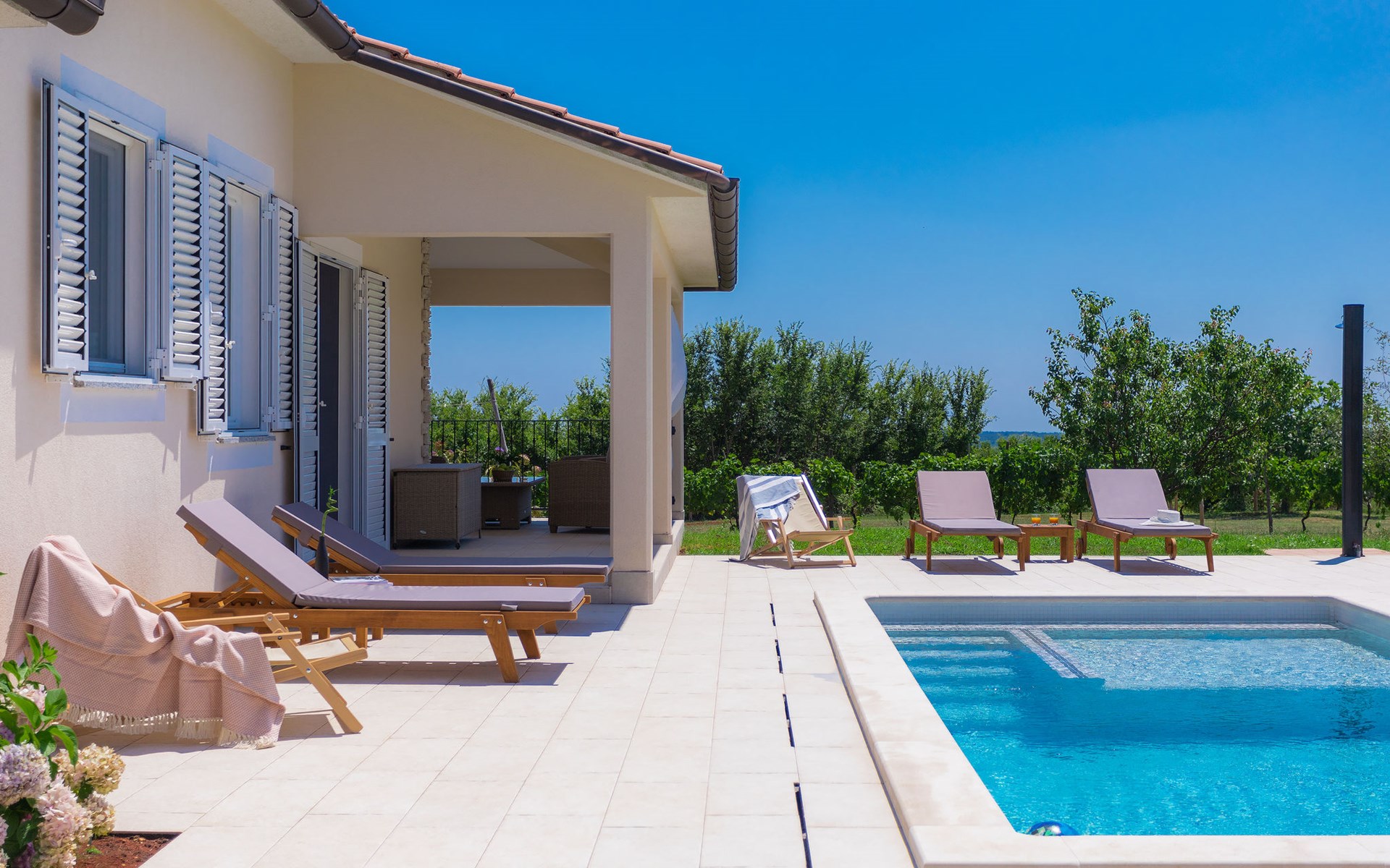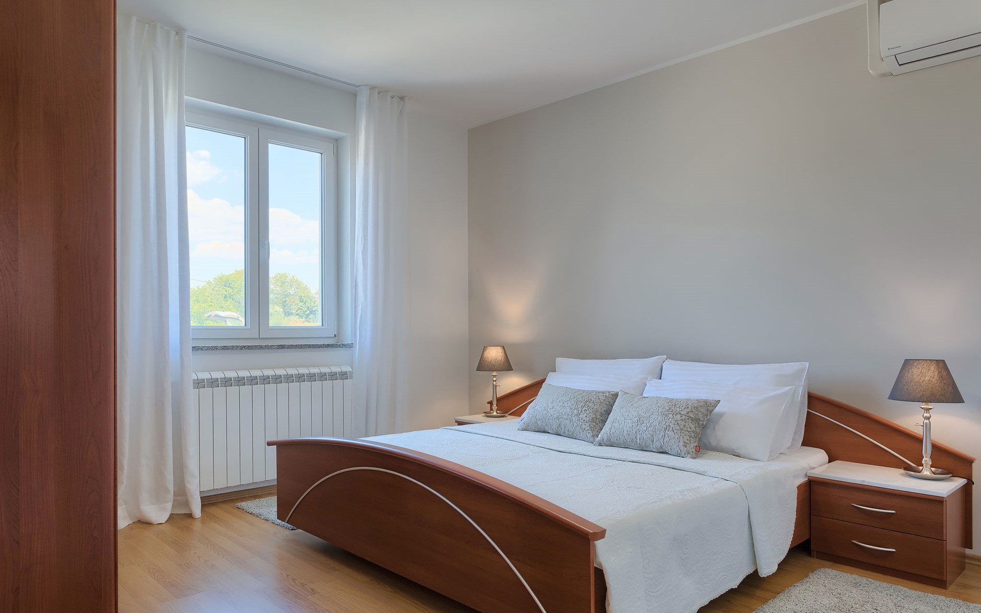 Schönes Einfamilienhaus "Eugen". Im Weiler Camlići, 5 km vom Zentrum von Barban, ruhige, sonnige Lage, 14 km vom Meer, im Grünen. Zur Alleinbenutzung: Grundstück 3'500 m2 mit Rasen, Obstgarten, Schwimmbad eckig, beheizt (8 x 4 m, 150 cm tief, saisonale Verfügbarkeit: 15.Apr. - 15.Okt.) mit Innentreppe. WC im Poolbereich, Kinderbecken, Aussendusche, Terrasse (18 m2), Gartenmöbel. Im Hause: Internetzugang, Waschmaschine. Parkplatz (für 3 Autos) beim Haus auf dem Grundstück. Einkaufsgeschäft 5 km, Supermarkt 5 km, Restaurant 5 km, Bushaltestelle 5.3 km, Kieselstrand 14 km. Reitstall 12.5 km, Wanderwege ab Haus 50 m, Radweg 100 m. Nahe gelegene Sehenswürdigkeiten: adventure park 11.5 km. Schwimmbad beheizt (extra). Es ist notwendig 7 Tage im Voraus bekannt zu geben, ob die Schwimmbadheizung eingeschaltet werden soll. Das veranstalten von Partys ist nicht gestattet. Keine Vermietung an Jugendgruppen.