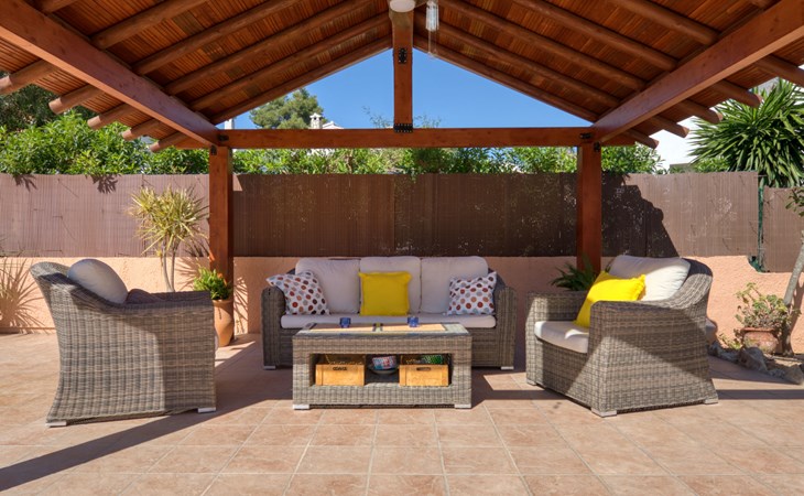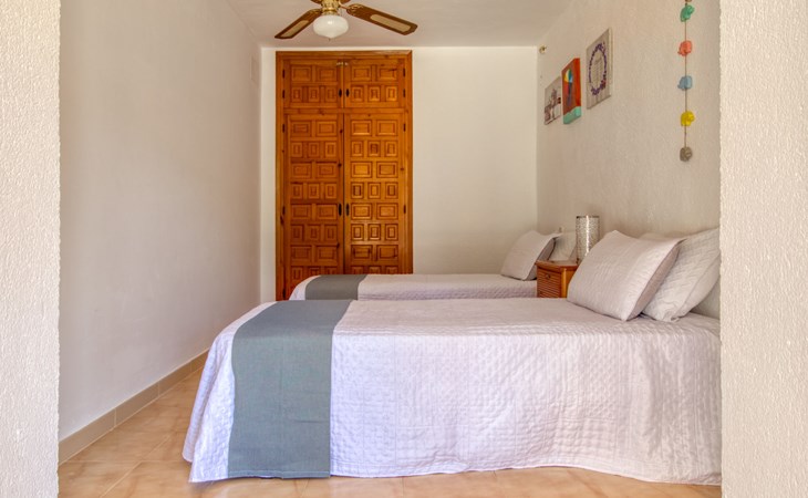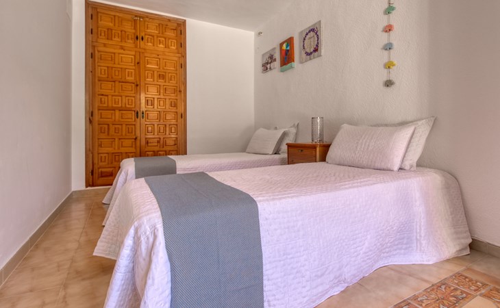 Schönes Einfamilienhaus "Anguilaga". Im Ortsteil Toscal, ruhige, sonnige Lage in einem Wohnquartier, 3 km vom Meer. Zur Alleinbenutzung: Garten 800 m2 (eingezäunt) mit Pflanzen und Blumen, Schwimmbad (4 x 8 m, saisonale Verfügbarkeit: 01.Jan. - 31.Dez.) mit Innentreppe. Supermarkt 2 km, Restaurant 2 km, Bushaltestelle "Parada Toscamar" 1.5 km, Sandstrand "Arenal" 3 km. Sporthafen 3 km, Jacht-Hafen 3 km, Surfschule 3 km, Tennis 3 km. Jugendgruppen nur auf Anfrage.