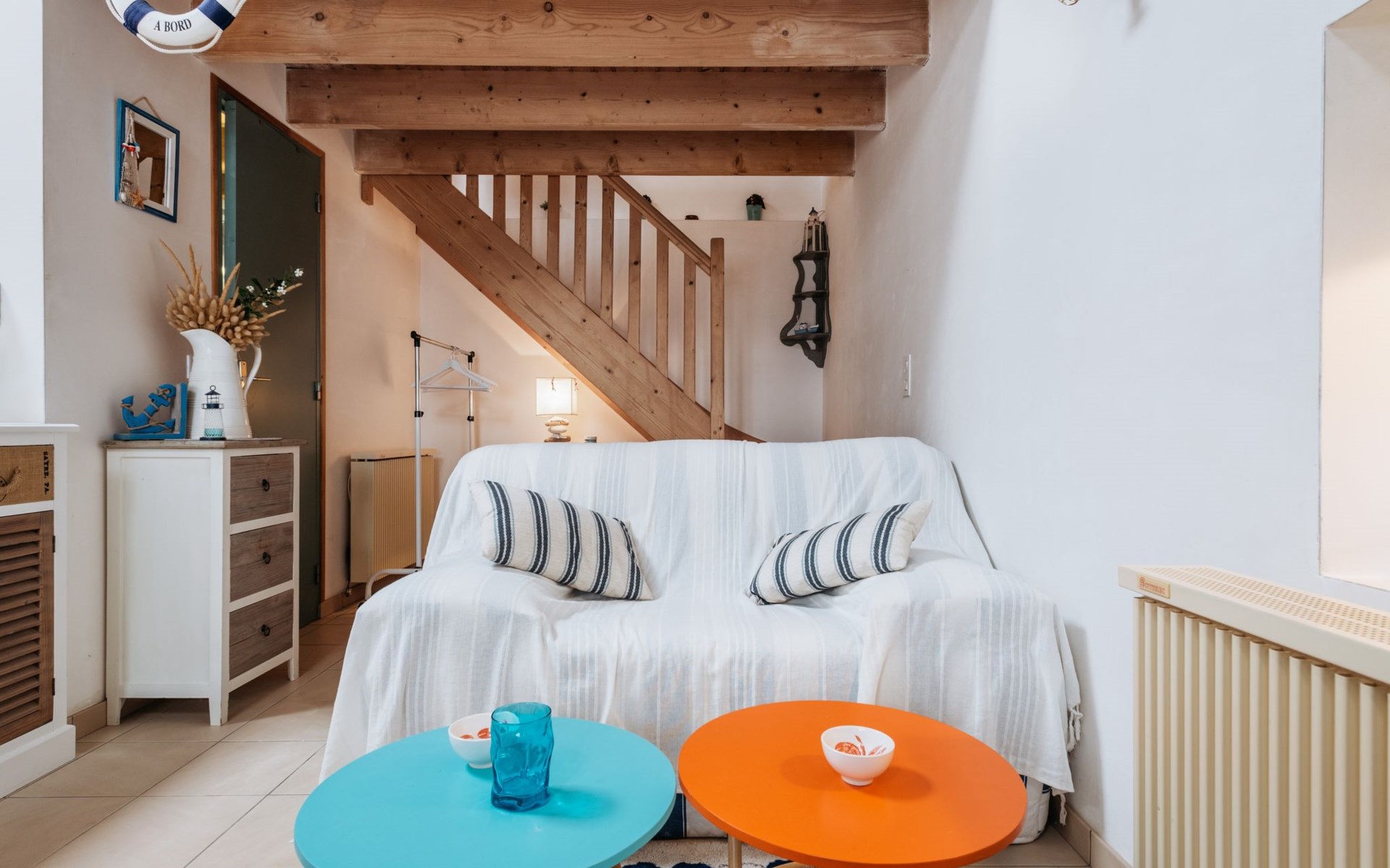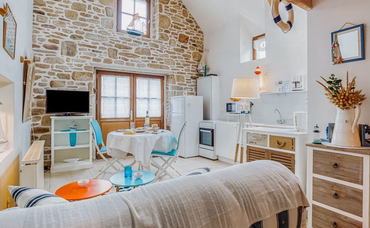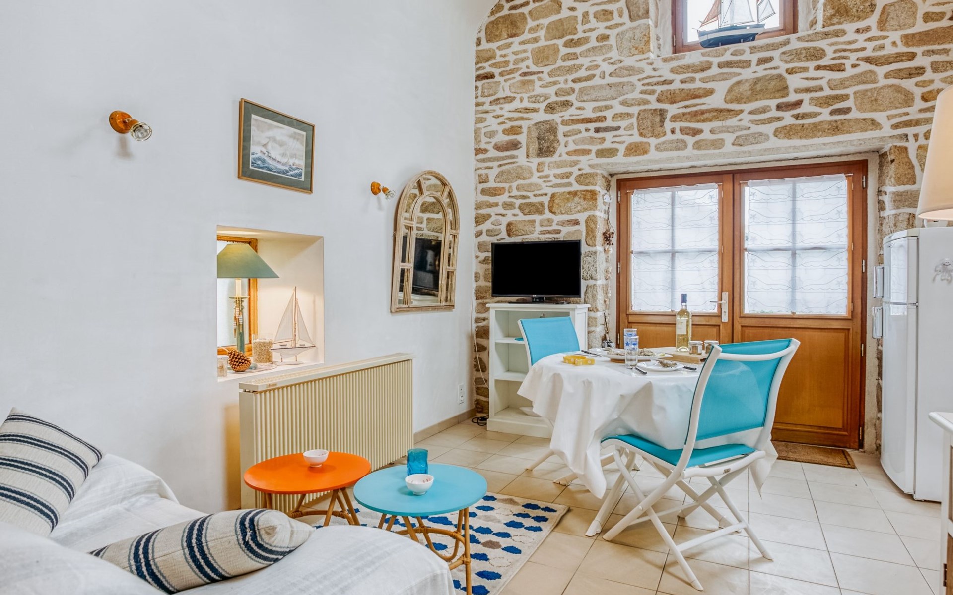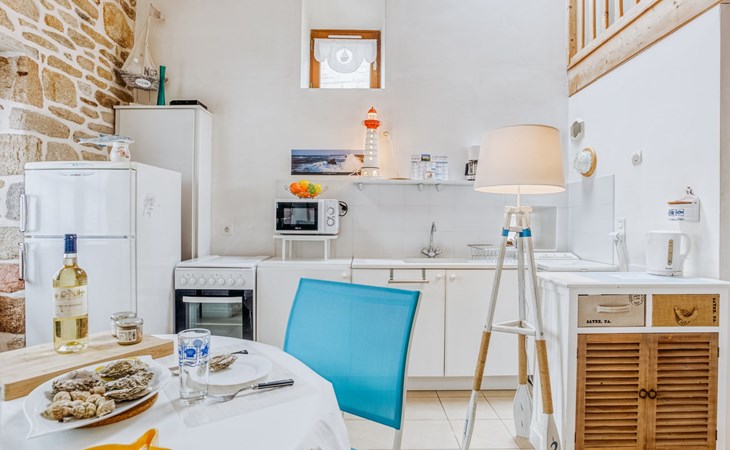 Kleines Reihenhaus "La Belle Océane" im Jahre 2016. Im Ort, 700 m vom Meer, 1 km vom Strand. Parkplatz beim Haus. Einkaufsgeschäft 1 km, Lebensmittelgeschäft 1 km, Einkaufszentrum 1 km, Zentrum zu Fuss in 10 Minuten erreichbar, Bushaltestelle 1.5 km, Sandstrand "Plage du port d'orange" 1 km, Felsstrand "Plage côte sauvage" 800 m, Thermalbad "Thalassothérapie de Quiberon" 7 km. Surfschule 1 km, Segelschule 1 km. Nahe gelegene Sehenswürdigkeiten: Côte sauvage de Quiberon 800 m, Quiberon 7 km, Site Mégalithique de Carnac 12 km, Golfe du Morbihan 15 km, Vannes 47 km, Lorient 50 km. Die Schlüsselübergabe findet bei der Agentur Interhome in Quiberon statt, 6 km.