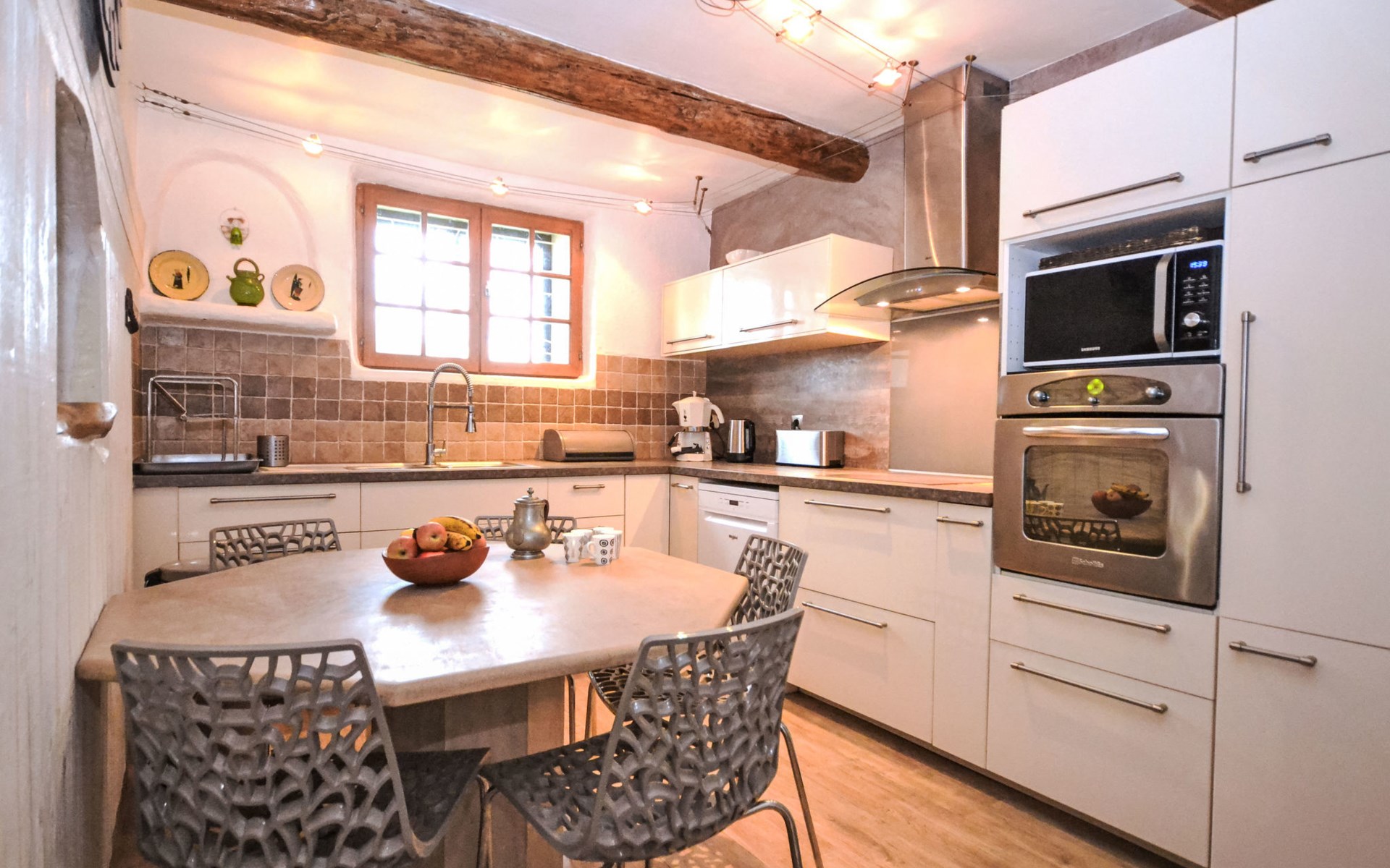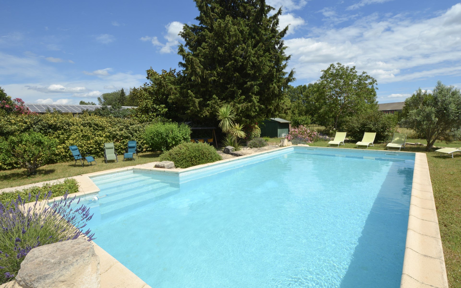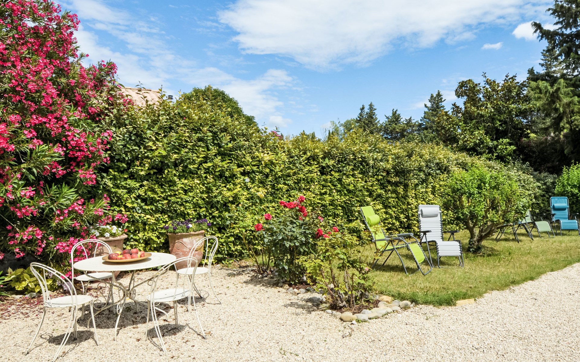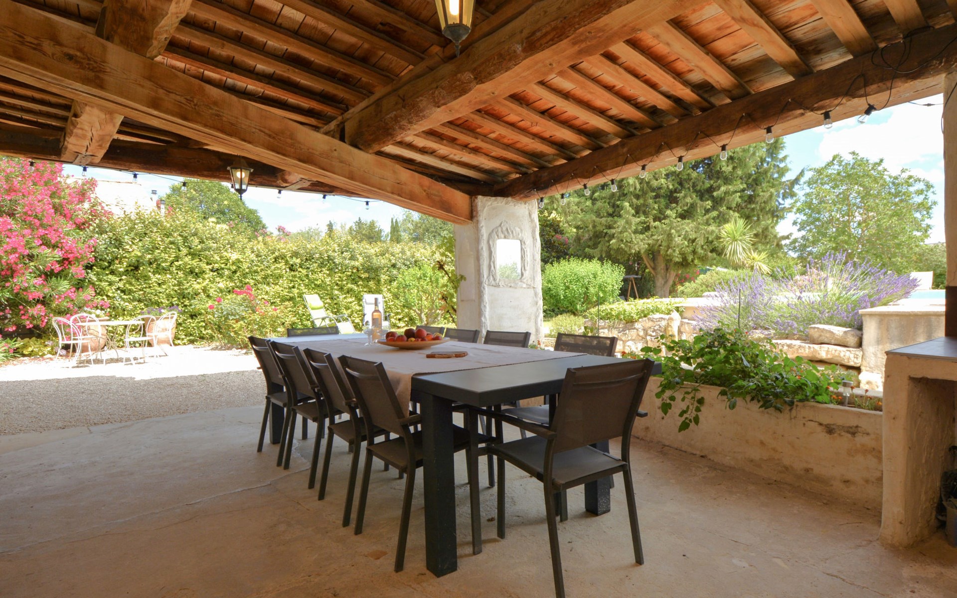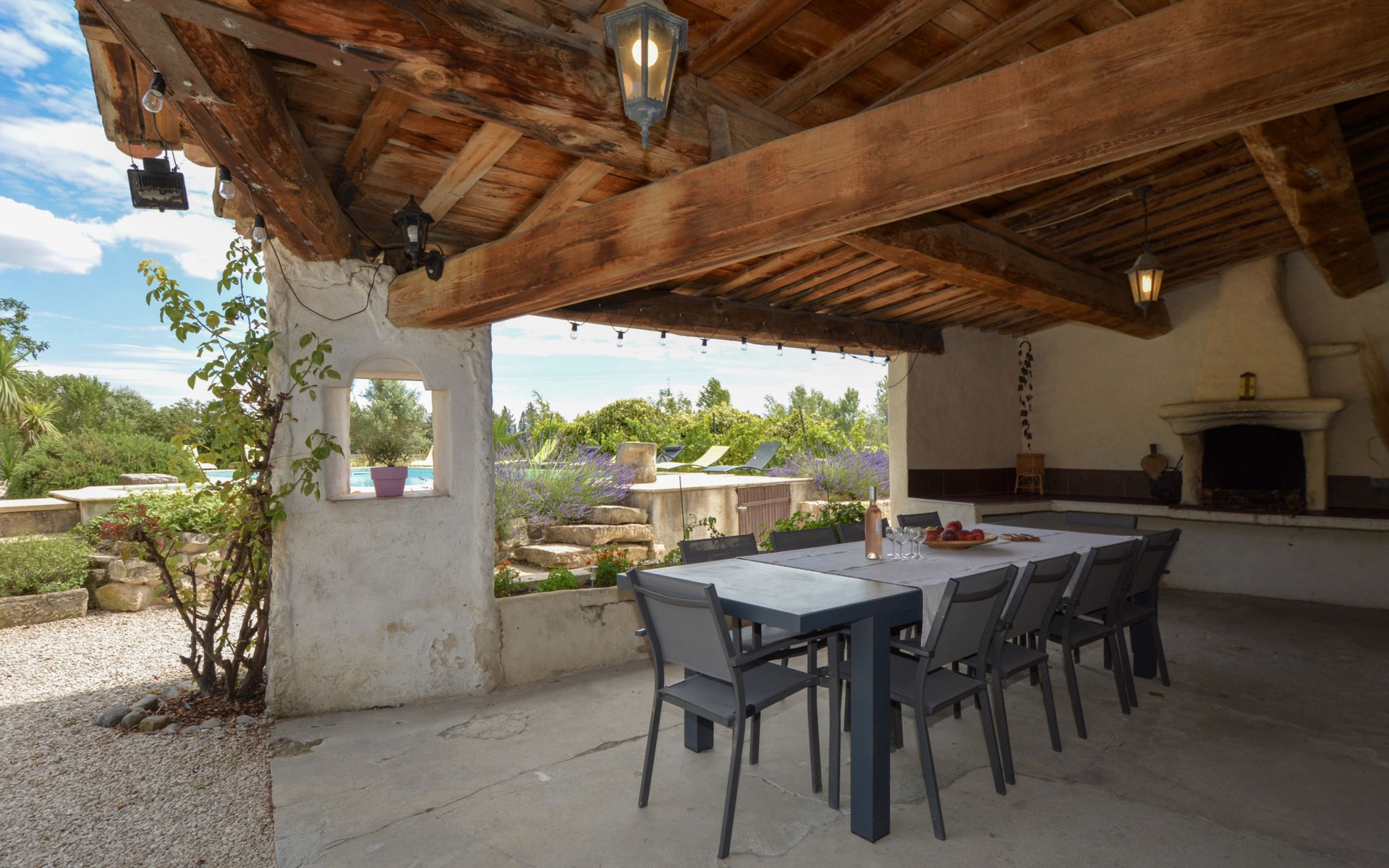 Altes Mas/Landhaus "La Grange Blanche", Baujahr 1850, renoviert im Jahre 2016. Ausserhalb des Ortes, 2 km vom Zentrum, im Grünen. Zur Alleinbenutzung: Grundstück 1'600 m2, Park 900 m2 (eingezäunt) mit Rasen und Bäumen, Schwimmbad (10 x 5 m, 170 cm tief, saisonale Verfügbarkeit: 15.Mai. - 30.Okt.) mit Innentreppe und Alarmanlage. Parkplatz (für 3 Autos) auf dem Grundstück. Einkaufsgeschäft 2 km, Lebensmittelgeschäft 2 km, Restaurant 2 km, Bushaltestelle "Les Cadets" 3 km. Reitstall 200 m. Nahe gelegene Sehenswürdigkeiten: Wave Island 10 km, Parc Spirou 10 km, L'Isle sur la Sorgue 11 km, Avignon 20 km. Bitte beachten: Fahrzeug empfohlen. Tiere in der Umgebung. Hauptstrasse in der Nähe. Das Haus ist halb abgetrennt, ohne Gegenüber. Die D28 führt hinter dem Haus vorbei, die Straße, die von Avignon nach Pernes führt. Park mit Pferden vor dem Haus.