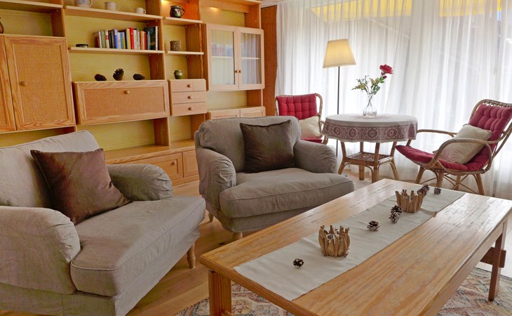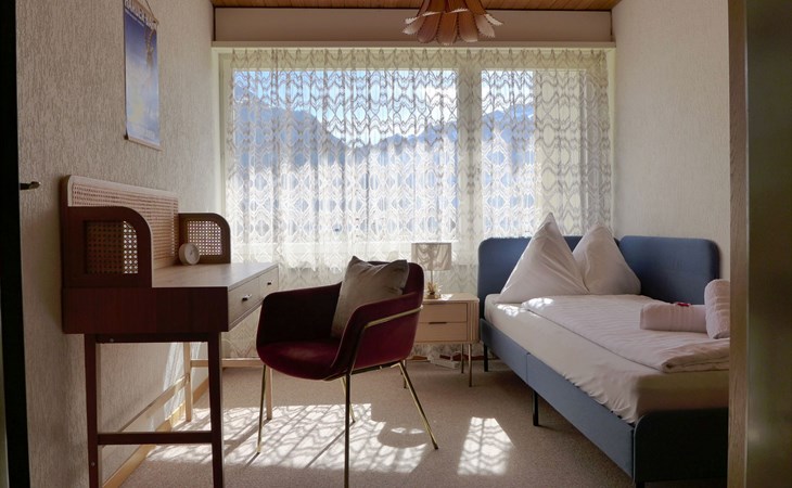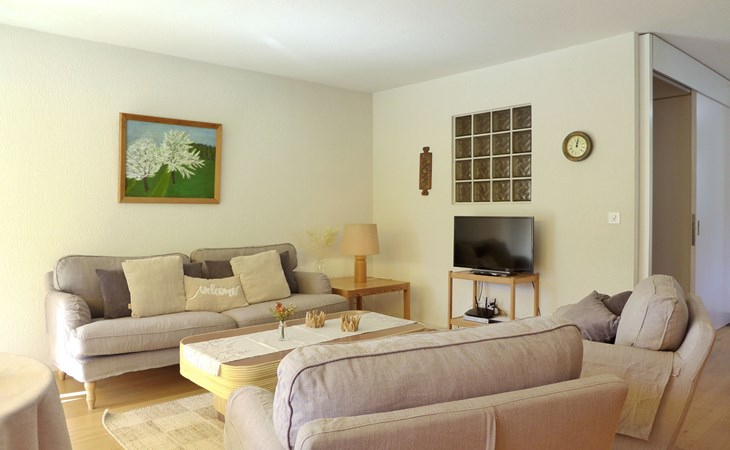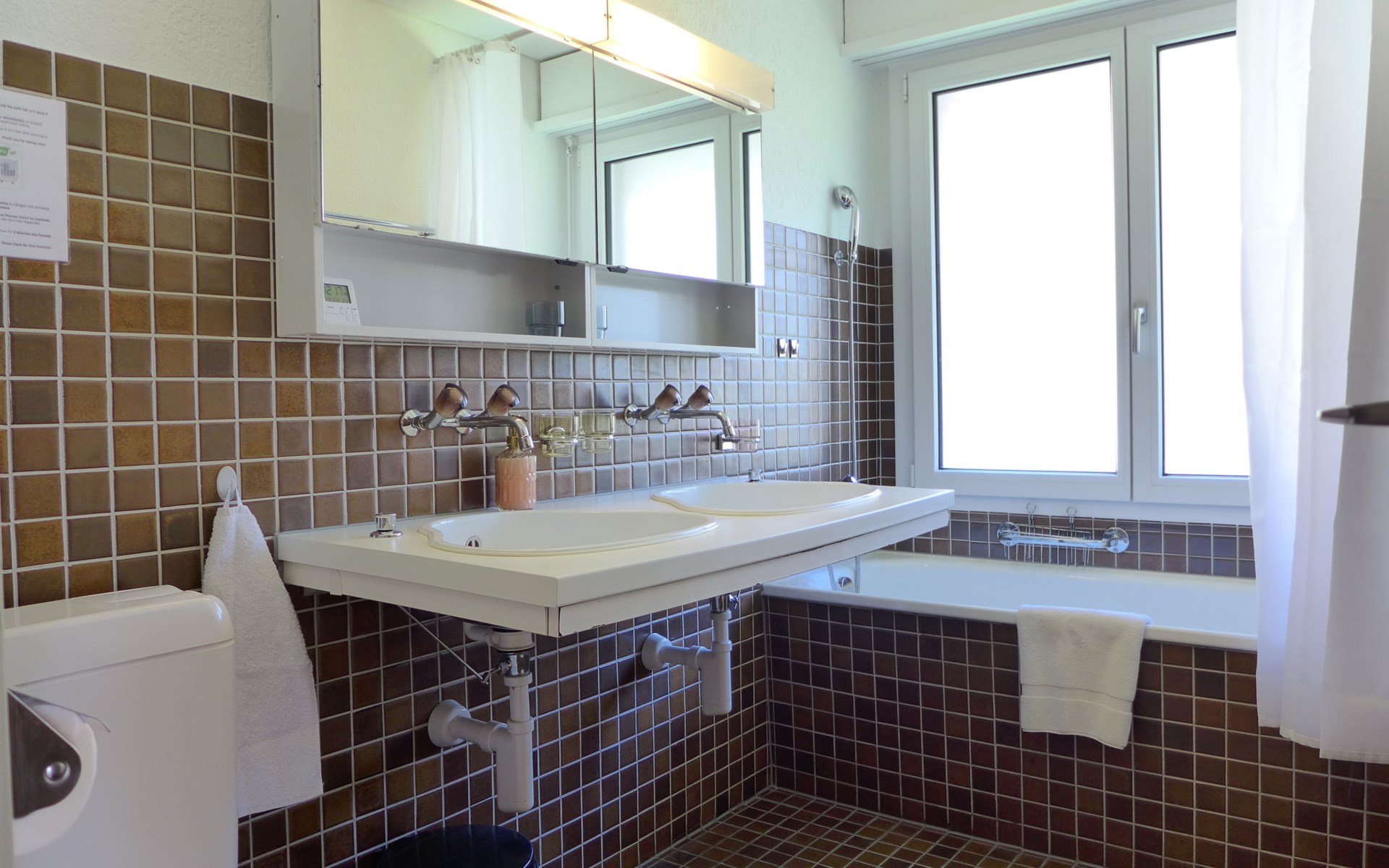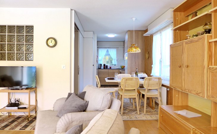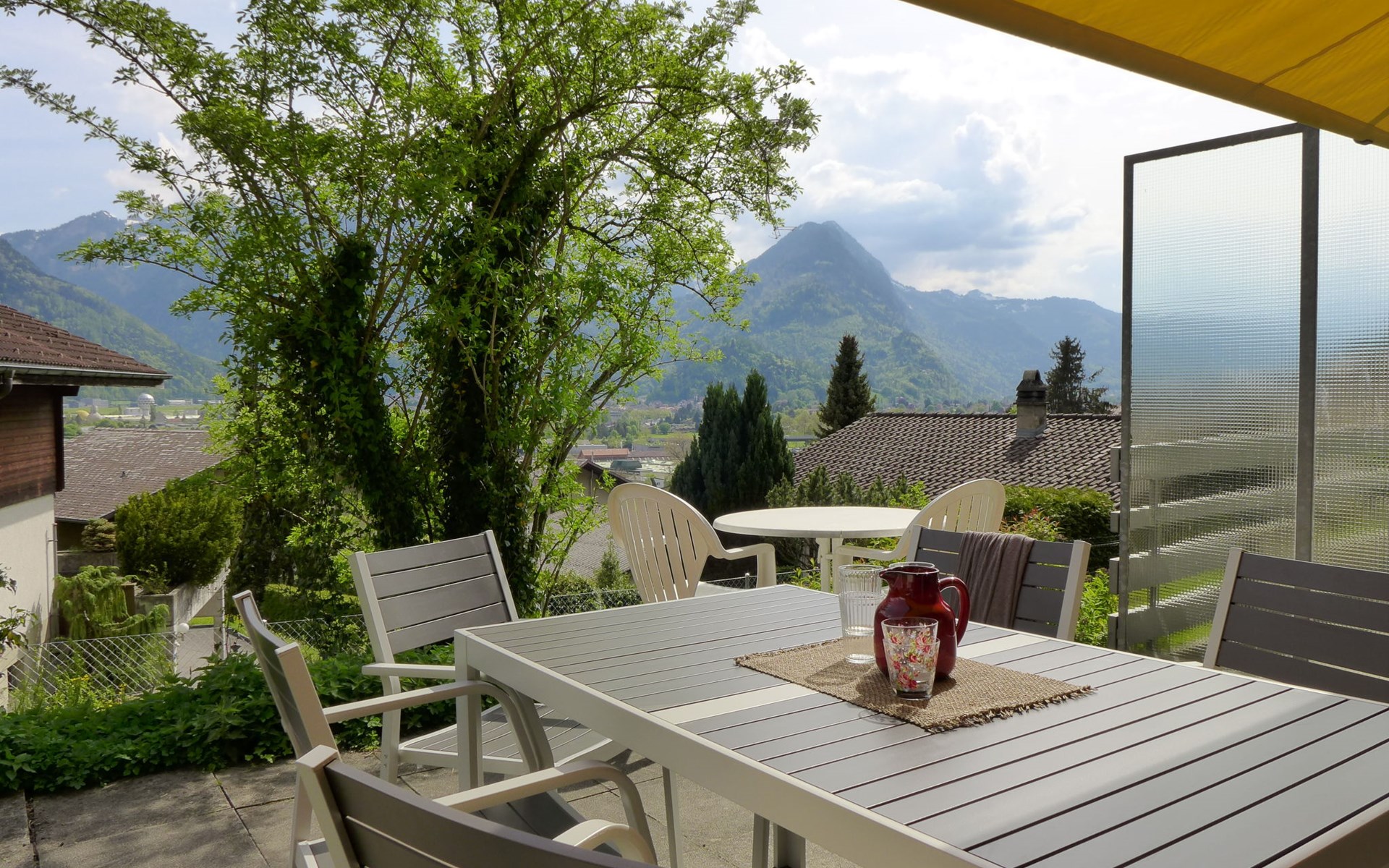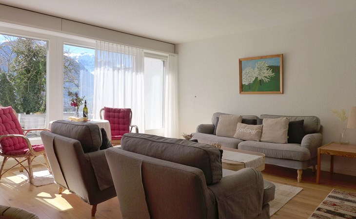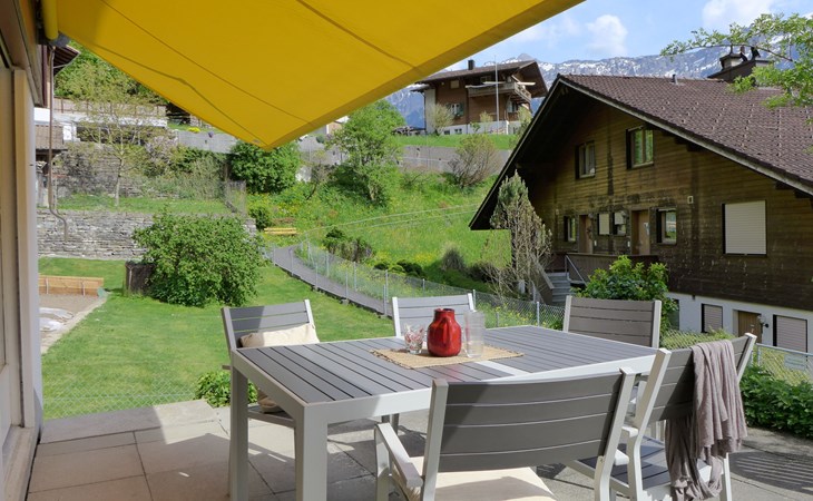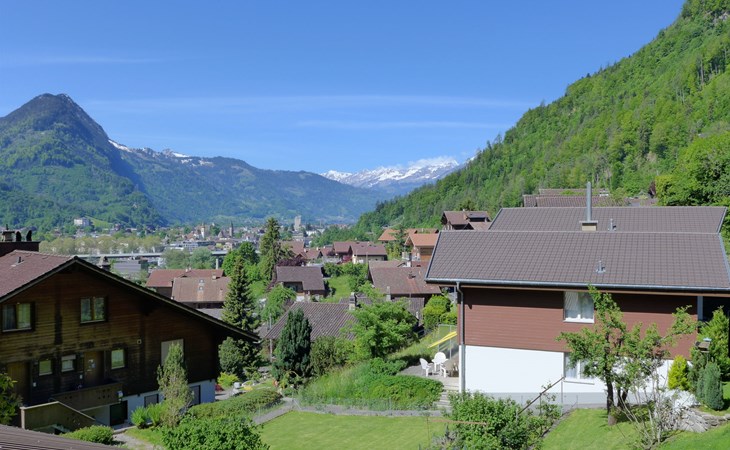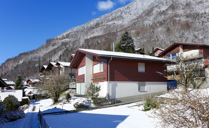Goldswil 2 km von Interlaken: Sehr gemütliches, komfortables Einfamilienhaus "Salzhubelweg", auf 2 Stockwerken, einseitig angebaut. Ruhige, sonnige Lage am Hang, in einem Wohnquartier, 1 km vom See, in einer Sackgasse. Im Hause: Zentralheizung, Waschmaschine (zur Mitbenutzung), Trockenraum. Abstellraum vorhanden. Zufahrt bis zum Haus. Treppenweg (15 Stufen) bis zum Haus. Parkplatz beim Haus. Lebensmittelgeschäft 500 m, Supermarkt 2.4 km, Restaurant 600 m, Bushaltestelle "Parkhotel" 200 m, Bahnstation "Interlaken Ost" 2.4 km, Freibad 3 km, Hallenbad 3 km, Badesee "Burgseeli" 1 km. Golfplatz (18 Loch) 5 km, Tennis 3.5 km, Minigolf 3.5 km, Wanderwege ab Haus 50 m, Skisportanlagen 20 km. Nahe gelegene Sehenswürdigkeiten: Interlaken, Jungfraujoch, Schilthorn Piz Gloria. Bekannte Skigebiete sind gut erreichbar: Wengen-Männlichen, Grindelwald-First, Mürren-Schilthorn. Bekannte Seen in der Umgebung sind gut erreichbar: Brienzersee. Wandergebiete: Jungfrau Region. Bitte beachten: geeignet für Familien.
