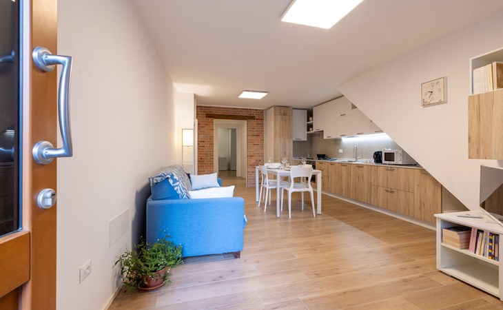 Zweifamilienhaus "Casa Vale", auf 2 Stockwerken, einseitig angebaut. Cividale, 18 km vom Zentrum von Udine, 60 km vom Zentrum von Grado, zentrale Lage, im Herzen der Stadt, 60 km vom Meer, in einer Fussgängerzone. Öffentliche Parkplätze 120 m. Supermarkt 450 m, Restaurant 75 m, Bar 20 m, Bäckerei 300 m, Bushaltestelle 750 m, Bahnstation "Cividale del Friuli" 750 m, Sandstrand "Grado" 60 km, Steinstrand "Fiume Natisone" 500 m. Wandergebiete: Camino Celeste 700 m. Zufahrt zum Be- und Entladen bis auf 20 m möglich.