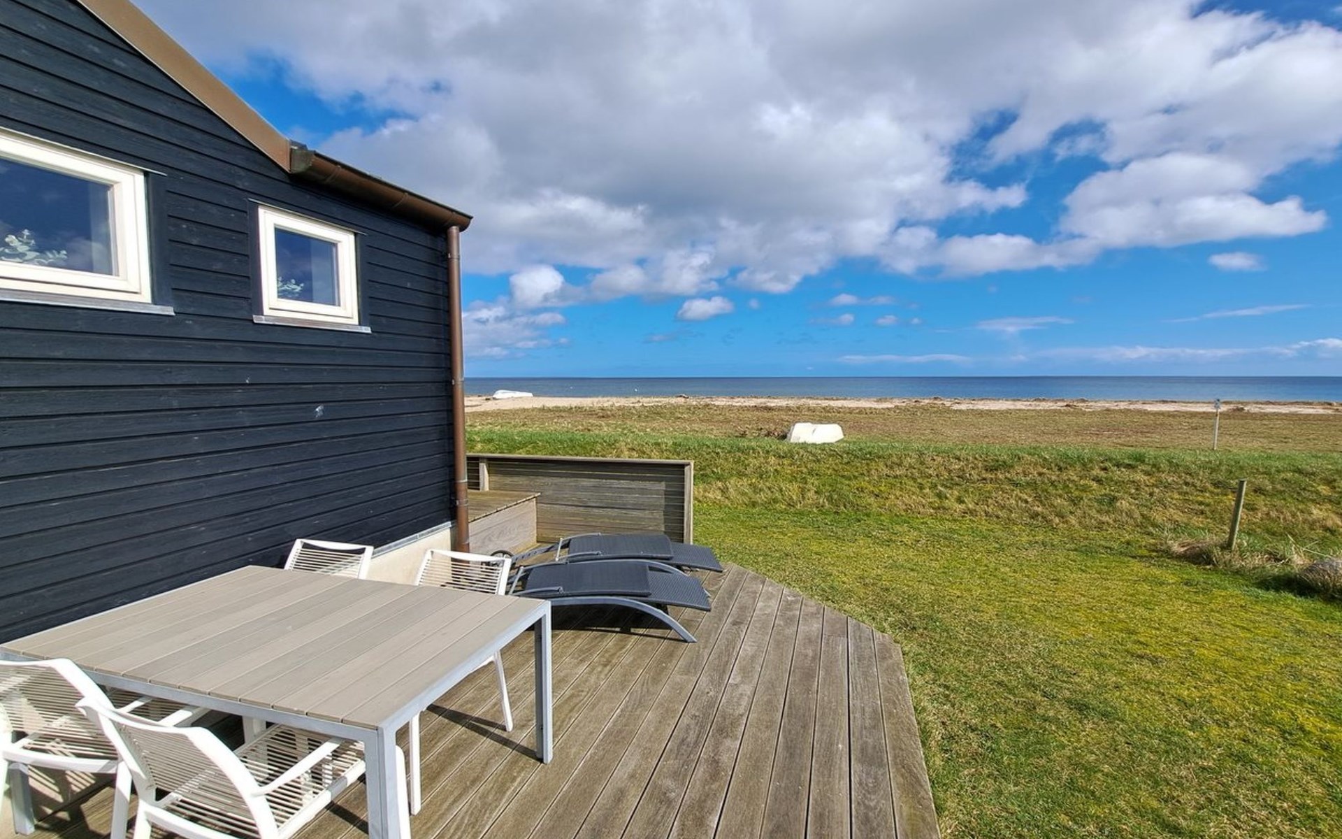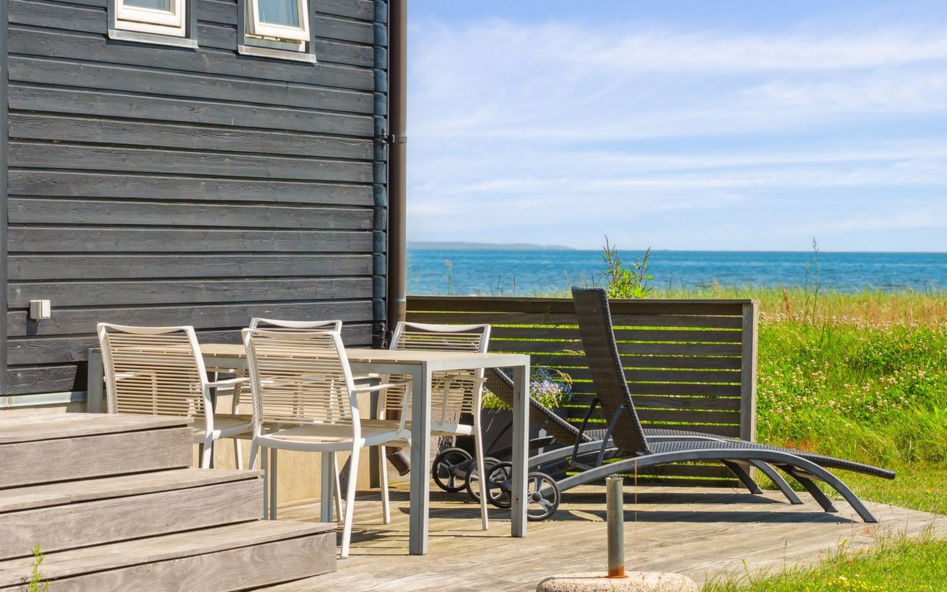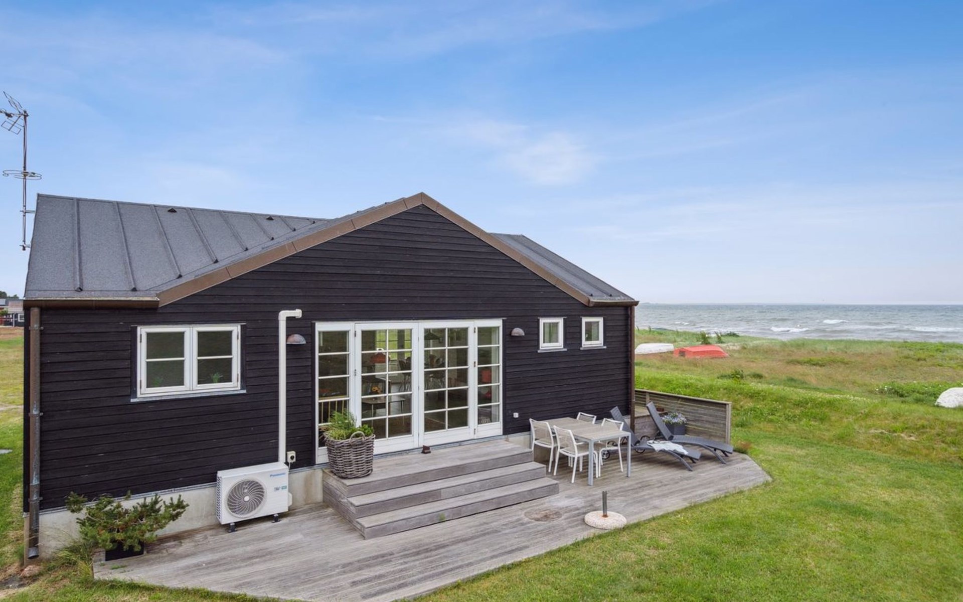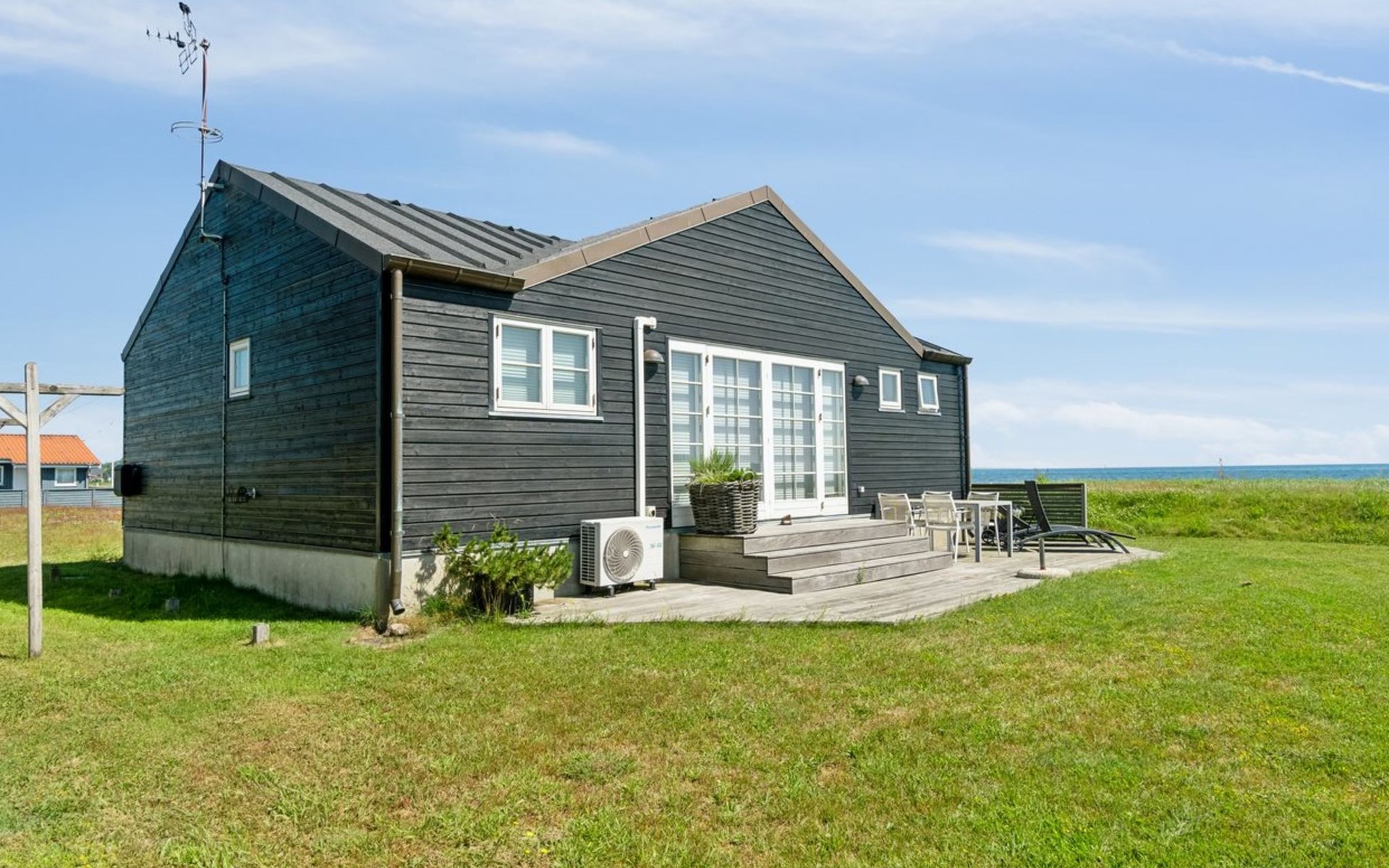 Einfamilienhaus, Baujahr 2009. 30 m vom Meer. Zur Alleinbenutzung: naturbelassenes Grundstück 500 m2. Grill. Im Hause: Waschmaschine. Parkplatz beim Haus. Lebensmittelgeschäft 125 m. Der Besitzer akzeptiert keine Jugendgruppen.