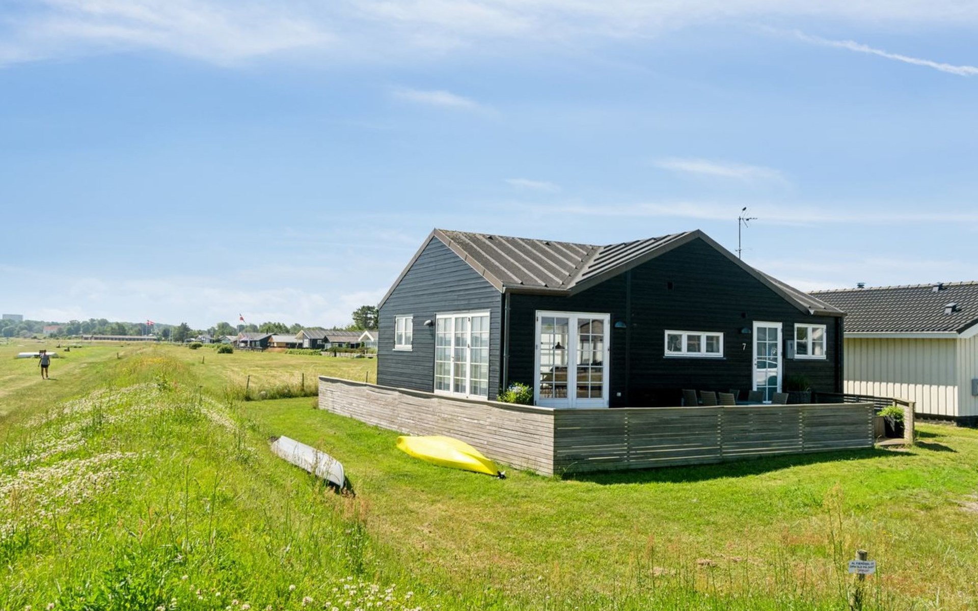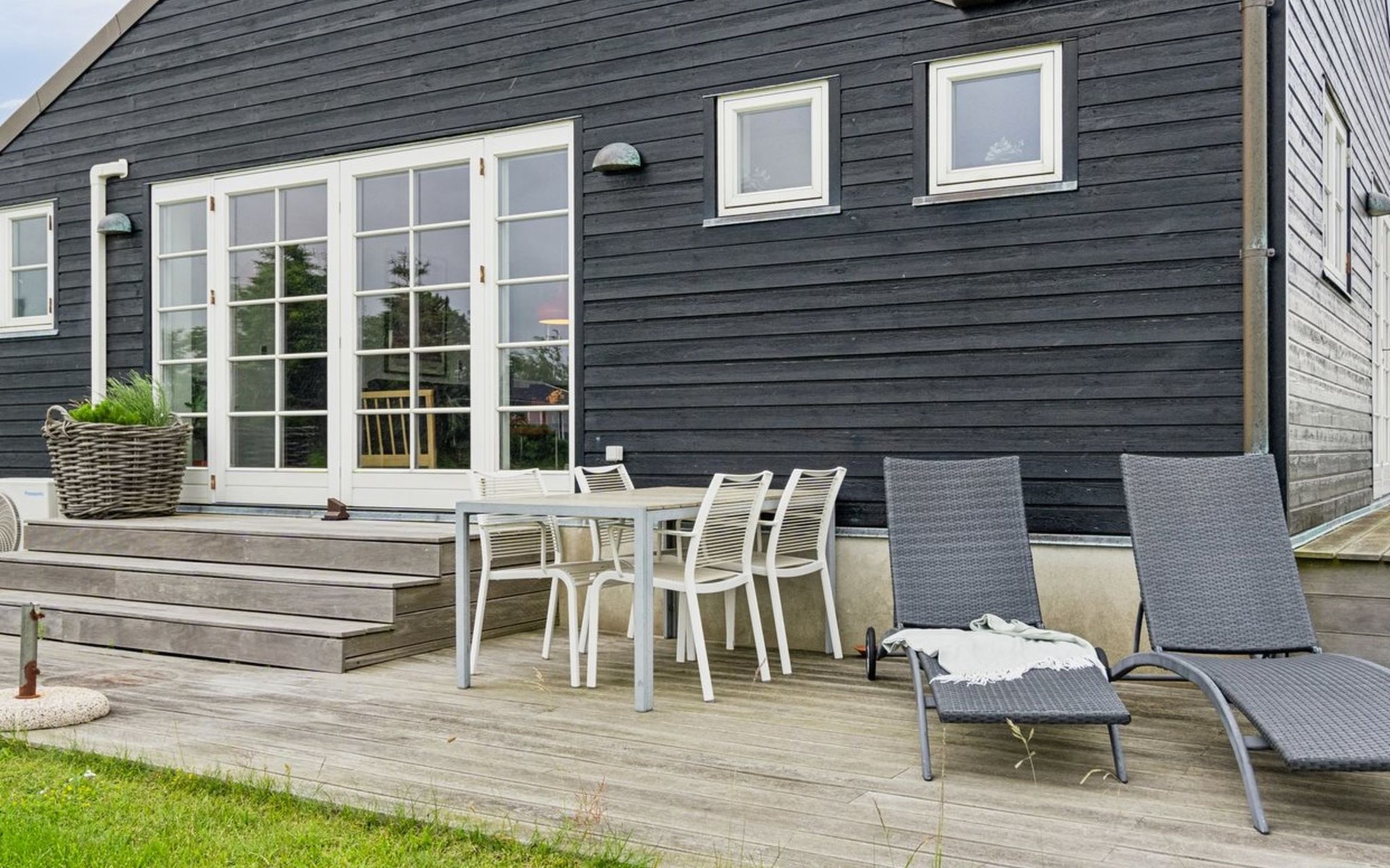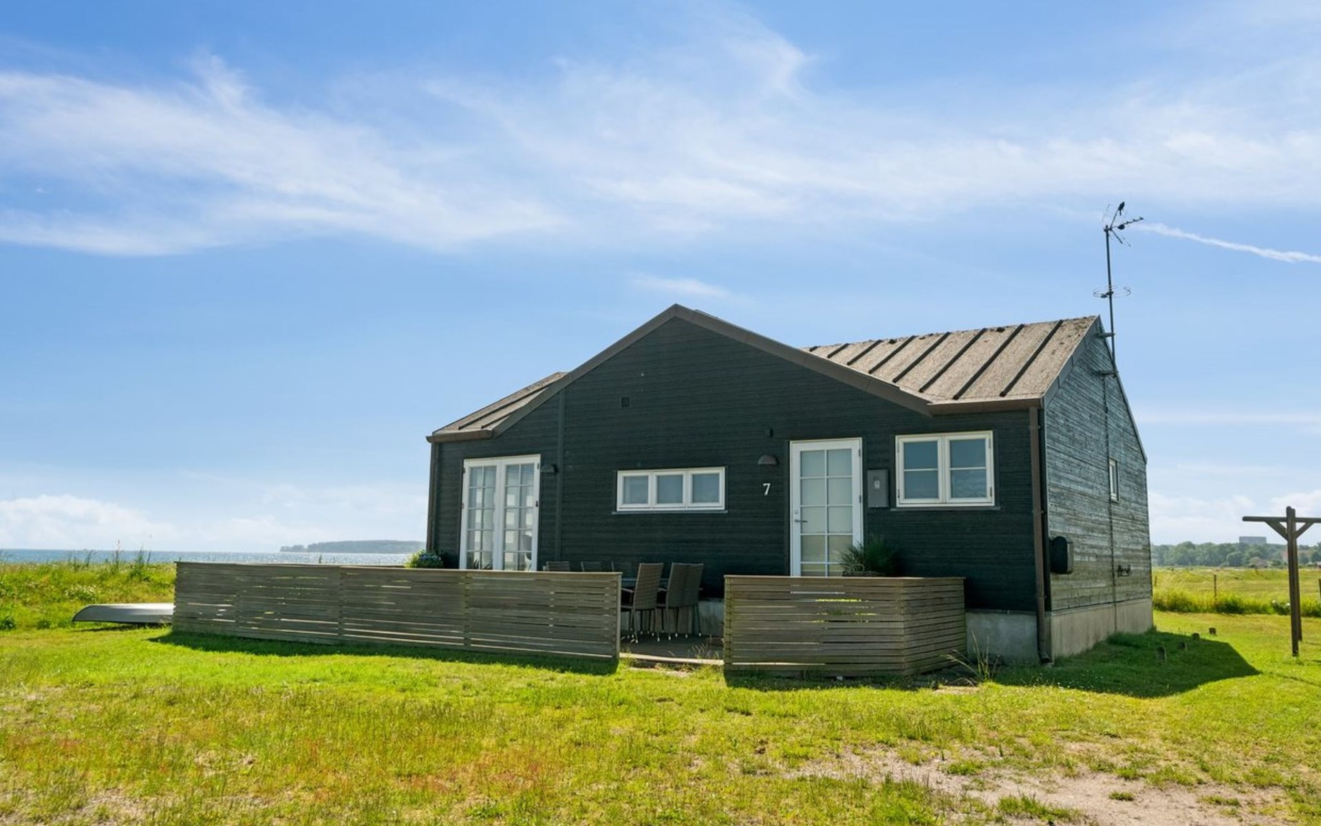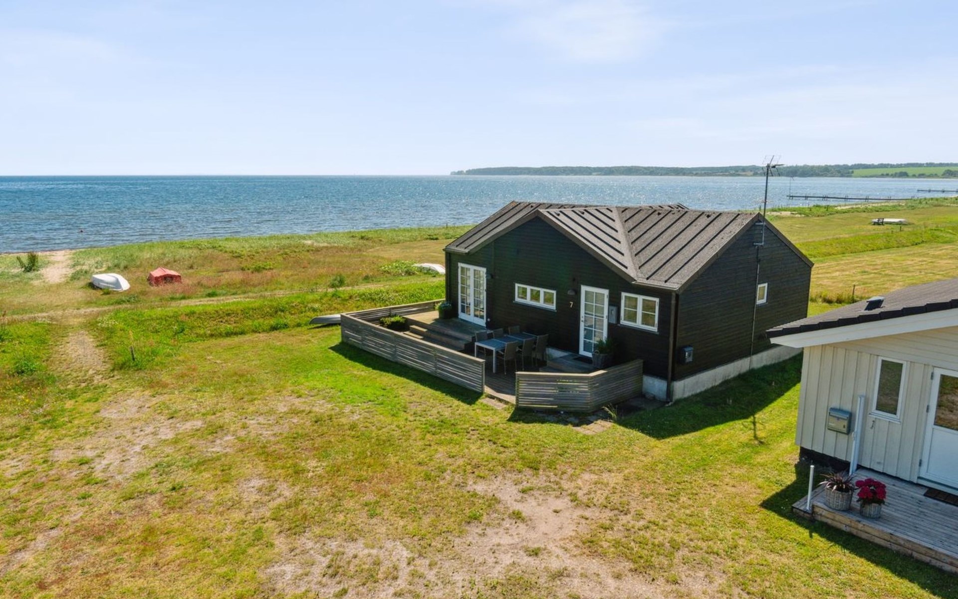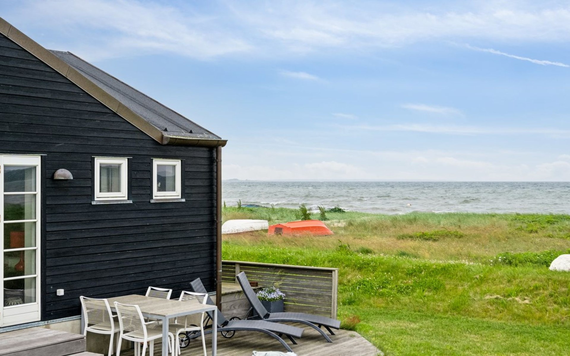 Einfamilienhaus, Baujahr 2009. 30 m vom Meer. Zur Alleinbenutzung: naturbelassenes Grundstück 500 m2. Grill. Im Hause: Waschmaschine. Parkplatz beim Haus. Lebensmittelgeschäft 125 m. Der Besitzer akzeptiert keine Jugendgruppen.