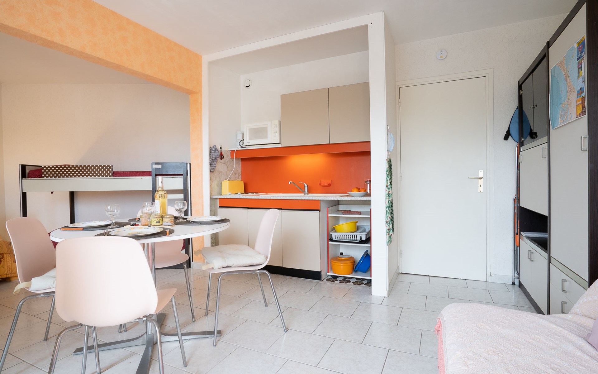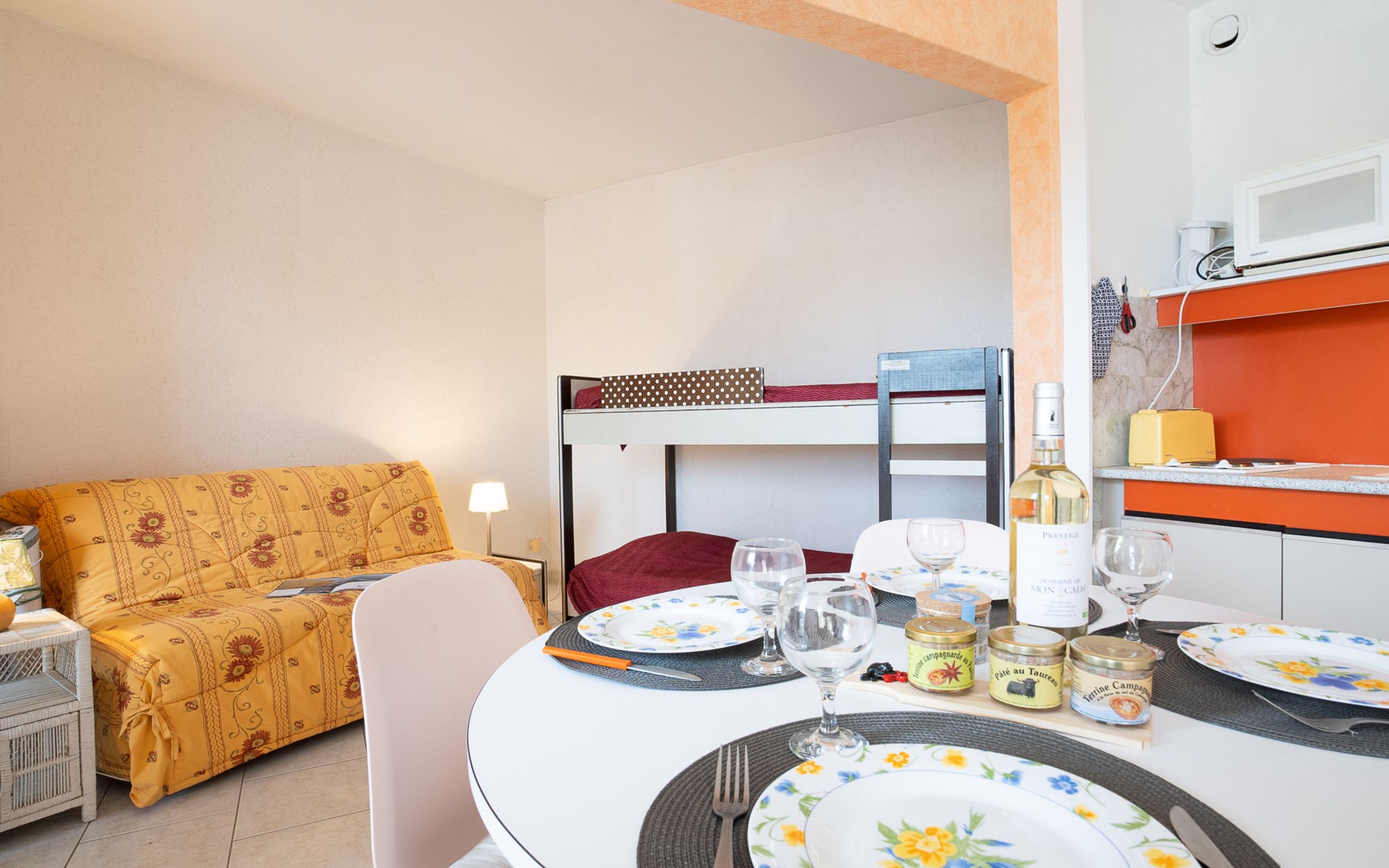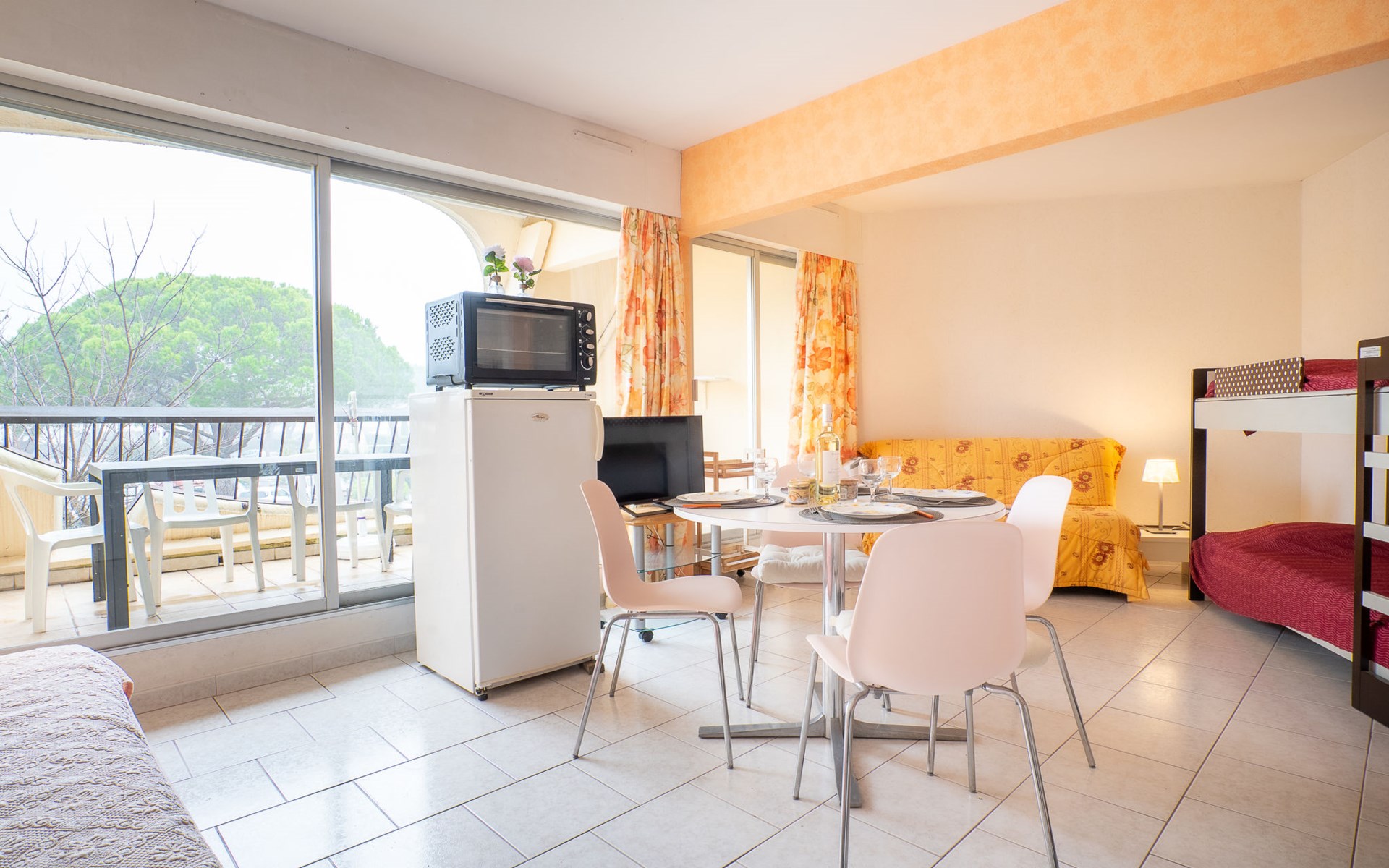 Residenz "Escale Port", auf 3 Stockwerken. Im Ortsteil la Plage Nord, 150 m vom Meer, 150 m vom Strand. Zur Mitbenutzung: Schwimmbad (100 - 250 cm tief, saisonale Verfügbarkeit: 15.Jun. - 15.Sep.). Kinderbecken, Parkplatz (beschränkte Anzahl). Einkaufsgeschäft, Lebensmittelgeschäft, Supermarkt 350 m, Einkaufszentrum 150 m, Restaurant, Sandstrand "Plage Nord" 150 m, Thermalbad "Thalazur les Bains de Camargue" 4 km. Sporthafen 50 m, Jacht-Hafen 50 m, Tennis 1 km, Minigolf 400 m, Reitstall 1 km. Nahe gelegene Sehenswürdigkeiten: Seaquarium 7 km, Casino Flamingo 8 km, Aigues-Mortes 10 km, La Grande-Motte 13 km, Montpellier 32 km, Nîmes 52 km. Wandergebiete: Réserve Naturelle de Camargue.