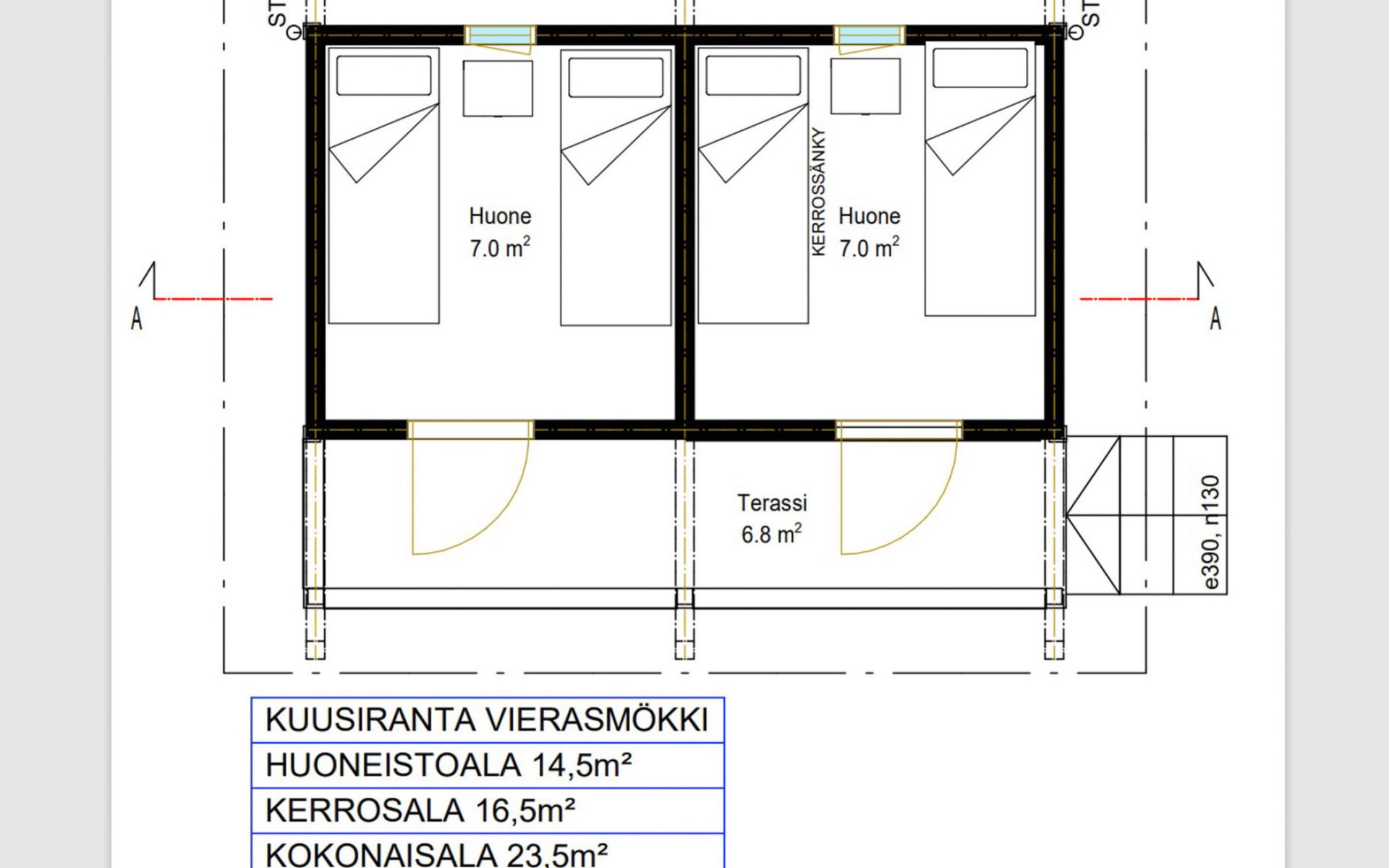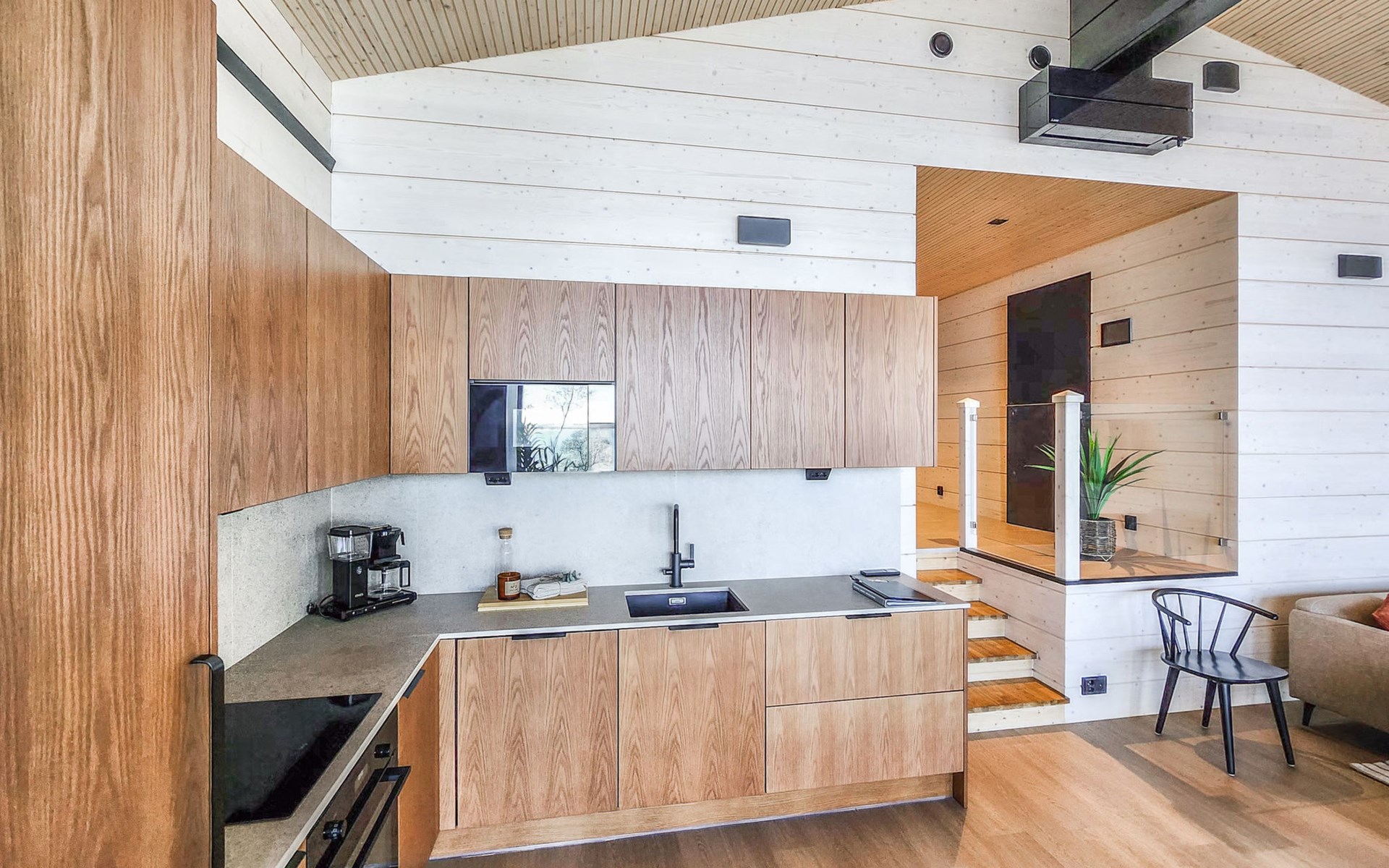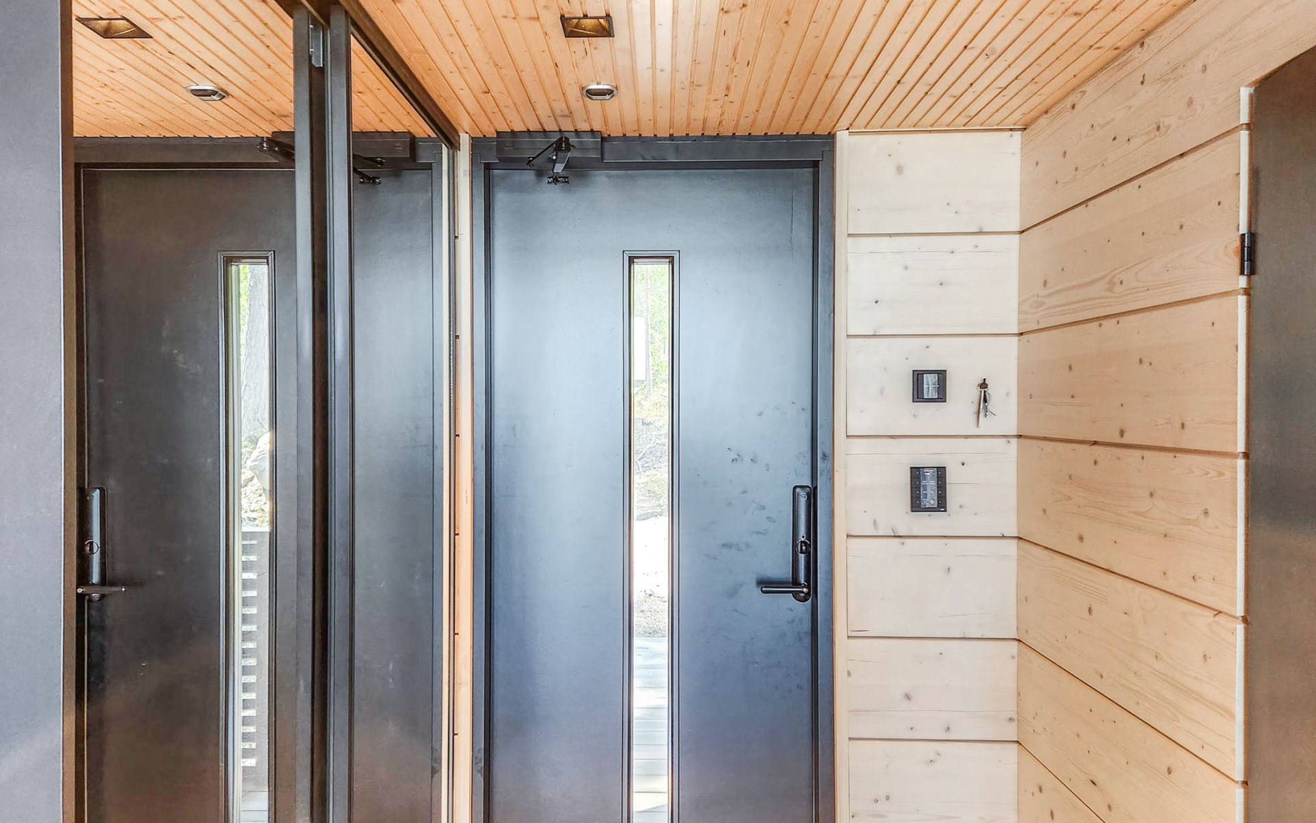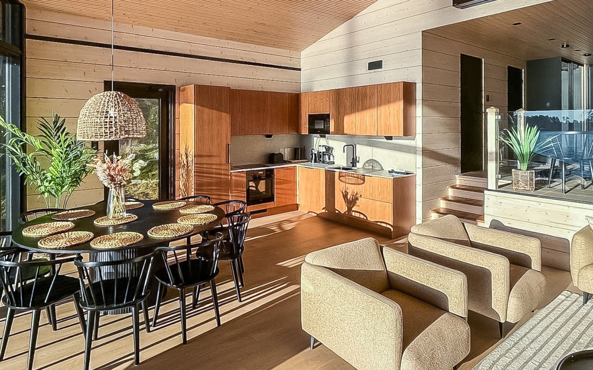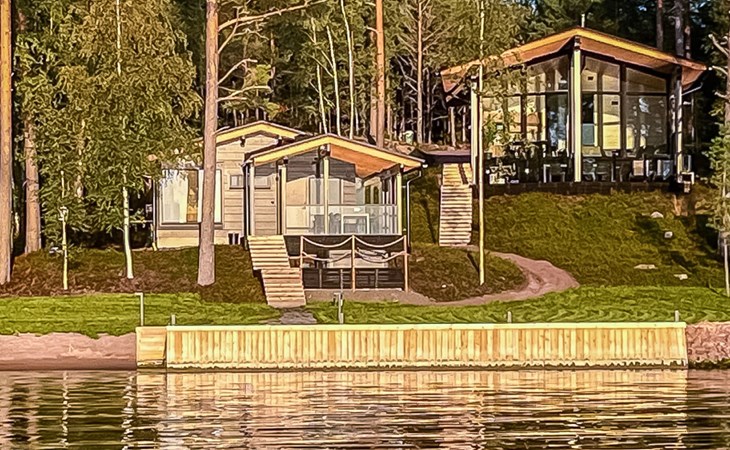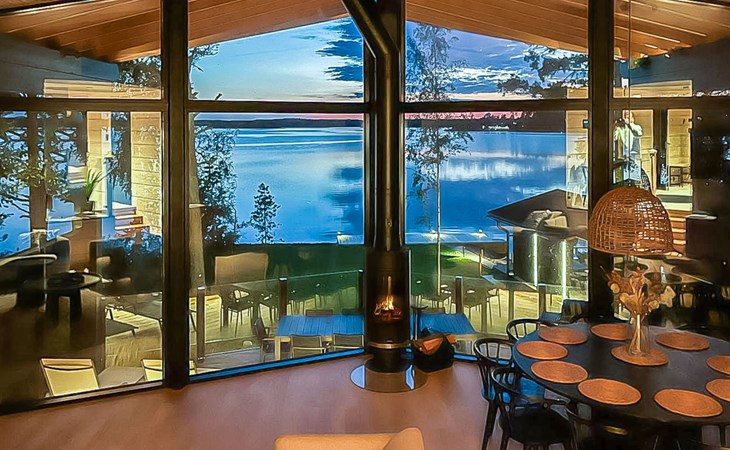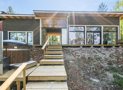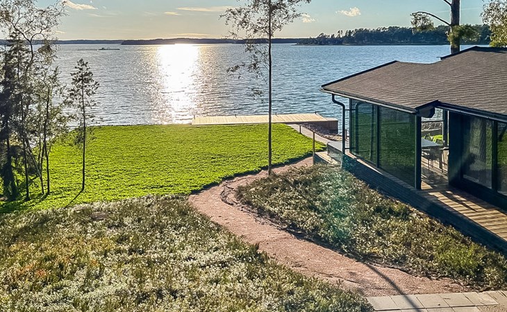 The complex consists of a 96 m² main villa, a 14 m² guesthouse, and a 26 m² seaside sauna. This carefully designed ensemble invites you to relax and unwind. The main building, guesthouse, and the atmospheric sauna form a stylish and functional setting that combines modern comfort with the authentic spirit of the archipelago.