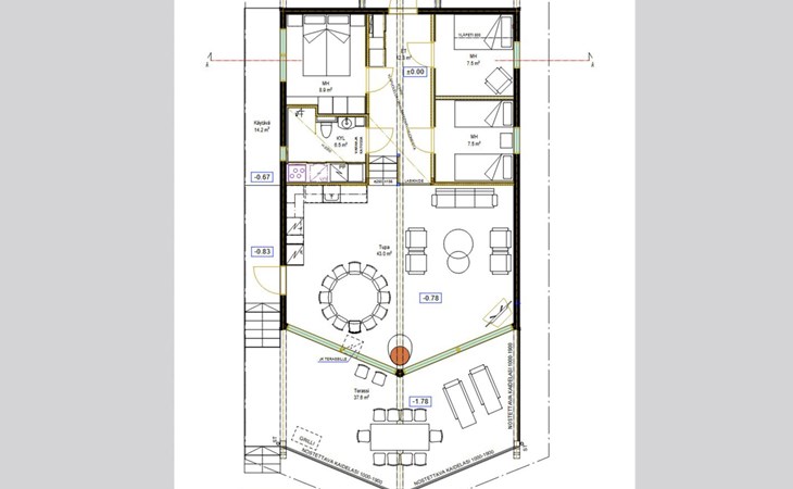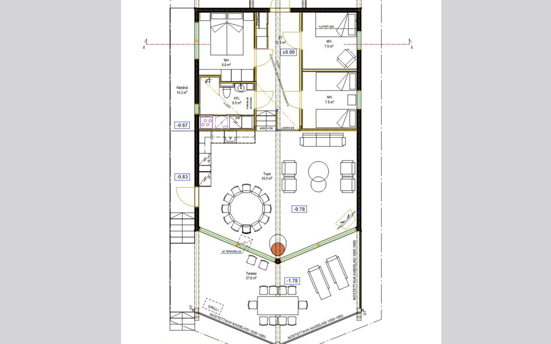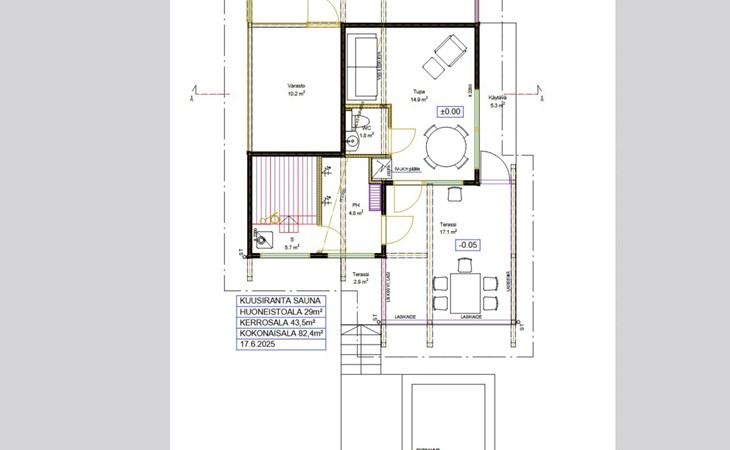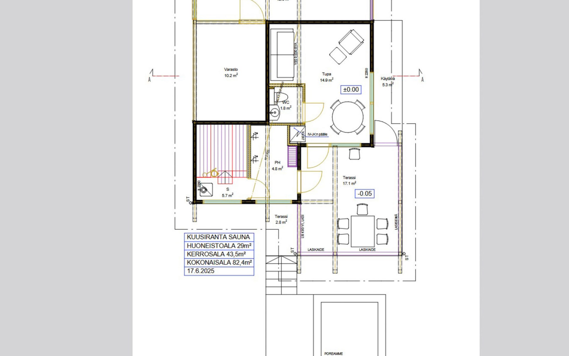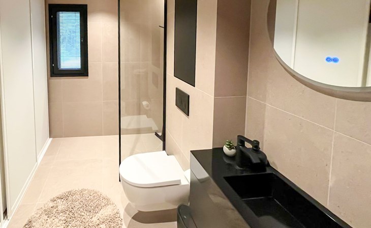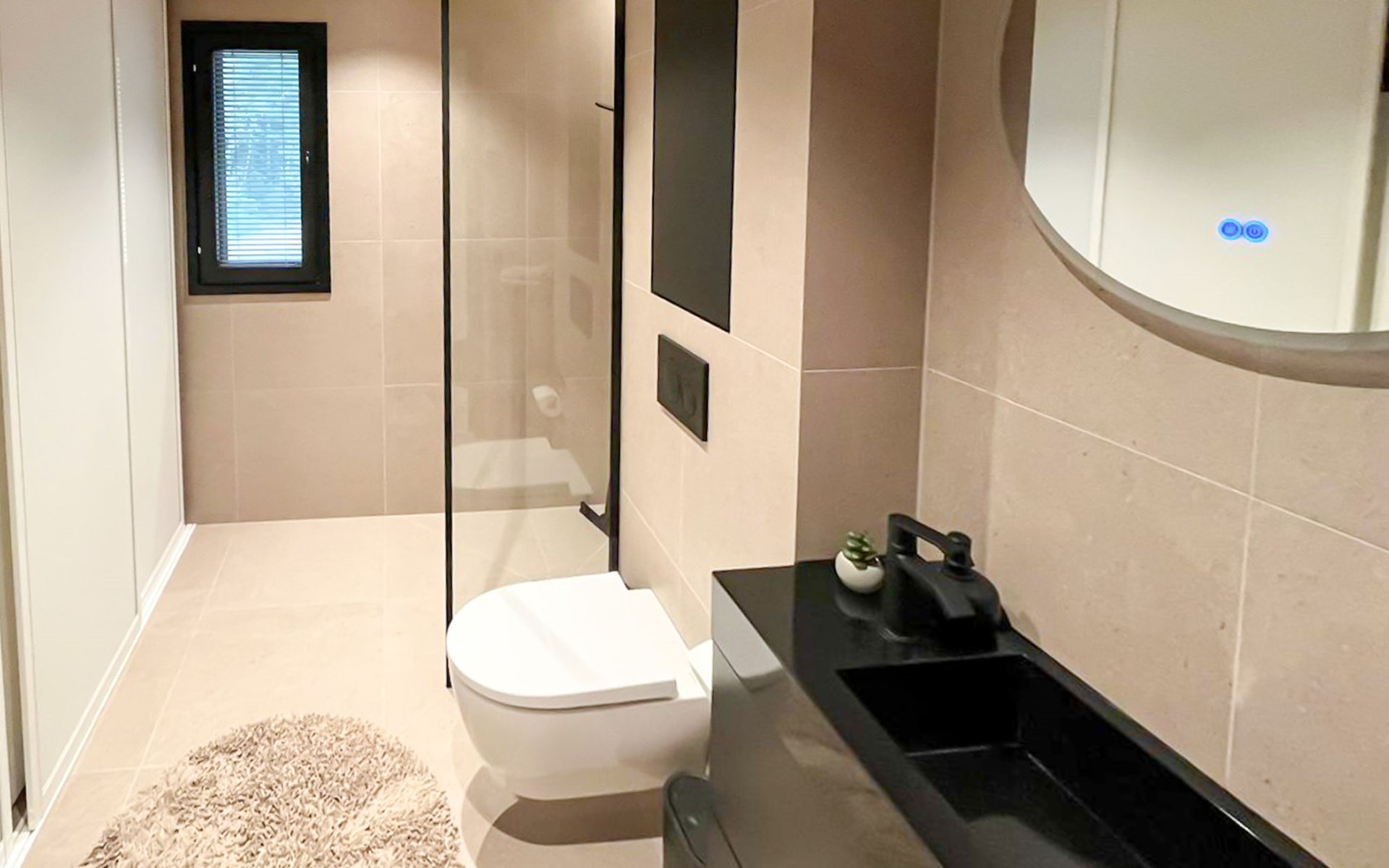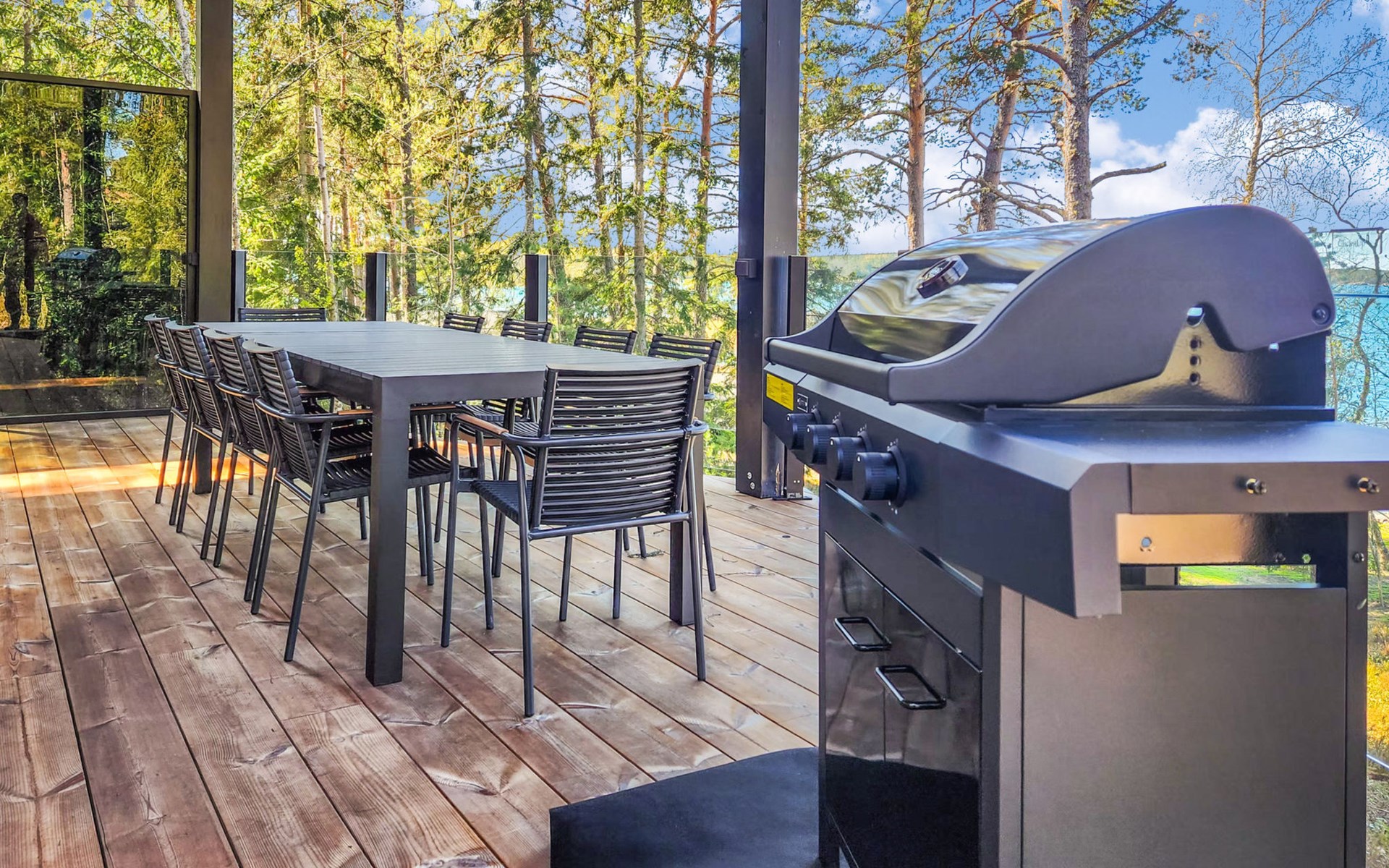 The complex consists of a 96 m² main villa, a 14 m² guesthouse, and a 26 m² seaside sauna. This carefully designed ensemble invites you to relax and unwind. The main building, guesthouse, and the atmospheric sauna form a stylish and functional setting that combines modern comfort with the authentic spirit of the archipelago.