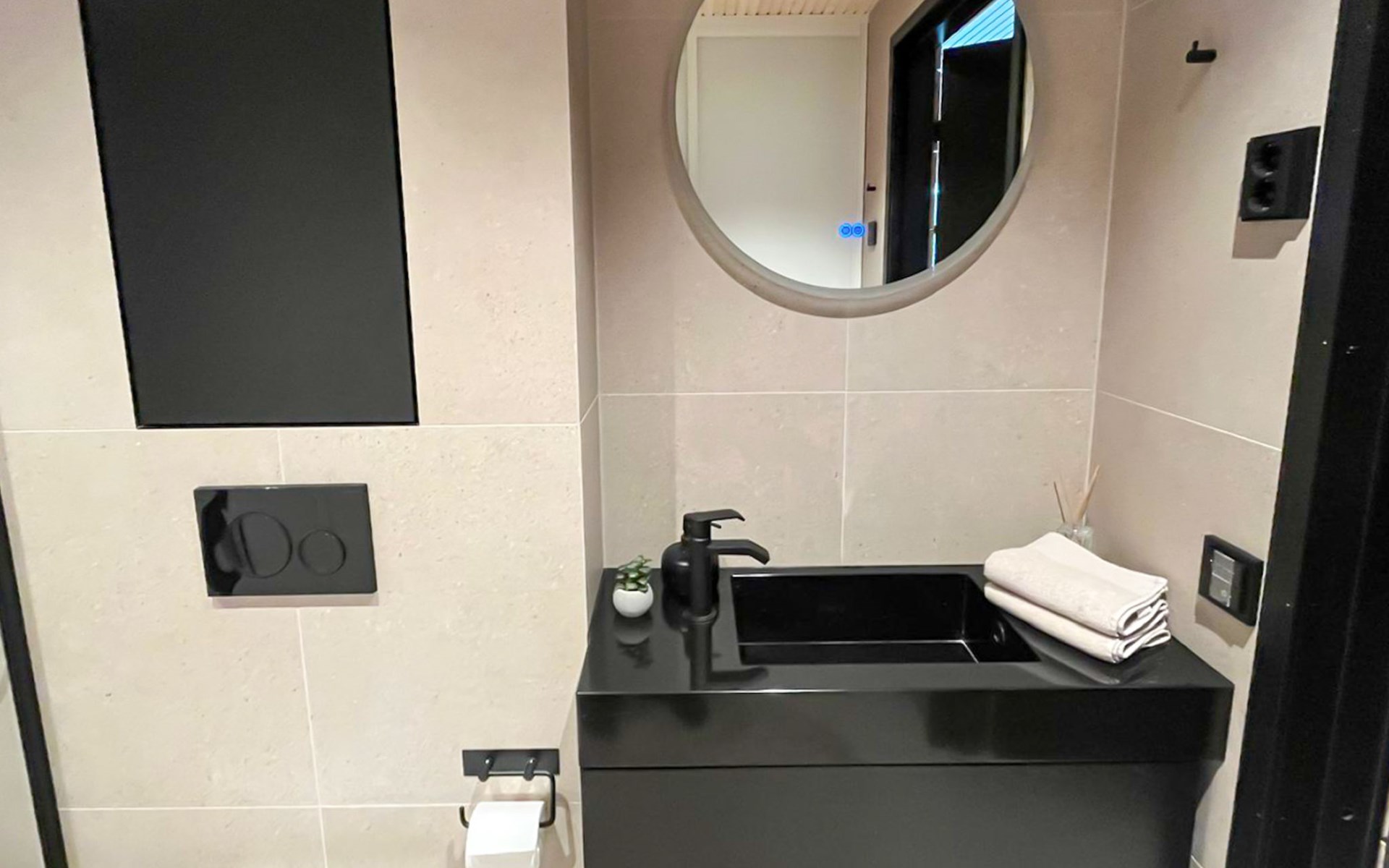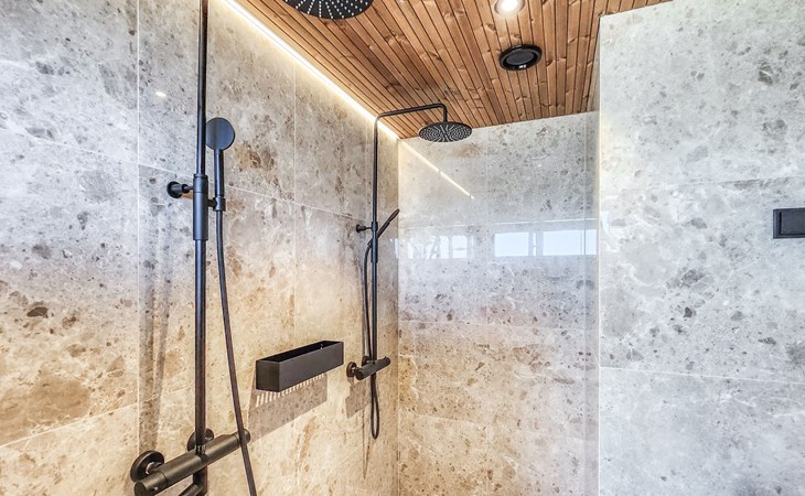 By the water’s edge, the traditional wood-heated sauna promises unforgettable experiences — direct sea views and a comfortable living area make every sauna session a delight. The sauna includes two separate showers and a WC. The cozy living area is equipped for longer stays. On the sauna terrace, you can cool off or relax in the hot tub, adding a luxurious touch to your stay.