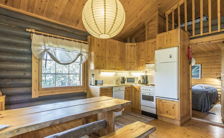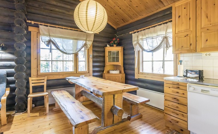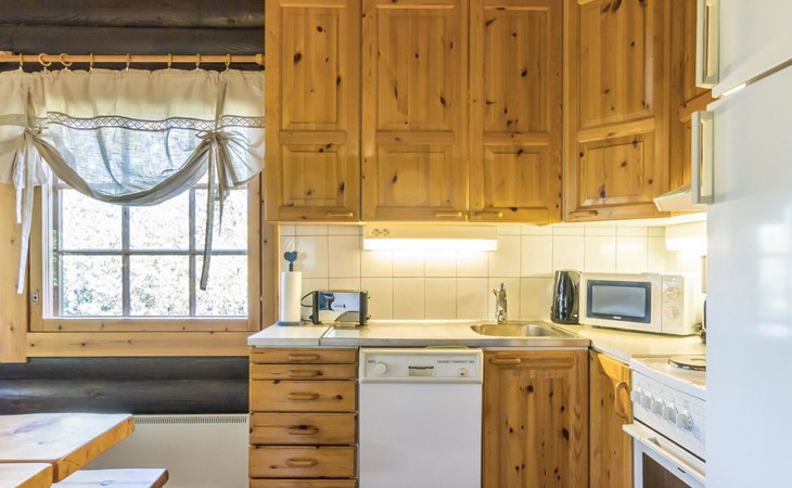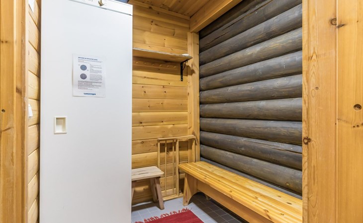 In connection with the covered terrace, there is a locked storage room where you can store e.g. downhill skis during your stay (the keys are in the coat rack next to the front door). We also have firewood in stock. A children's set (travel crib, bed linen, potty, step stool, and high chair) is available for rent on-site.