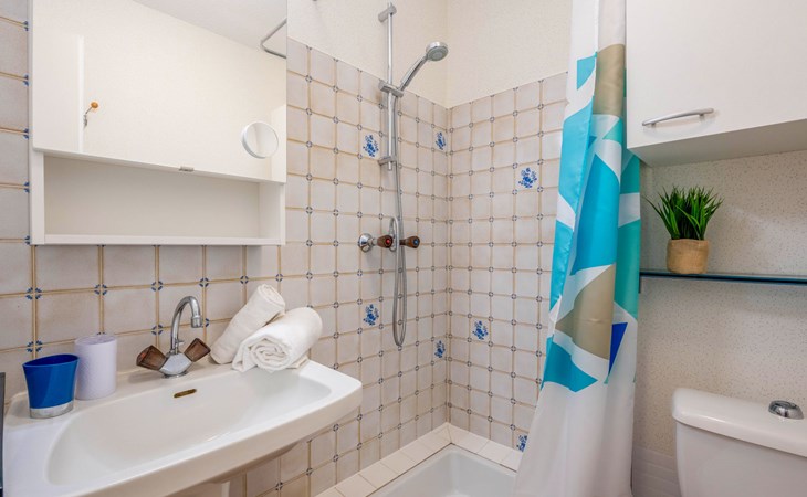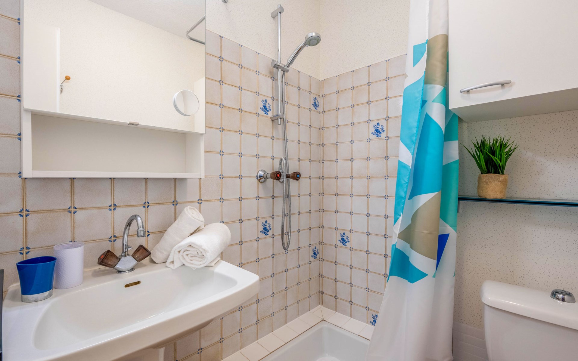 Kleine Residenz "MEN DU". Am Ortsrand, 1.8 km vom Zentrum von Carnac, 100 m vom Meer, 100 m vom Strand, Strasse zu überqueren. Im Hause: Einstellraum für Fahrräder. Einkaufsgeschäft, Lebensmittelgeschäft, Supermarkt 500 m, Restaurant 800 m, Sandstrand "Beaumer - Mendu" 100 m. Golfplatz (18 Loch) 15 km, Surfschule 1.7 km, Segelschule 2 km. Nahe gelegene Sehenswürdigkeiten: La Trinité sur Mer 2.7 km, Thalasso 2.8 km, Alignements de Carnac 4.1 km, Auray 15 km, Vannes 34 km.