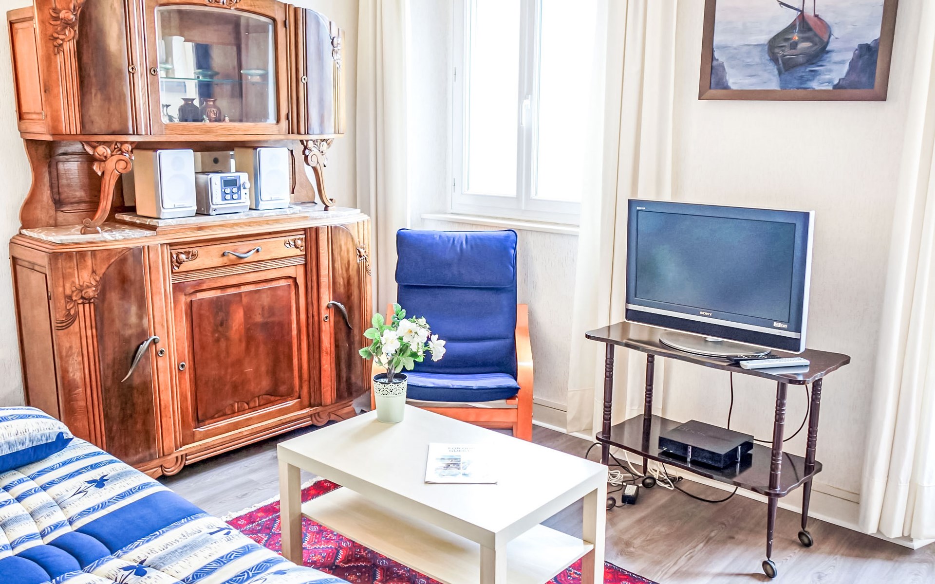 Mehrfamilienhaus "Beauchesne", auf 4 Stockwerken. Im Ortszentrum von La Cité Corsaire (Intra-Muros), vom Meer, 100 m vom Strand. Öffentliche Parkplätze auf der Strasse. Gebührenpflichtige Kurzparkzone. Einkaufsgeschäft 10 m, Lebensmittelgeschäft 300 m, Restaurant 50 m, Bäckerei 50 m, Café, Fähre "Condor Ferries (Jersey)" 1.5 km, Sandstrand "Bon secours" 100 m, Tauchzentrum 1.5 km, Thermalbad "Les Thermes Marins de Saint Malo" 3 km. Sporthafen 400 m, Golfplatz (18 Loch) 15 km, Surfschule 3 km, Segelschule 150 m. Nahe gelegene Sehenswürdigkeiten: Le Grand Aquarium 4 km, Dinard 12 km, Cancale 15 km, Dinan 34 km, Casino Saint-Malo 2 km, Le Mont Saint Michel 55 km. Bitte beachten: kein Fahrstuhl vorhanden. Die Wohnung befindet sich in einer für den Verkehr begrenzt zugänglichen Zone (ZTL).