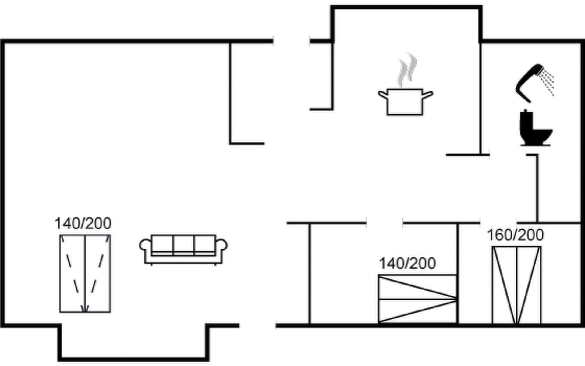 Einfamilienhaus, Baujahr 2001. 350 m vom Meer. Zur Alleinbenutzung: naturbelassenes Grundstück 1'286 m2. Terrasse (45 m2), Grill. Im Hause: Waschmaschine. Parkplatz beim Haus. Lebensmittelgeschäft 1.7 km. Golfplatz 5 km. Der Besitzer akzeptiert keine Jugendgruppen.