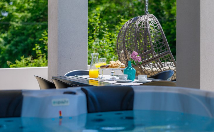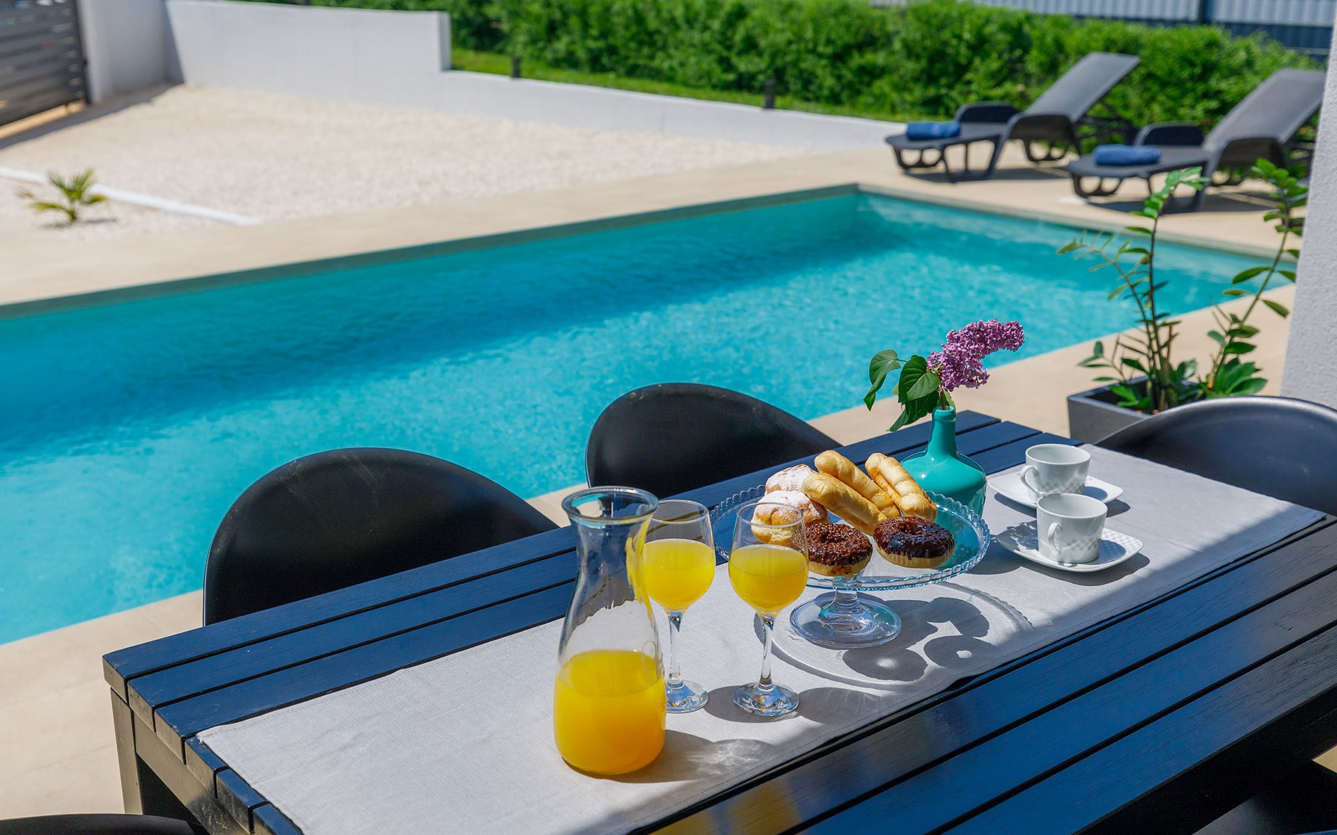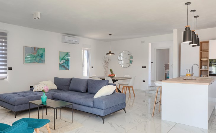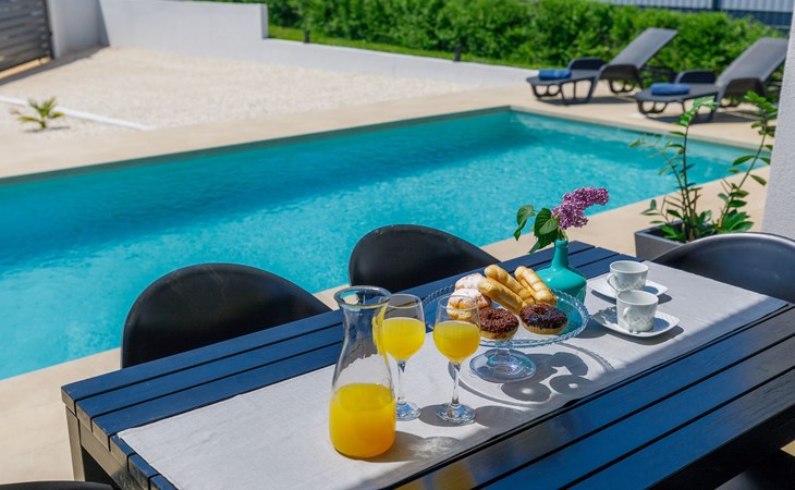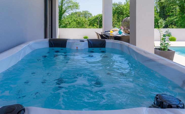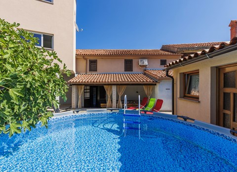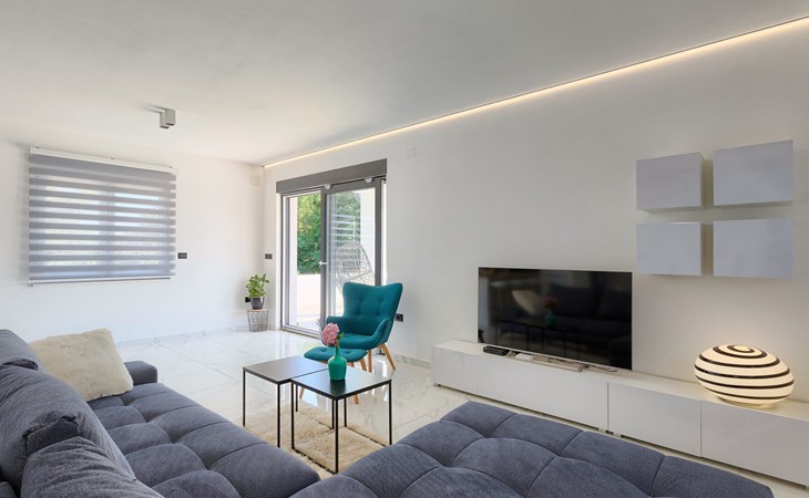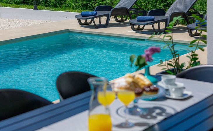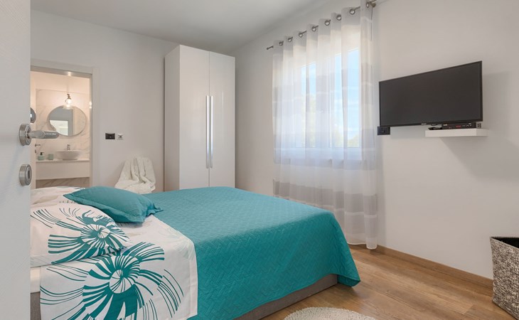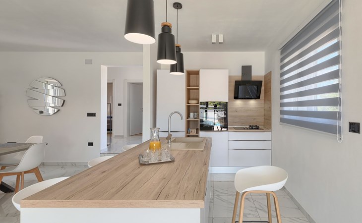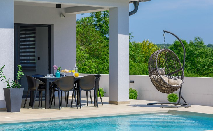 Marčana 11 km von Pula: Schöne Villa "Vine", Baujahr 2020. Im Weiler Prodol, 5 km vom Zentrum von Marčana, ruhige, sonnige Lage, 6 km vom Meer. Zur Alleinbenutzung: Grundstück 600 m2 (eingezäunt), Garten mit Pflanzen und Blumen, Schwimmbad eckig (8 x 4 m, 140 cm tief, saisonale Verfügbarkeit: 01.Mai. - 01.Okt.) mit Innentreppe. Aussendusche. Im Hause: Internetzugang, Alarmanlage, Waschmaschine. Parkplatz (für 2 Autos) beim Haus auf dem Grundstück. Einkaufsgeschäft 4 km, Restaurant 500 m, Bushaltestelle 250 m, Kieselstrand 6 km, Felsstrand 6 km. Reitstall 2 km, Wanderwege ab Haus 100 m, Radweg 150 m.
