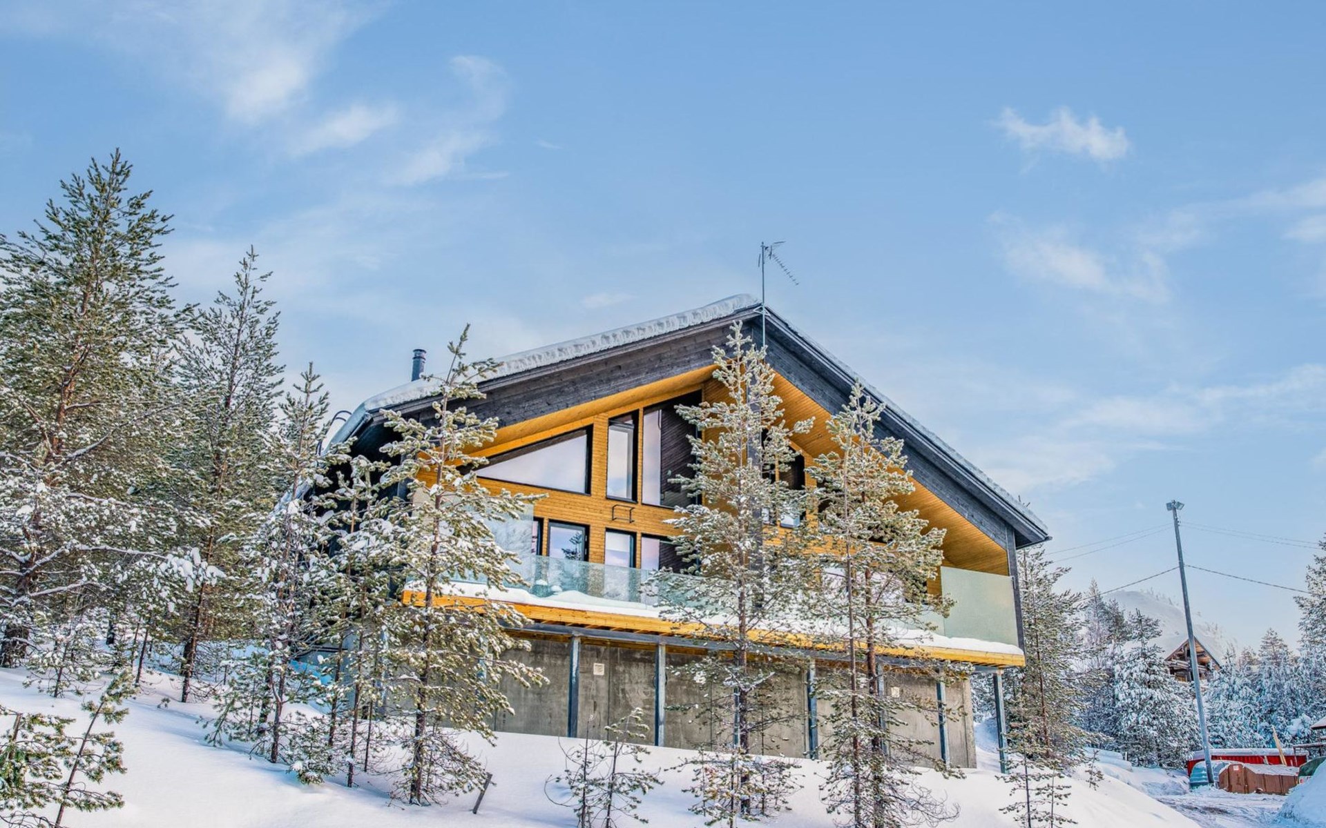 Welcome to indulge in a splendid vacation in the other half of this stylish semi-detached house, built in 2021, in close proximity to the ski slopes of Ruka. This cabin offers everything you need for an unforgettable holiday experience.