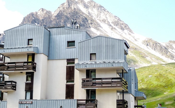 Tignes Val Claret: Appartementhaus "Plein Soleil (Val Claret)", auf 5 Stockwerken. In der Anlage: Fahrstuhl, Skiraum, Zentralheizung. Supermarkt, Restaurant 50 m, Bushaltestelle 500 m, Hallenbad 2.2 km. Sportzentrum 2 km, Skisportanlagen 50 m, Kinderskischule 200 m. Bekannte Skigebiete sind gut erreichbar: TIGNES VAL D'ISERE 50 m. Bitte beachten: Gratis Skibus.