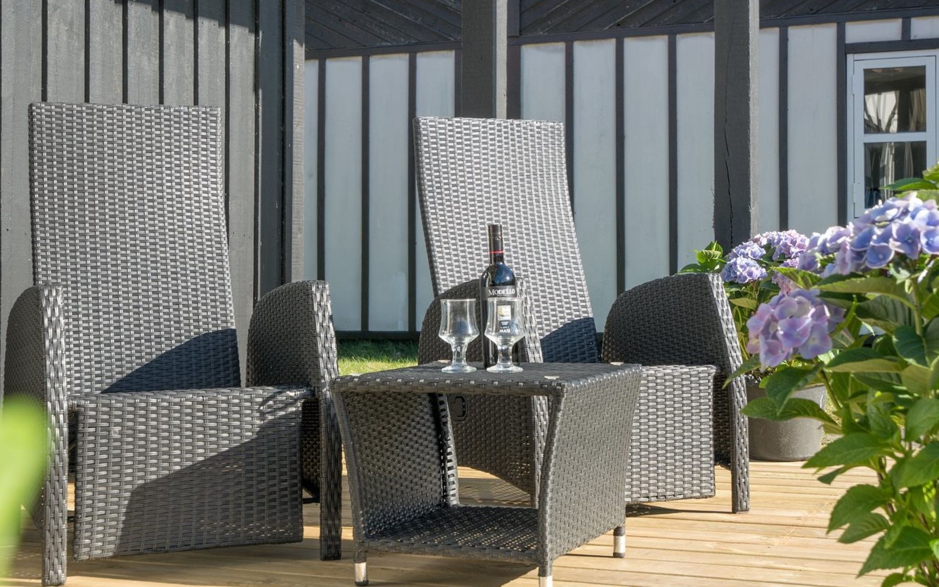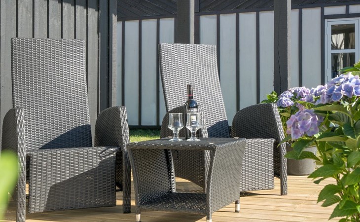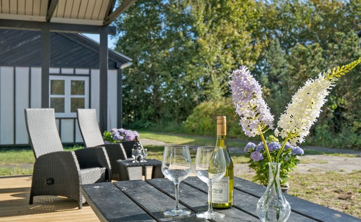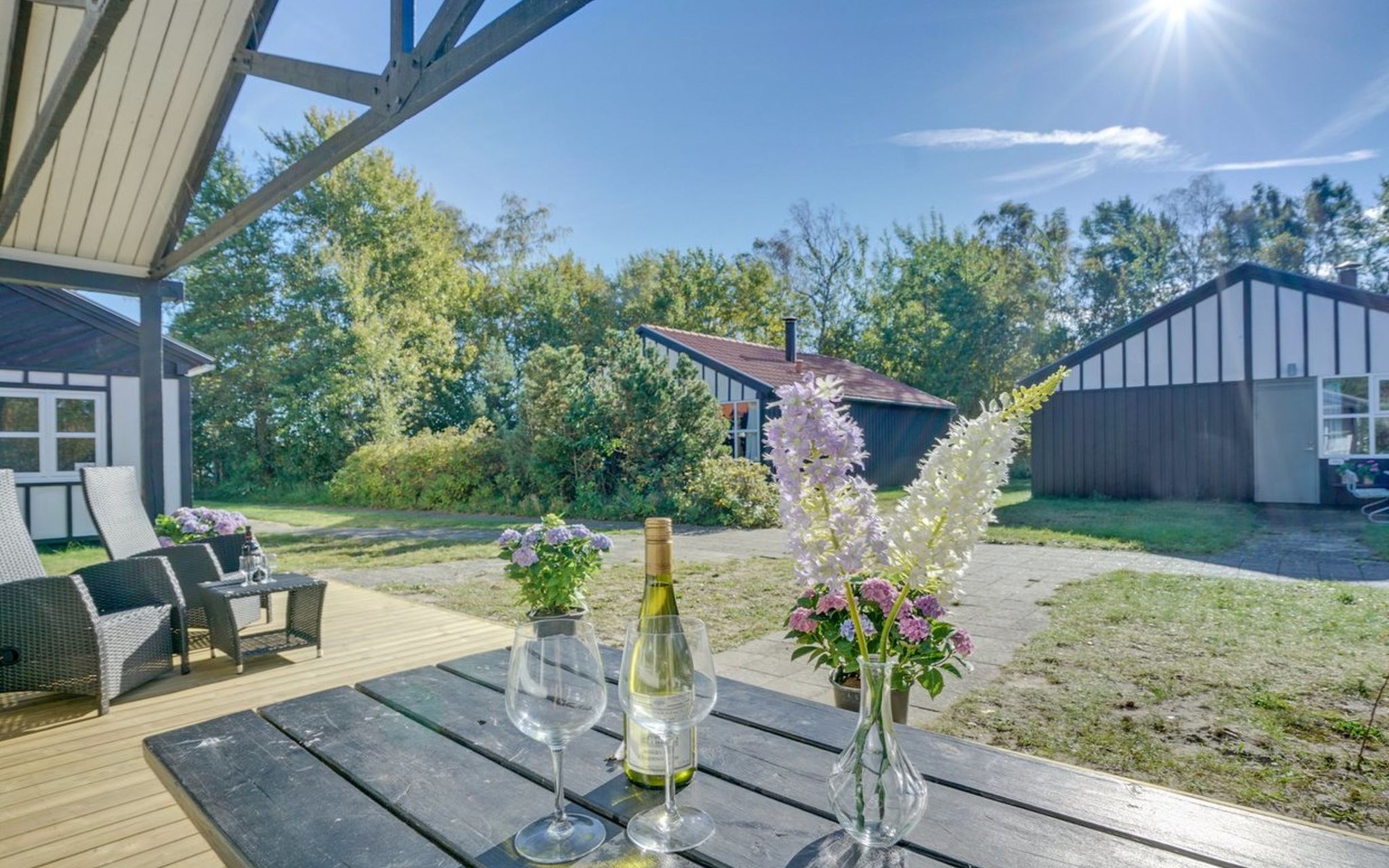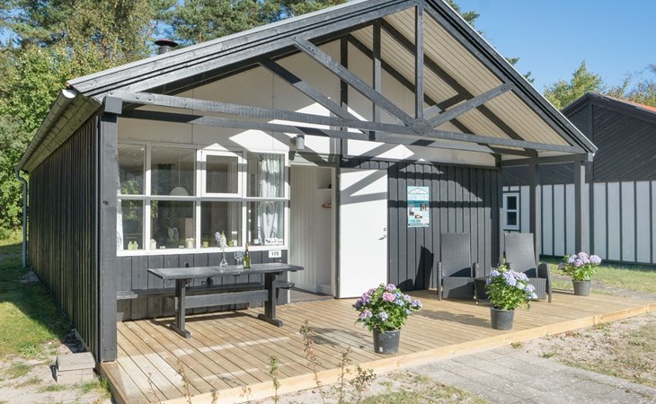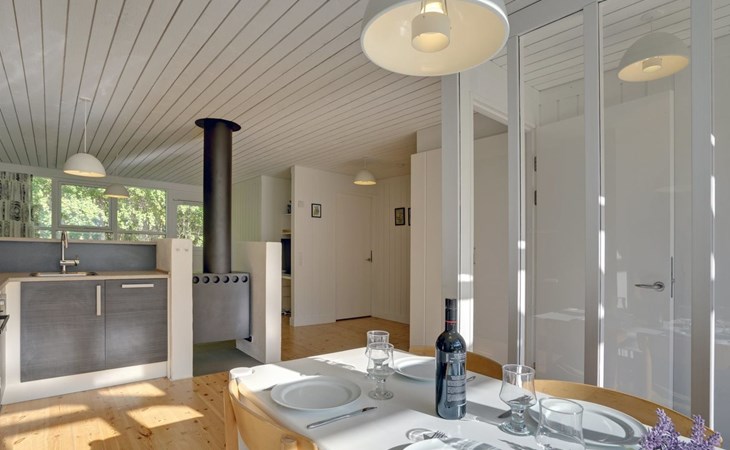 Feriendorf, Baujahr 1990. 55 m vom Meer. Zur Alleinbenutzung: naturbelassenes Grundstück 100 m2. Terrasse (15 m2). Lebensmittelgeschäft 300 m. Golfplatz 2.5 km. Der Besitzer akzeptiert keine Jugendgruppen.