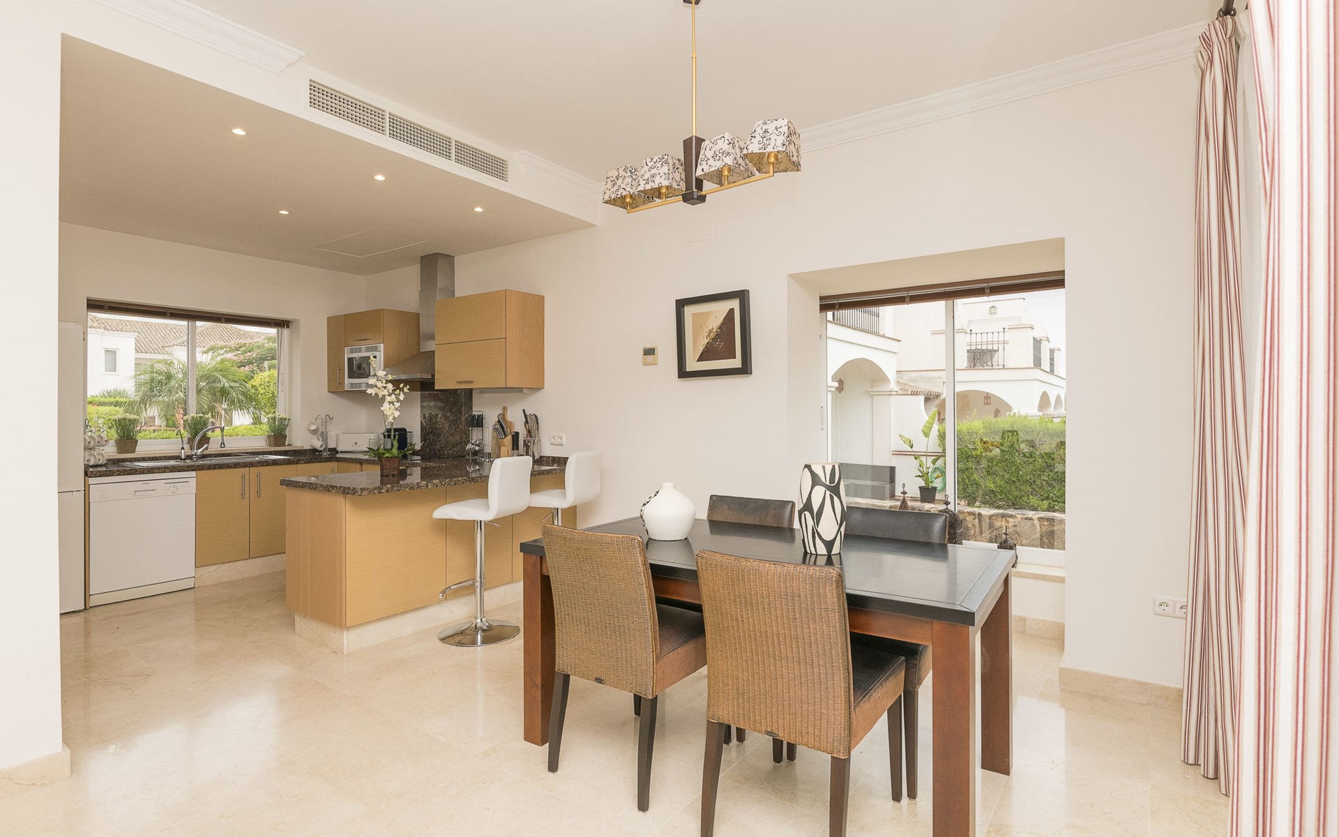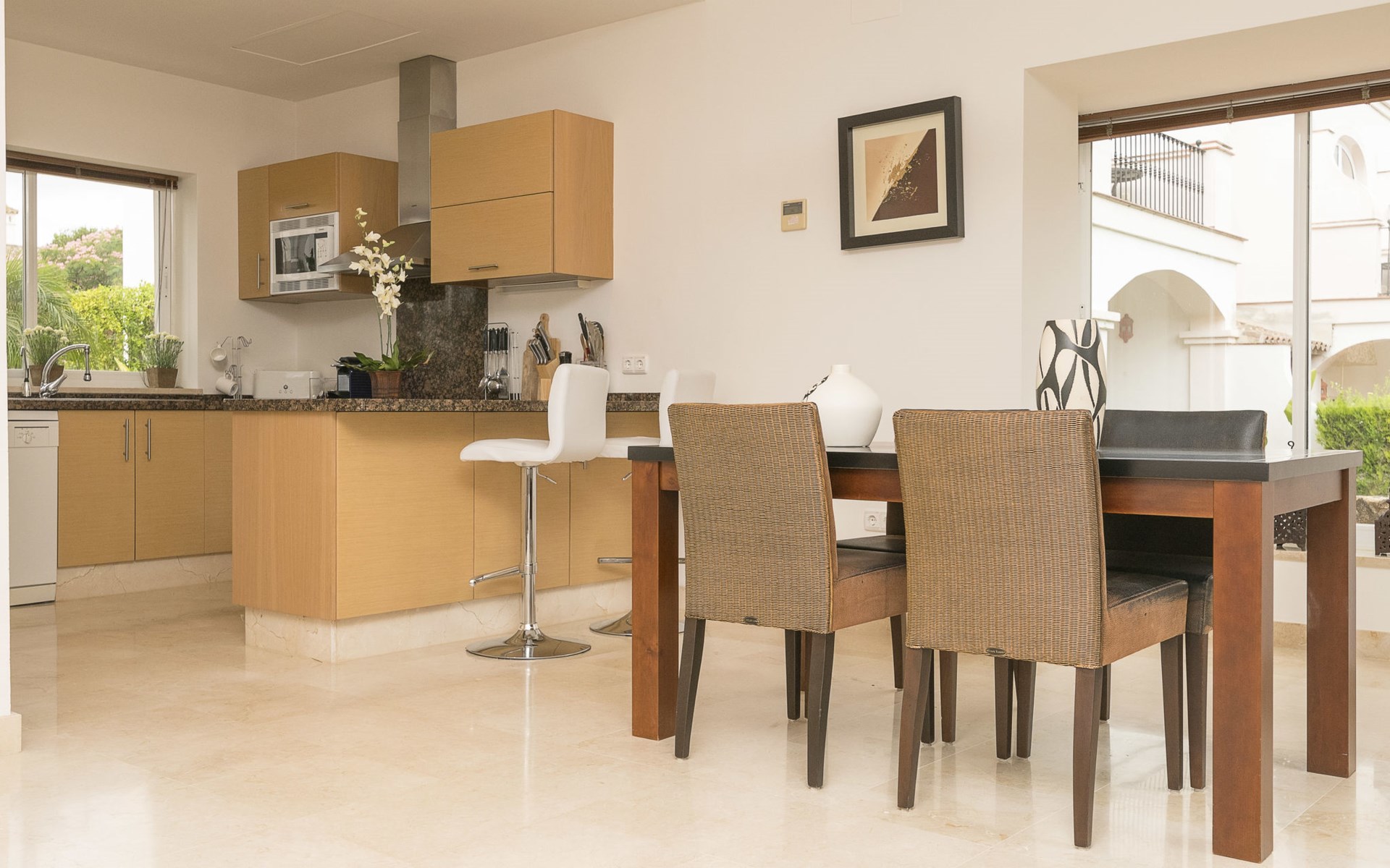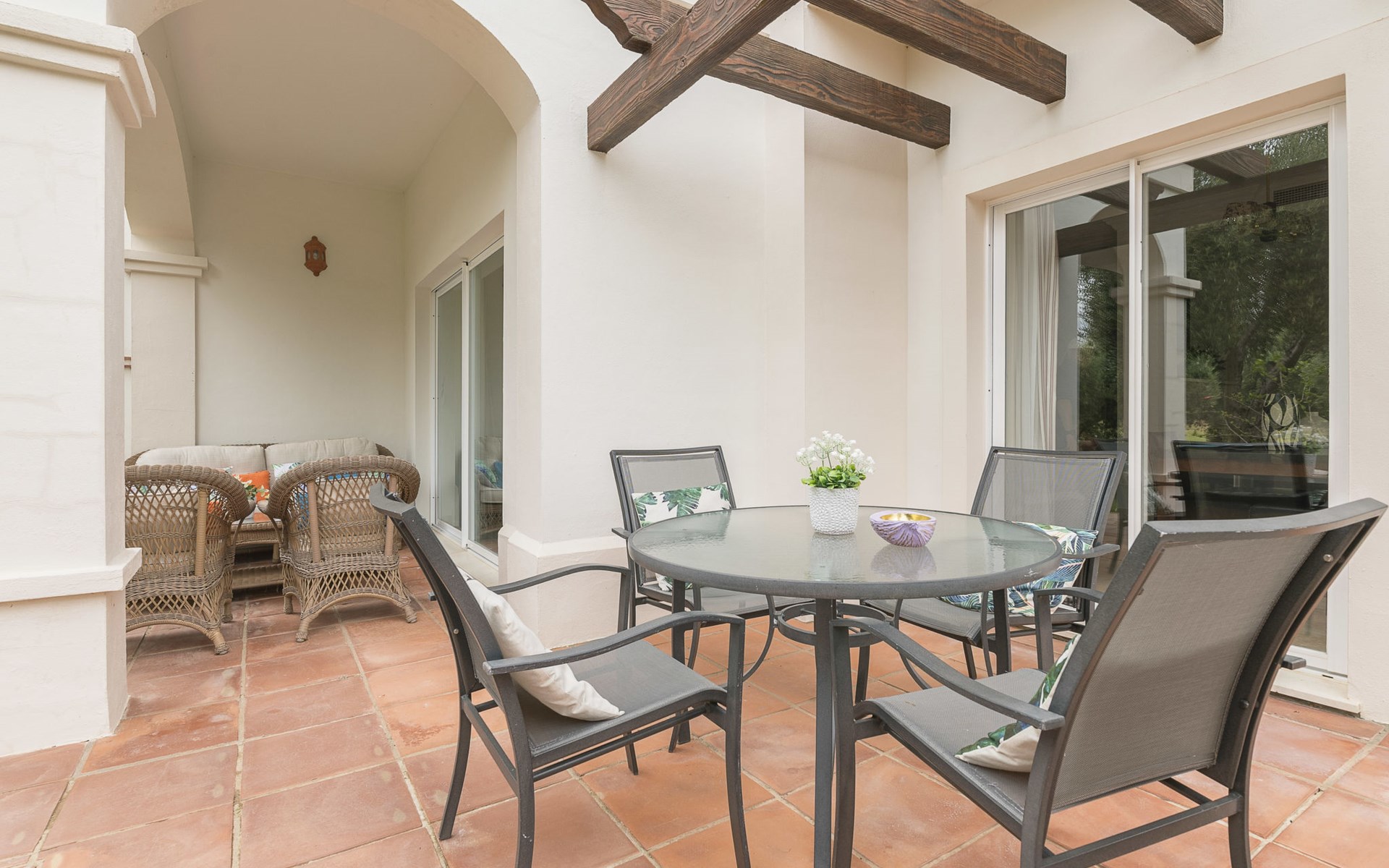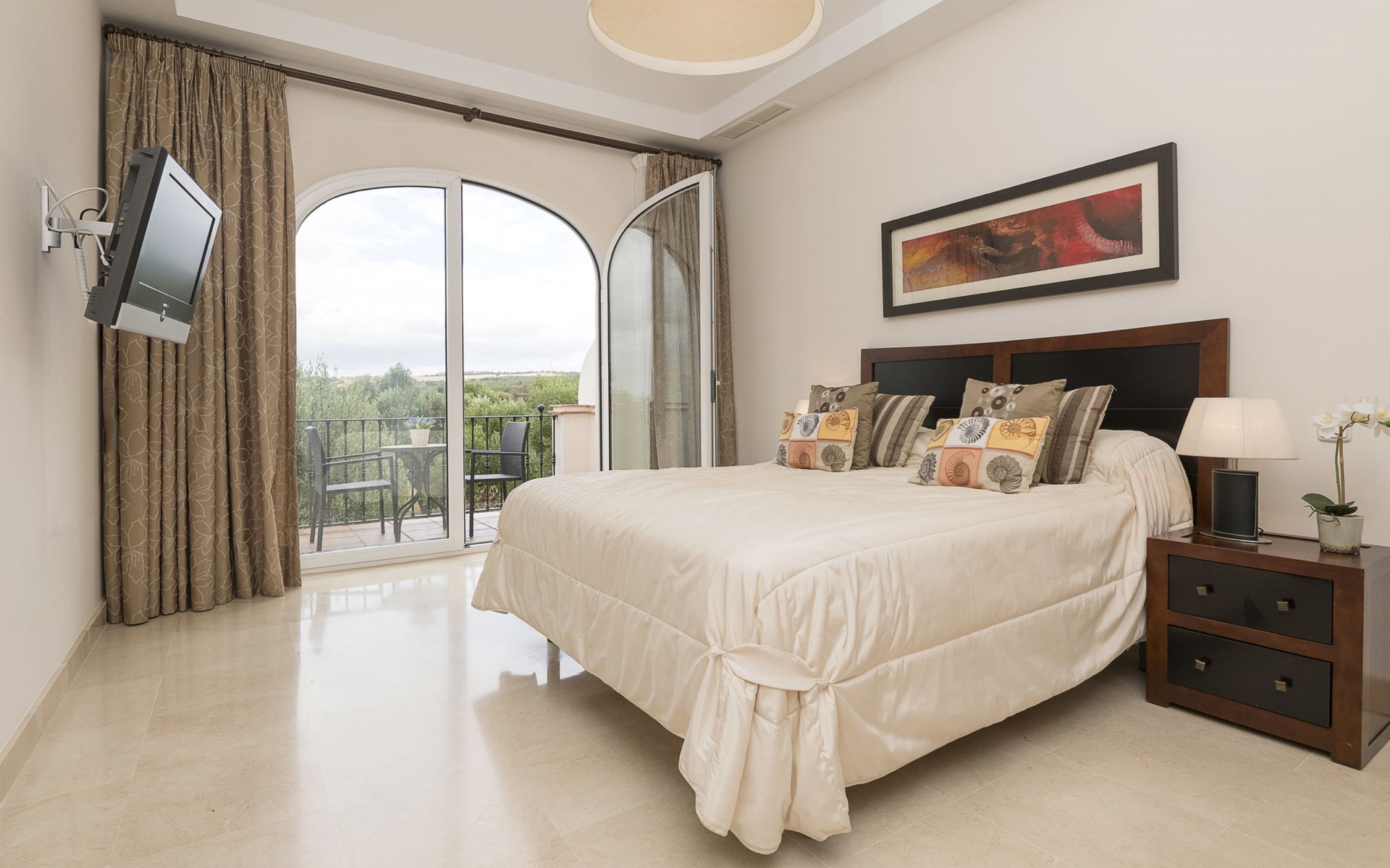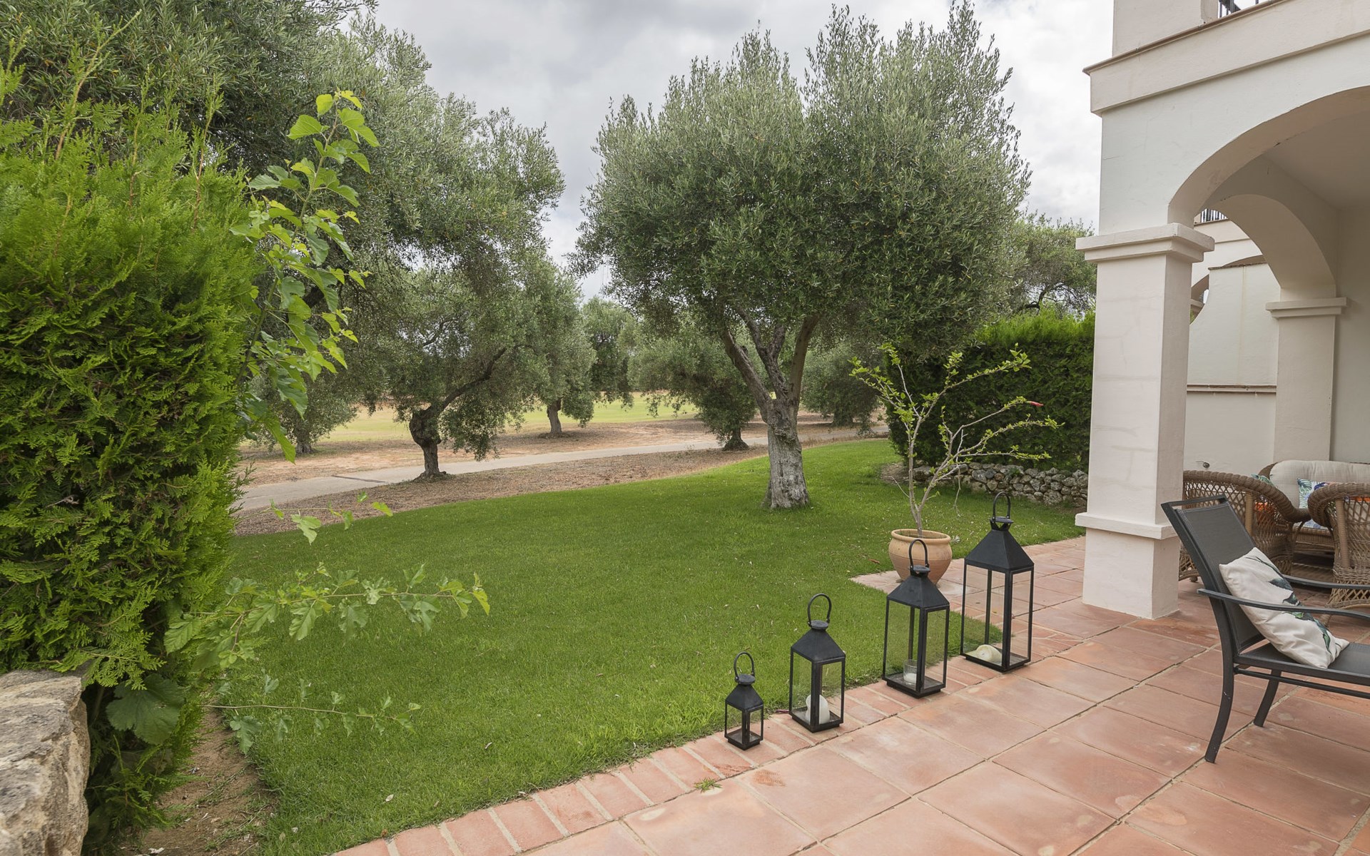 Komfortable Ferienanlage "Arcos Gardens Golf". Ruhige, sonnige Lage, am Golfplatz. Zur Mitbenutzung: Garten mit Rasen, Schwimmbad (18 x 9 m, 120 - 180 cm tief, saisonale Verfügbarkeit: 01.Apr. - 31.Okt.). Kinderbecken, Tennis (extra), Parkplatz. Bushaltestelle 6 km, Bahnstation 38 km. Golfplatz (18 Loch) 20 m. Wandergebiete: Sierra de Grazalema 18 km. Der Besitzer akzeptiert keine Jugendgruppen. Bitte beachten: Flugplatz 40 km vom Haus. Die Nachbarschaft ist sehr lärmempfindlich. Ruhe und gutes Benehmen wird erwartet.