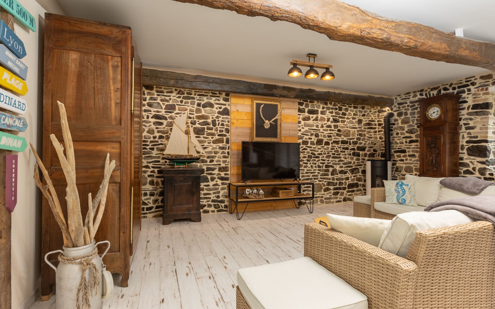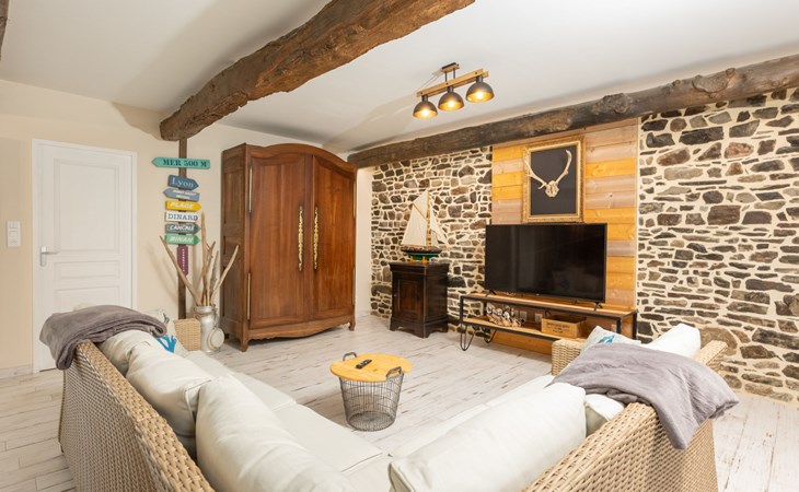 Cherrueix 20 km von Cancale: Haus auf 2 Stockwerken. Exzellente Lage: Absolut zentral und dennoch ruhig, 50 m vom Meer, 350 m vom Strand, Richtung Süden. Zur Alleinbenutzung: Grundstück 1 ha, gepflegter Garten (eingezäunt), Parkplatz auf dem Grundstück. Lebensmittelgeschäft 350 m, Supermarkt 8 km, Restaurant, Bäckerei 350 m, Sandstrand "de Cherrueix" 350 m, Thermalbad "Thermes marin de Saint Malo" 22 km. Segelschule 200 m. Nahe gelegene Sehenswürdigkeiten: Saint malo Intra Muros 25 km, Cancale 20 km, Mont St Michel 27 km, Dinard 30 km, Dol de Bretagne 10 km, Dinan 34 km. Die Schlüsselübergabe findet bei der Agentur Interhome in Cancale statt, 20 km.