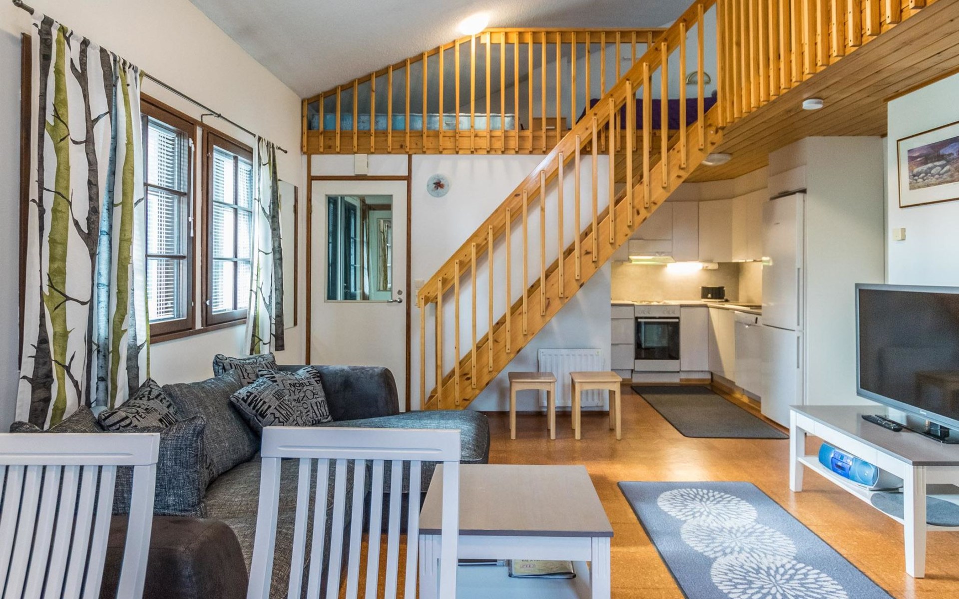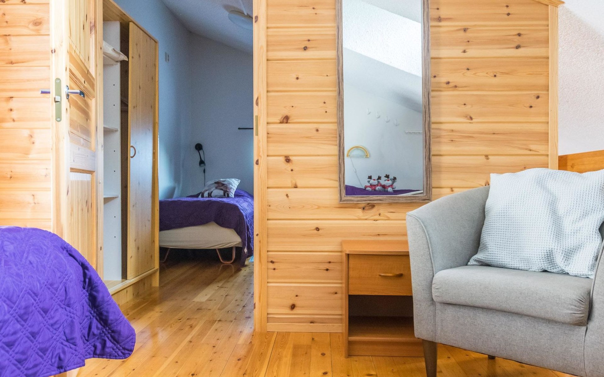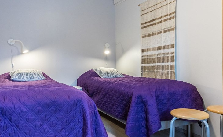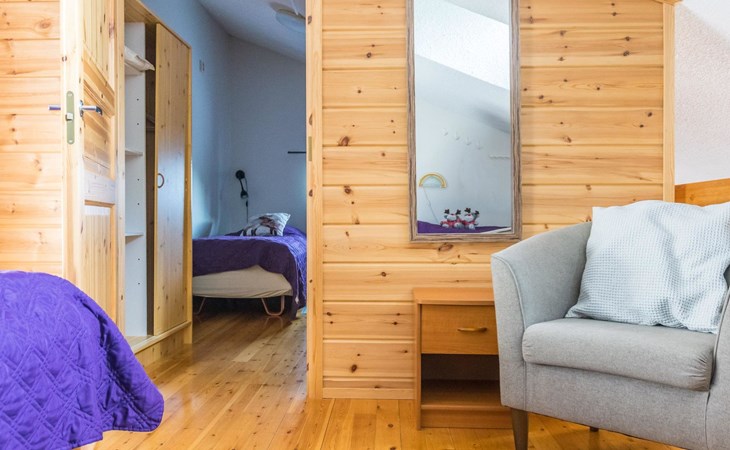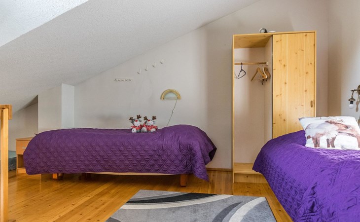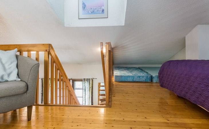 The bedroom on the ground floor has two 80 cm wide beds. The upstairs bedroom has two 100 cm wide beds. The open loft has two 100 cm wide beds and two 80 cm wide spring mattresses.