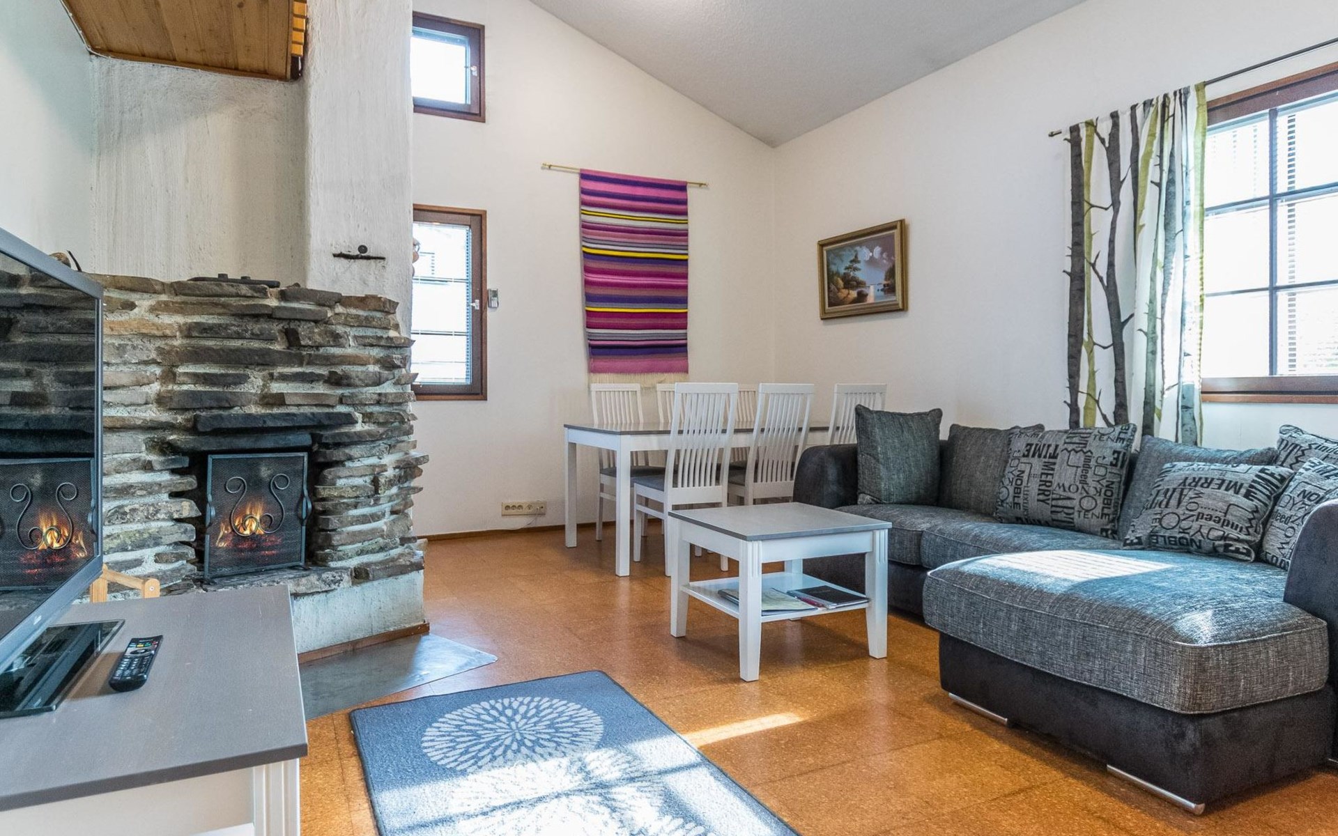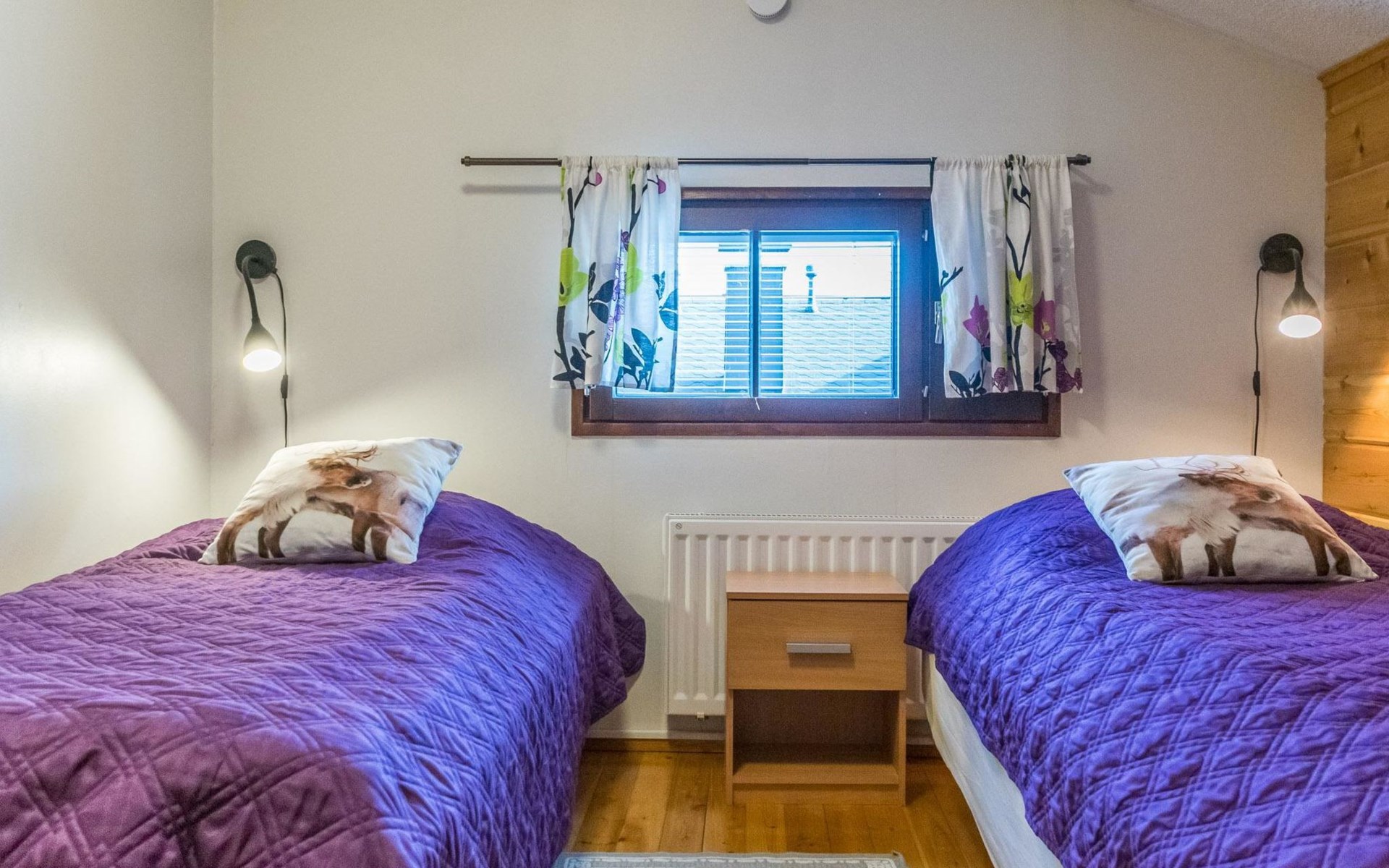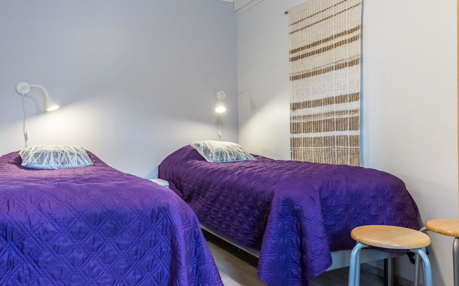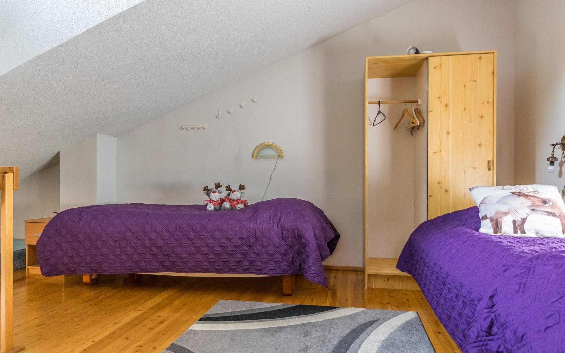 The bedroom on the ground floor has two 80 cm wide beds. The upstairs bedroom has two 100 cm wide beds. The open loft has two 100 cm wide beds and two 80 cm wide spring mattresses.