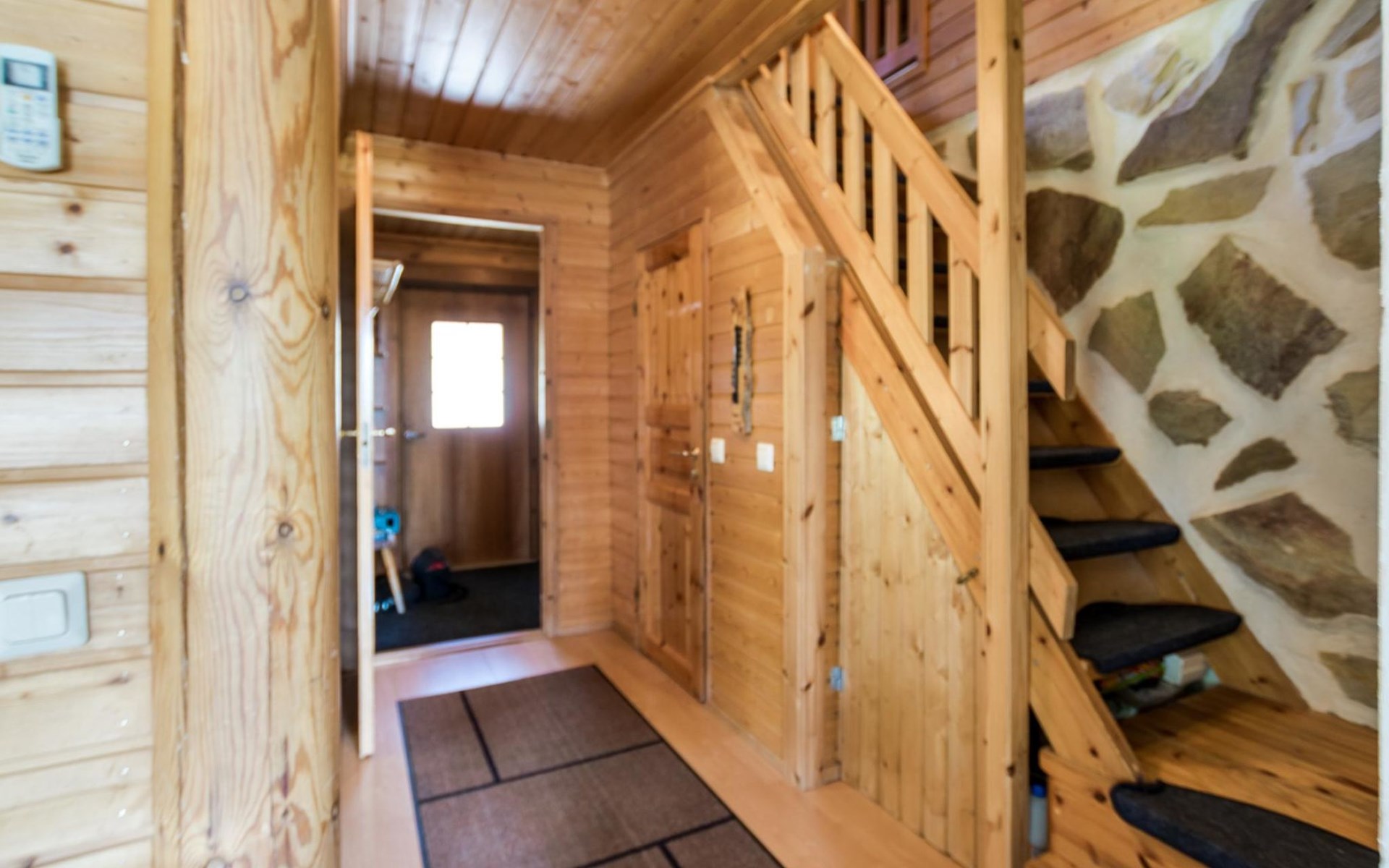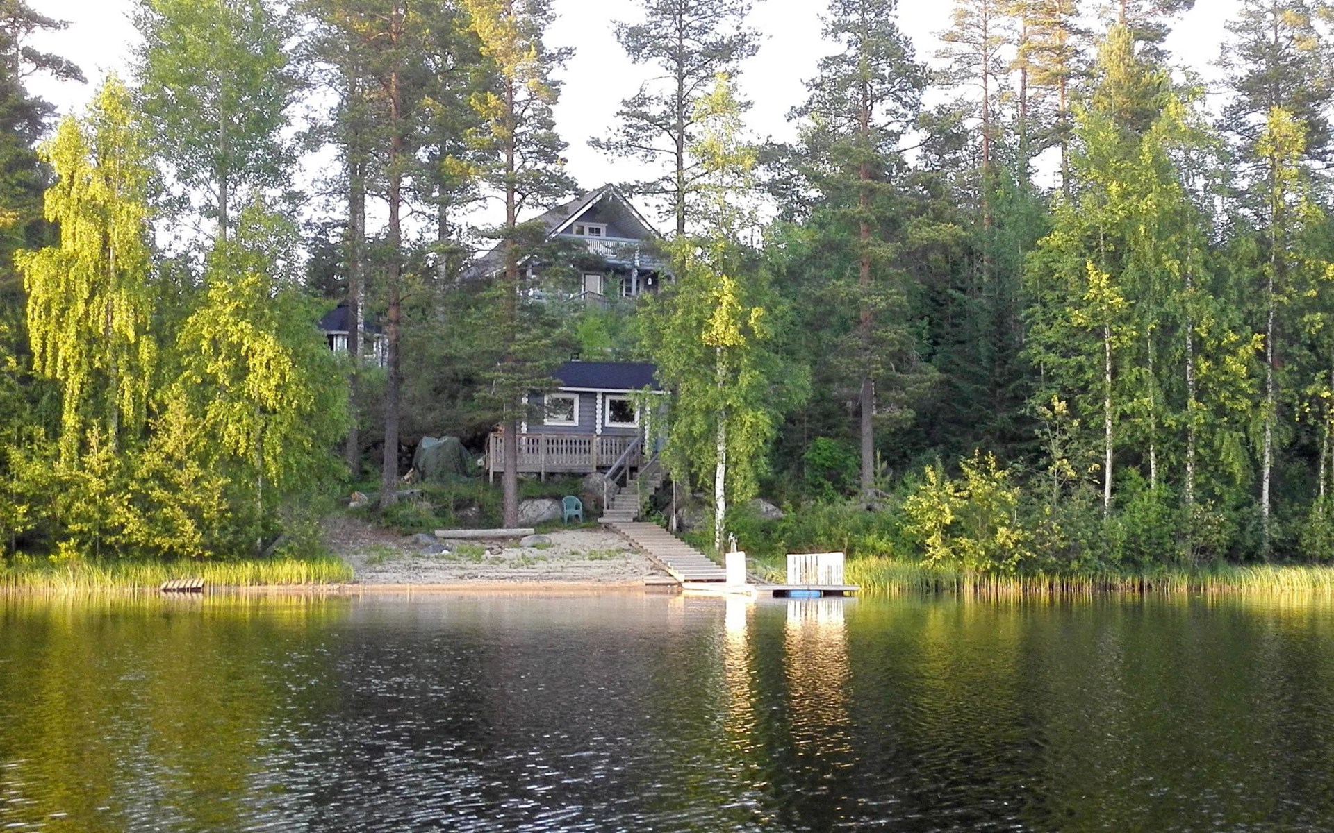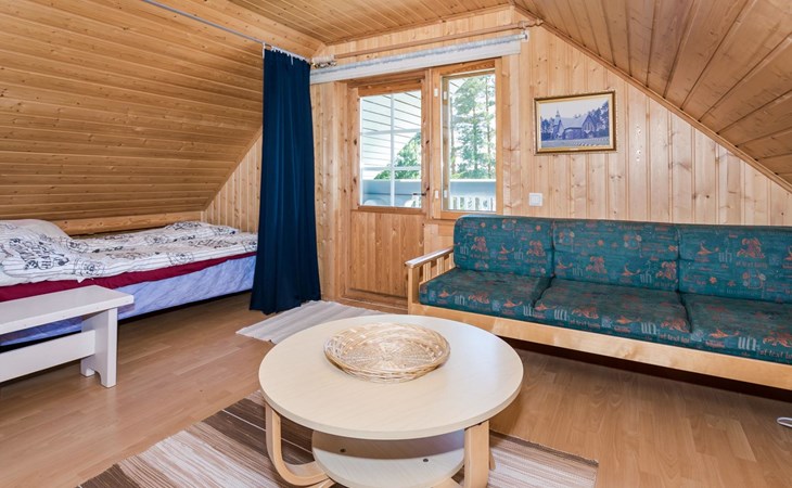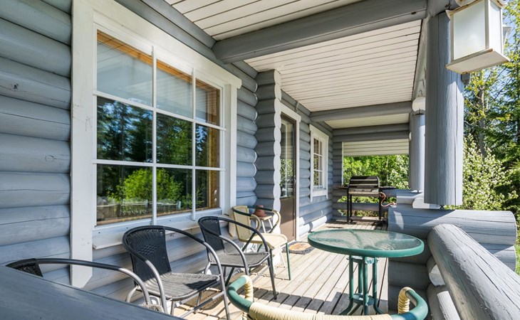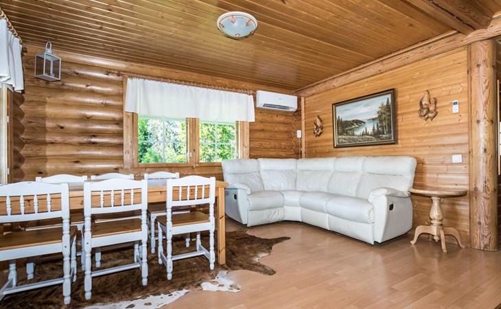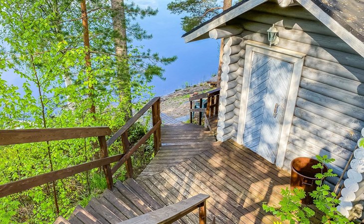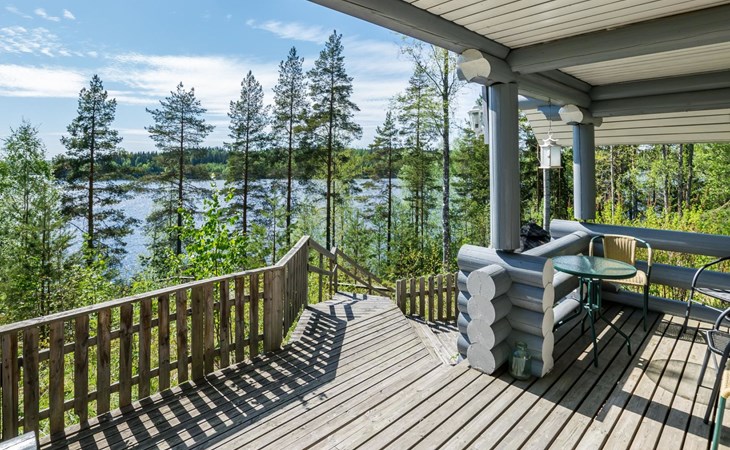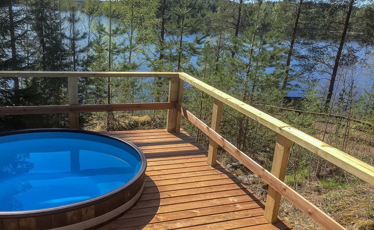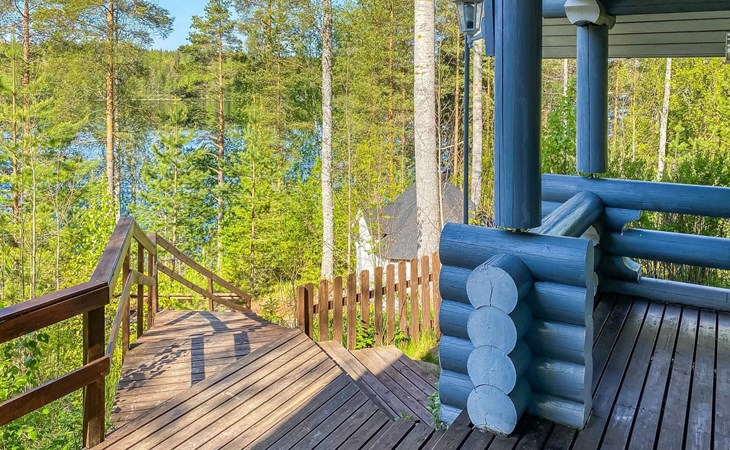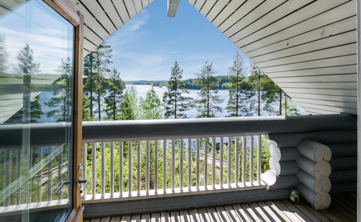 75 km nördlich von Kuopio, See Suur-Juminen 30 m (Breite 1.1 km, Länge 7 km), flacher und hart geschliffener Moränengrund, eigenes Boot. Rundholz-Ferienhaus, Baujahr 1996, Wohnküche, Schlafzimmer mit Doppelbett, im Obergeschoss 1 grosses Zimmer, 2 Betten (90 cm breit), 1 Doppelbett (120 cm), 2 ausziehbare Schlafsofas/Doppelbett, Sauna, Waschraum, Balkon und 2 offene Veranden. In der Wohnküche Nunna-Backofen mit Glastür, Fussbodenheizung im Waschraumbereich. Luftwärmepumpe mit Kühlfunktion. Steiler Hang zum Ufer vom Ferienhaus, Treppe zur Anlegestelle runter, Sauna am Seeufer und Grill-Tipi. Die Ufersauna verfügt über Holzofen, Ankleidezimmer und Veranda. Zum Tipi gehört Gasgrill (Grill befindet sich möglicherweise auch auf der Terrasse), Anlegestelle mit Sitzbank. Whirlpool kann direkt vom Eigentümer gemietet werden. Bootsrutschen 3 km, See mit guten Zander- und Hechtbeständen, Beeren- und Pilzwälder angrenzend. Auf Vattusaari, vor dem Haus, befinden sich Unterstand und Lagerfeuerplatz. Entfernungen: West-Pisten des Tahko Skigebiets 34 km, Tahko Golf und SPA 40 km, Rissala Flughafen 60 km. Wildfarm im Wildtierland (Villieläinmaa), die Wildschweine in Gefangenschaft hält, bietet auch Verpflegungsmöglichkeiten, 5 km. Lebensmittelgeschäft 9 km (nur im Sommer), Supermarkt in Varpaisjärvi 17 km.