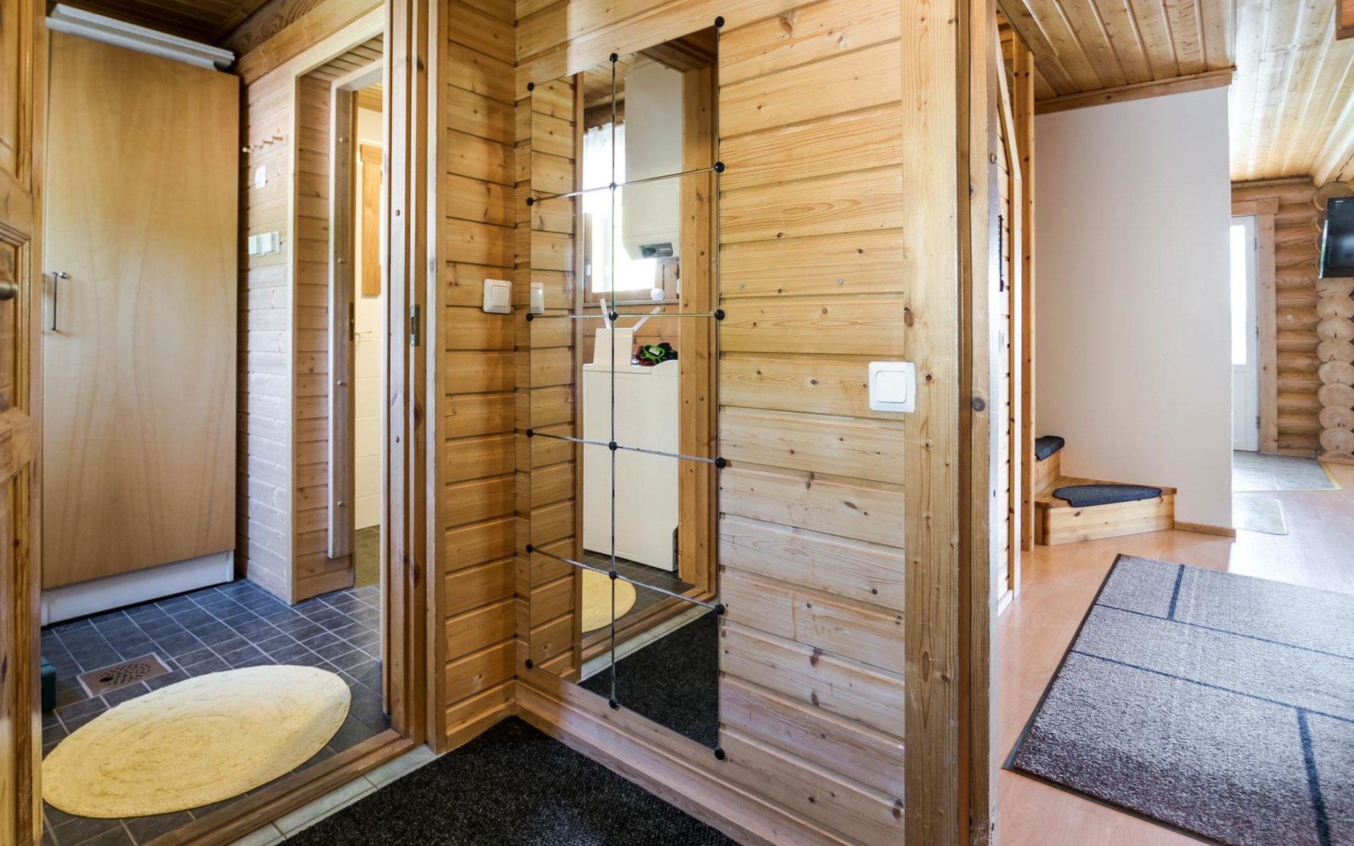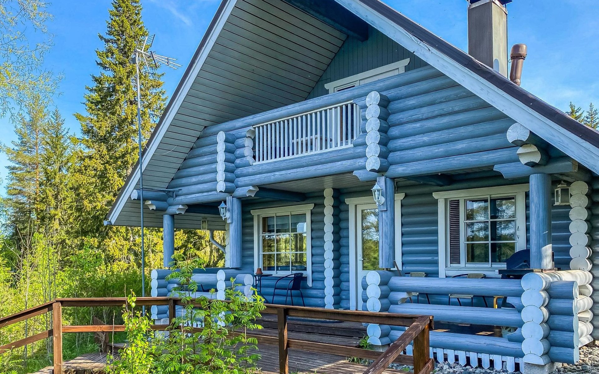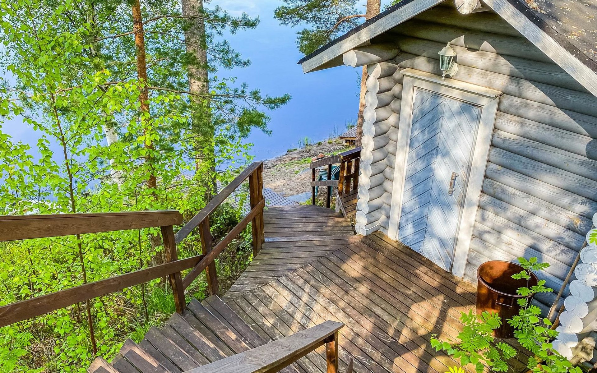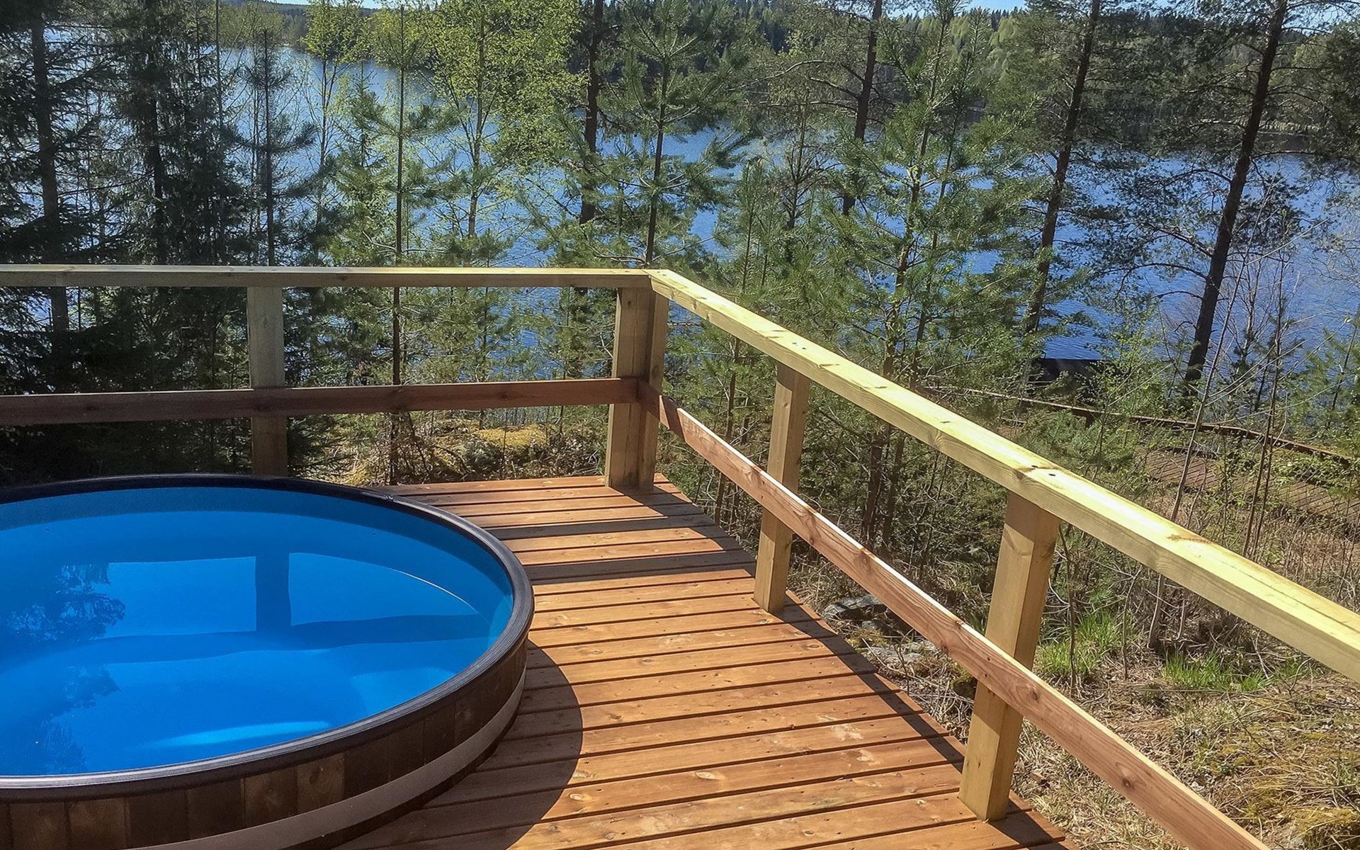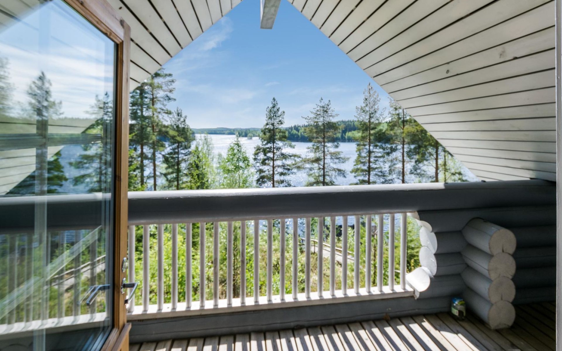 75 km nördlich von Kuopio, See Suur-Juminen 30 m (Breite 1.1 km, Länge 7 km), flacher und hart geschliffener Moränengrund, eigenes Boot. Rundholz-Ferienhaus, Baujahr 1996, Wohnküche, Schlafzimmer mit Doppelbett, im Obergeschoss 1 grosses Zimmer, 2 Betten (90 cm breit), 1 Doppelbett (120 cm), 2 ausziehbare Schlafsofas/Doppelbett, Sauna, Waschraum, Balkon und 2 offene Veranden. In der Wohnküche Nunna-Backofen mit Glastür, Fussbodenheizung im Waschraumbereich. Luftwärmepumpe mit Kühlfunktion. Steiler Hang zum Ufer vom Ferienhaus, Treppe zur Anlegestelle runter, Sauna am Seeufer und Grill-Tipi. Die Ufersauna verfügt über Holzofen, Ankleidezimmer und Veranda. Zum Tipi gehört Gasgrill (Grill befindet sich möglicherweise auch auf der Terrasse), Anlegestelle mit Sitzbank. Whirlpool kann direkt vom Eigentümer gemietet werden. Bootsrutschen 3 km, See mit guten Zander- und Hechtbeständen, Beeren- und Pilzwälder angrenzend. Auf Vattusaari, vor dem Haus, befinden sich Unterstand und Lagerfeuerplatz. Entfernungen: West-Pisten des Tahko Skigebiets 34 km, Tahko Golf und SPA 40 km, Rissala Flughafen 60 km. Wildfarm im Wildtierland (Villieläinmaa), die Wildschweine in Gefangenschaft hält, bietet auch Verpflegungsmöglichkeiten, 5 km. Lebensmittelgeschäft 9 km (nur im Sommer), Supermarkt in Varpaisjärvi 17 km.