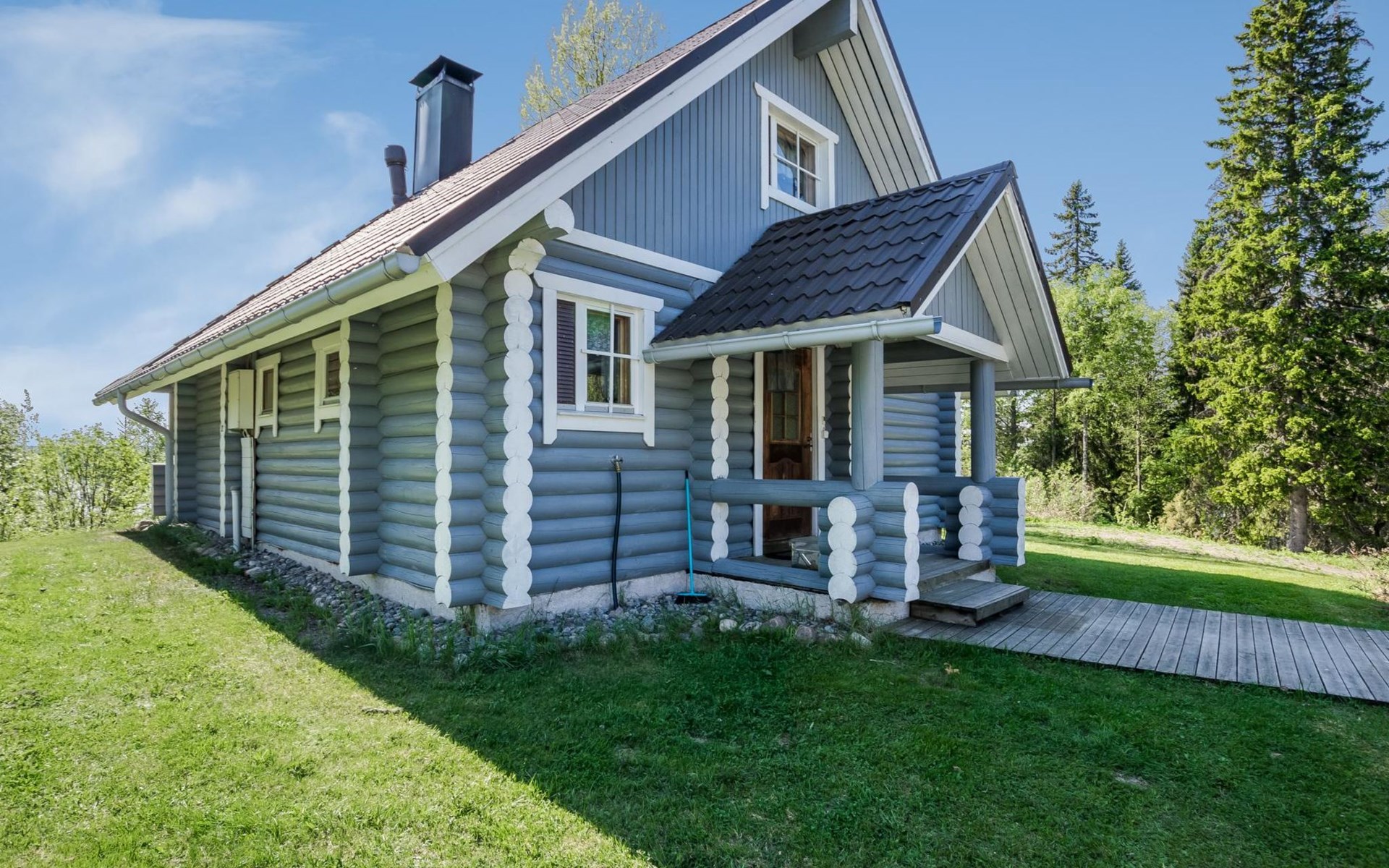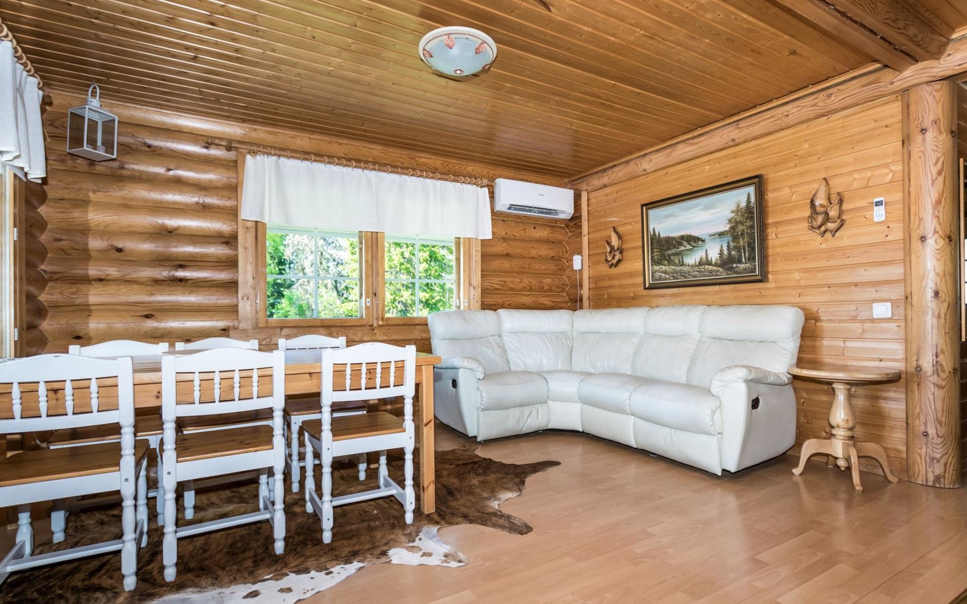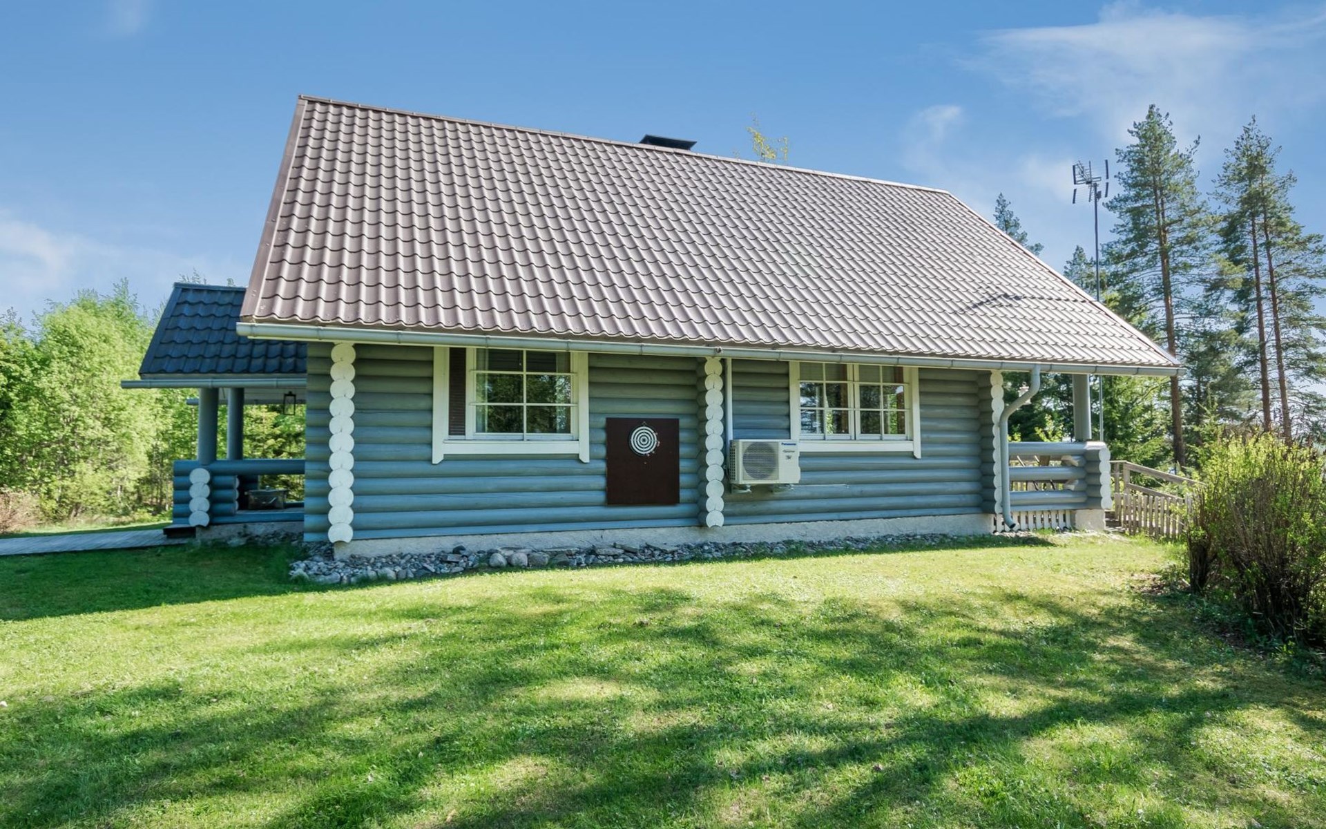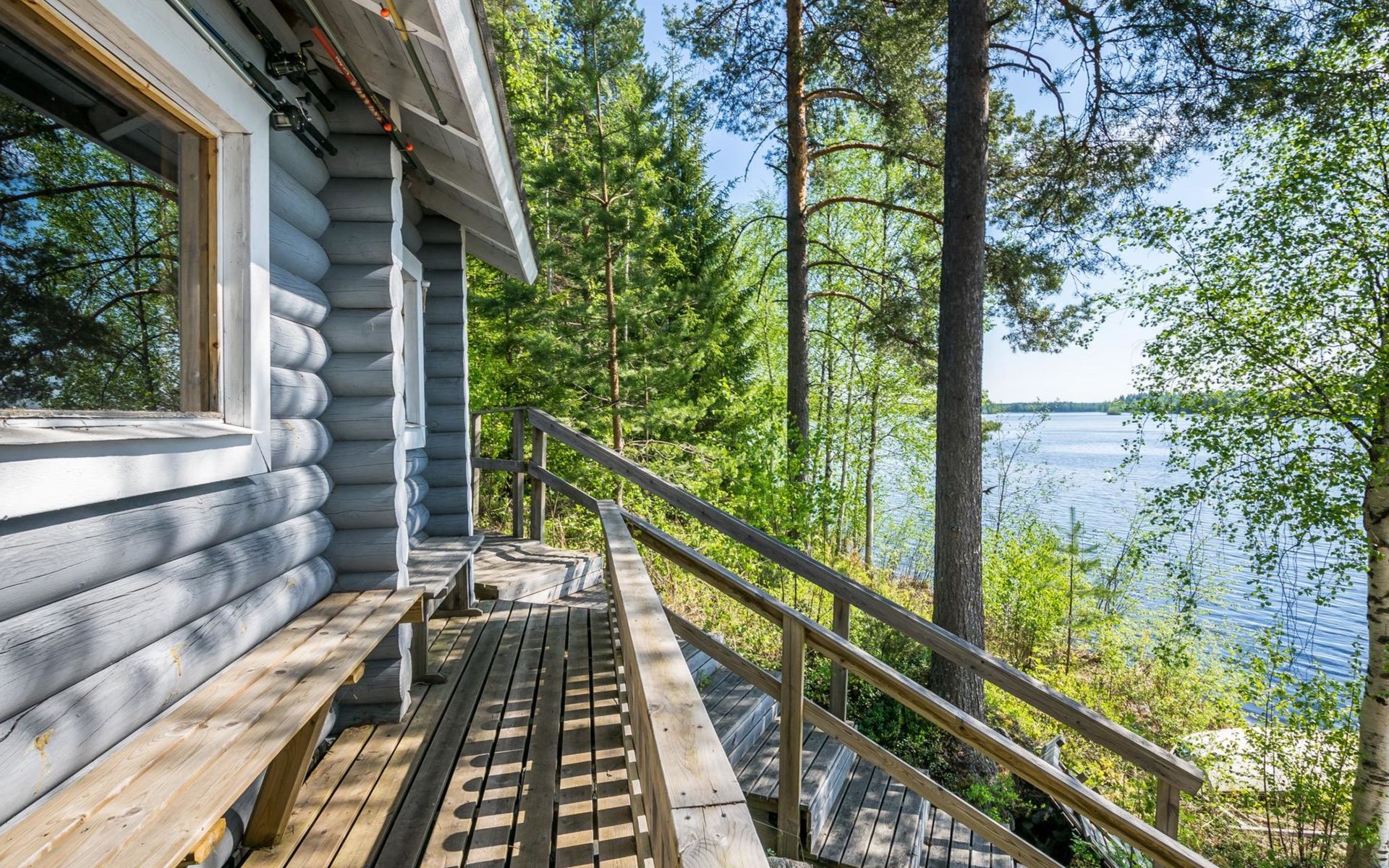 75 km nördlich von Kuopio, See Suur-Juminen 30 m (Breite 1.1 km, Länge 7 km), flacher und hart geschliffener Moränengrund, eigenes Boot. Rundholz-Ferienhaus, Baujahr 1996, Wohnküche, Schlafzimmer mit Doppelbett, im Obergeschoss 1 grosses Zimmer, 2 Betten (90 cm breit), 1 Doppelbett (120 cm), 2 ausziehbare Schlafsofas/Doppelbett, Sauna, Waschraum, Balkon und 2 offene Veranden. In der Wohnküche Nunna-Backofen mit Glastür, Fussbodenheizung im Waschraumbereich. Luftwärmepumpe mit Kühlfunktion. Steiler Hang zum Ufer vom Ferienhaus, Treppe zur Anlegestelle runter, Sauna am Seeufer und Grill-Tipi. Die Ufersauna verfügt über Holzofen, Ankleidezimmer und Veranda. Zum Tipi gehört Gasgrill (Grill befindet sich möglicherweise auch auf der Terrasse), Anlegestelle mit Sitzbank. Whirlpool kann direkt vom Eigentümer gemietet werden. Bootsrutschen 3 km, See mit guten Zander- und Hechtbeständen, Beeren- und Pilzwälder angrenzend. Auf Vattusaari, vor dem Haus, befinden sich Unterstand und Lagerfeuerplatz. Entfernungen: West-Pisten des Tahko Skigebiets 34 km, Tahko Golf und SPA 40 km, Rissala Flughafen 60 km. Wildfarm im Wildtierland (Villieläinmaa), die Wildschweine in Gefangenschaft hält, bietet auch Verpflegungsmöglichkeiten, 5 km. Lebensmittelgeschäft 9 km (nur im Sommer), Supermarkt in Varpaisjärvi 17 km.