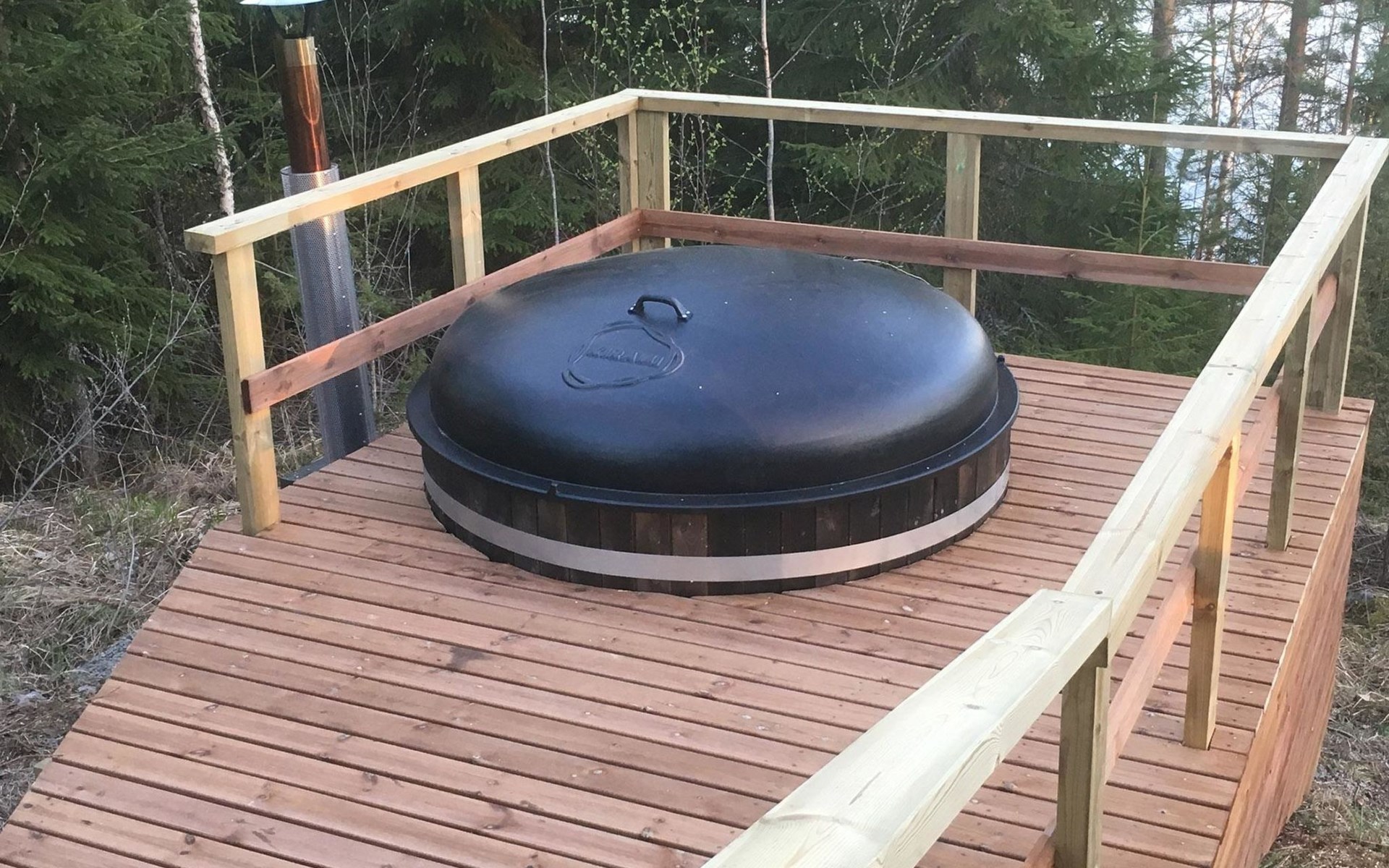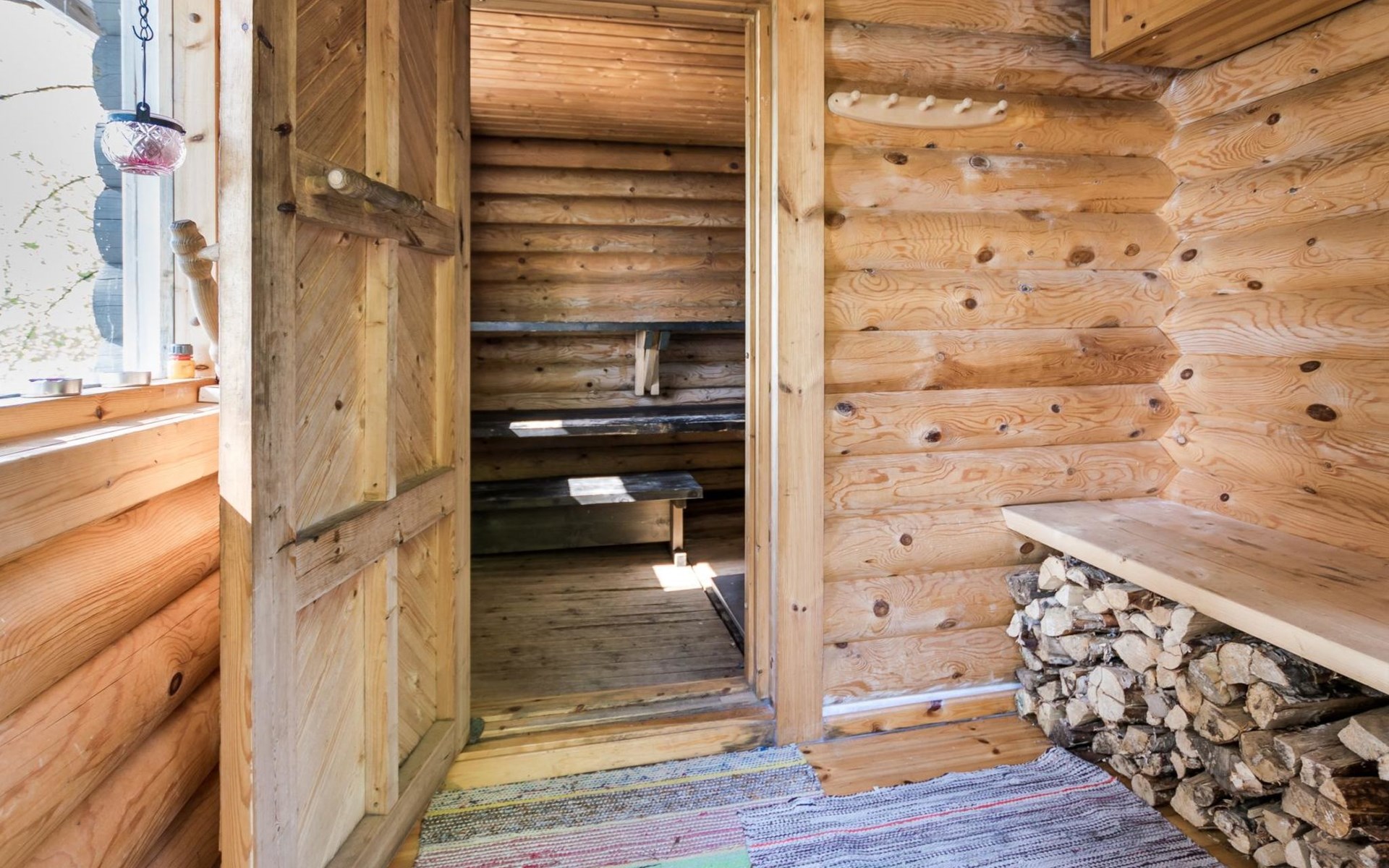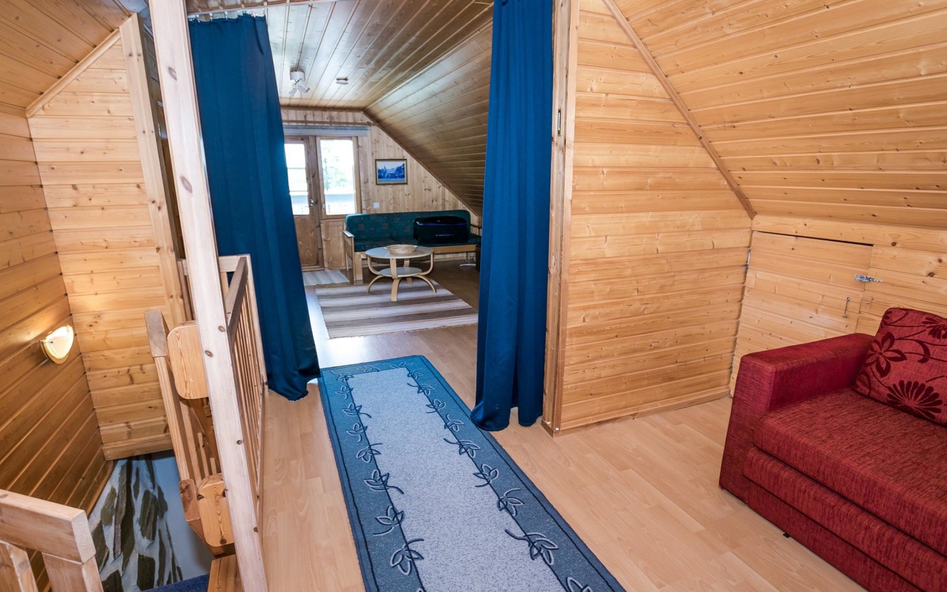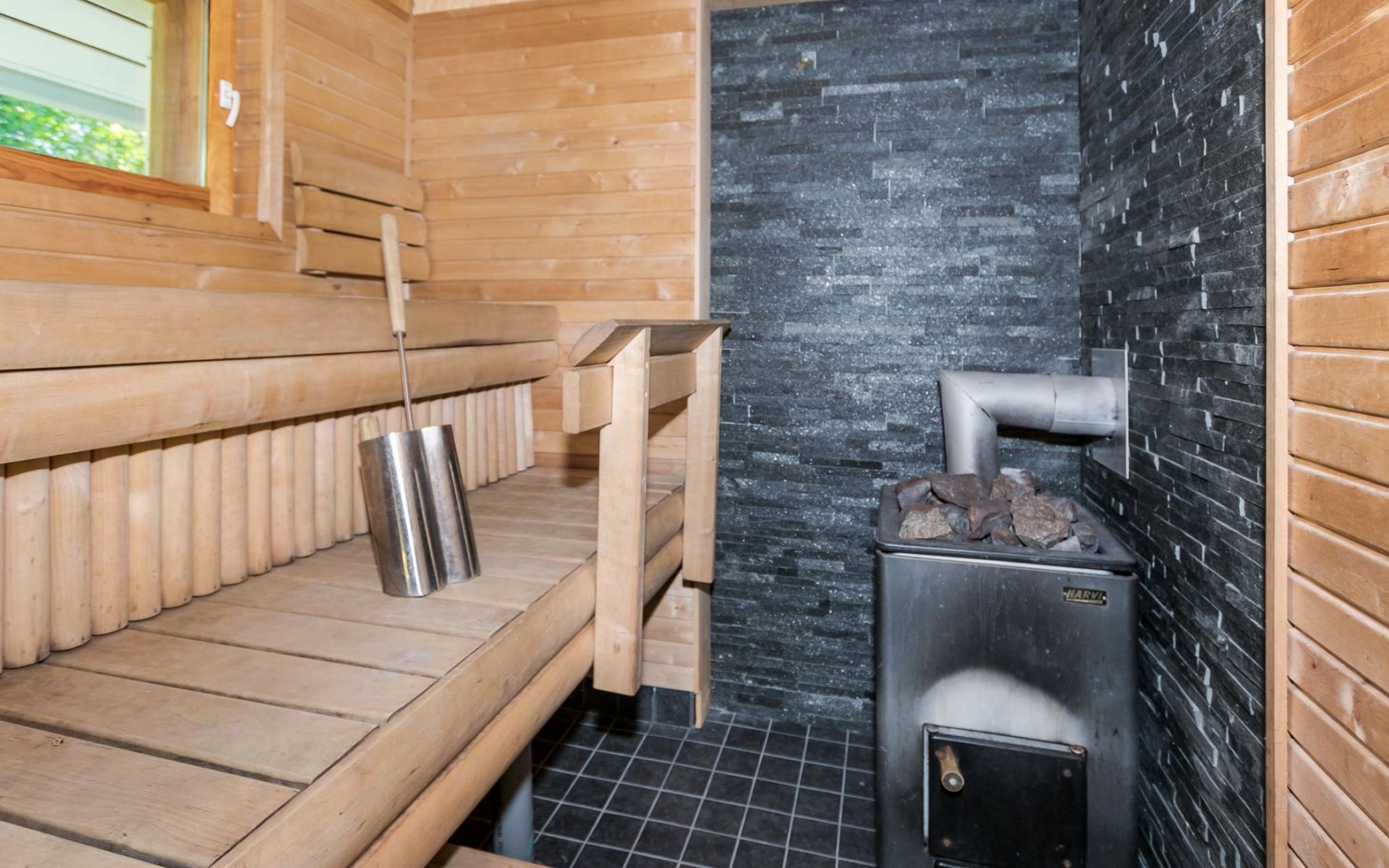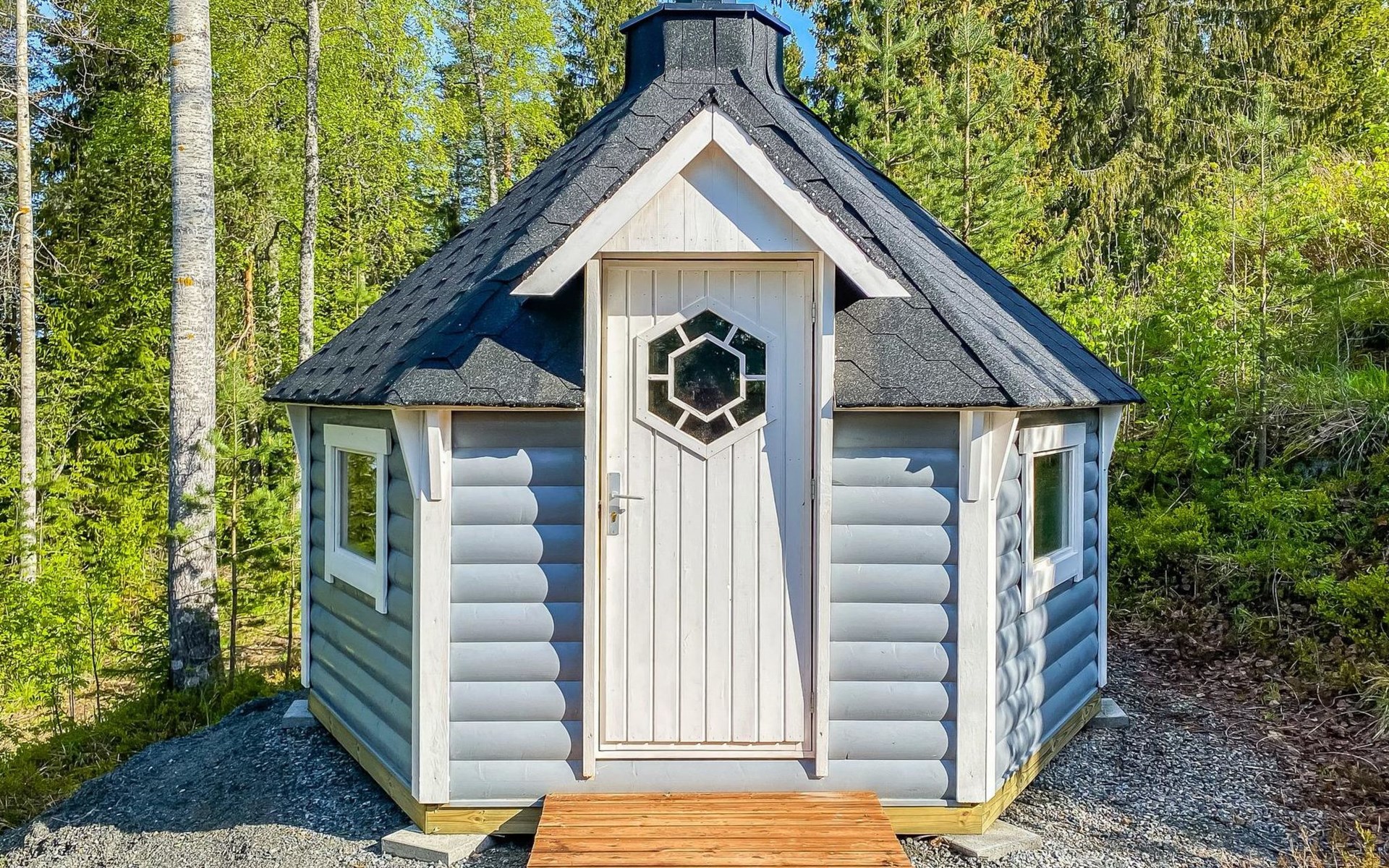75 km nördlich von Kuopio, See Suur-Juminen 30 m (Breite 1.1 km, Länge 7 km), flacher und hart geschliffener Moränengrund, eigenes Boot. Rundholz-Ferienhaus, Baujahr 1996, Wohnküche, Schlafzimmer mit Doppelbett, im Obergeschoss 1 grosses Zimmer, 2 Betten (90 cm breit), 1 Doppelbett (120 cm), 2 ausziehbare Schlafsofas/Doppelbett, Sauna, Waschraum, Balkon und 2 offene Veranden. In der Wohnküche Nunna-Backofen mit Glastür, Fussbodenheizung im Waschraumbereich. Luftwärmepumpe mit Kühlfunktion. Steiler Hang zum Ufer vom Ferienhaus, Treppe zur Anlegestelle runter, Sauna am Seeufer und Grill-Tipi. Die Ufersauna verfügt über Holzofen, Ankleidezimmer und Veranda. Zum Tipi gehört Gasgrill (Grill befindet sich möglicherweise auch auf der Terrasse), Anlegestelle mit Sitzbank. Whirlpool kann direkt vom Eigentümer gemietet werden. Bootsrutschen 3 km, See mit guten Zander- und Hechtbeständen, Beeren- und Pilzwälder angrenzend. Auf Vattusaari, vor dem Haus, befinden sich Unterstand und Lagerfeuerplatz. Entfernungen: West-Pisten des Tahko Skigebiets 34 km, Tahko Golf und SPA 40 km, Rissala Flughafen 60 km. Wildfarm im Wildtierland (Villieläinmaa), die Wildschweine in Gefangenschaft hält, bietet auch Verpflegungsmöglichkeiten, 5 km. Lebensmittelgeschäft 9 km (nur im Sommer), Supermarkt in Varpaisjärvi 17 km.