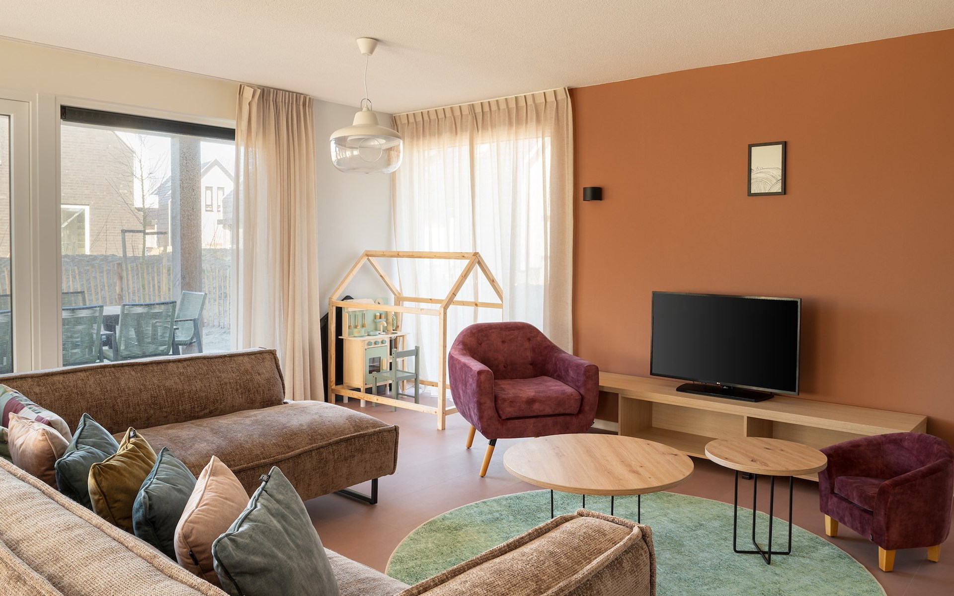 Vom Wohnzimmer aus haben Sie Zugang zu einer großzügigen, überdachten Terrasse mit Terrassenmöbeln. Der eingezäunte Garten ist mit dem gemeinschaftlichen Spielplatz im Kidskwartier verbunden. Ihre Kinder werden hier viel Spaß haben!