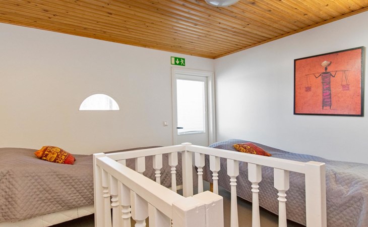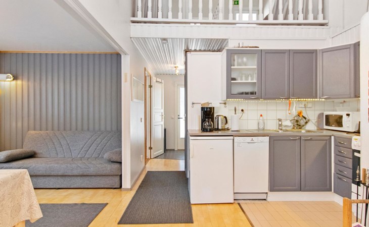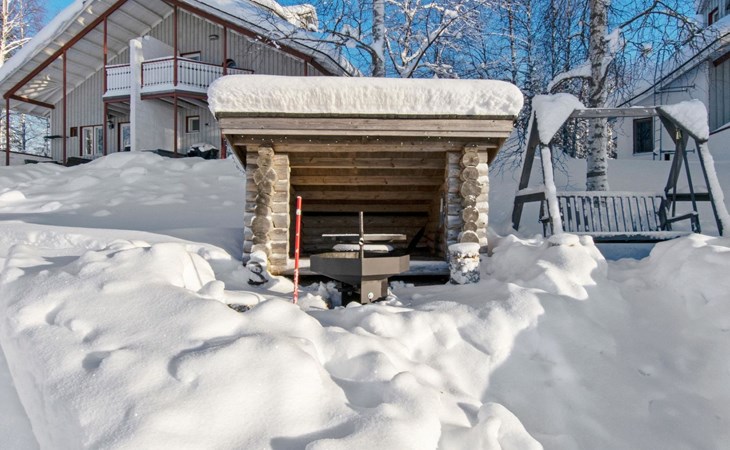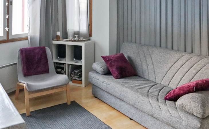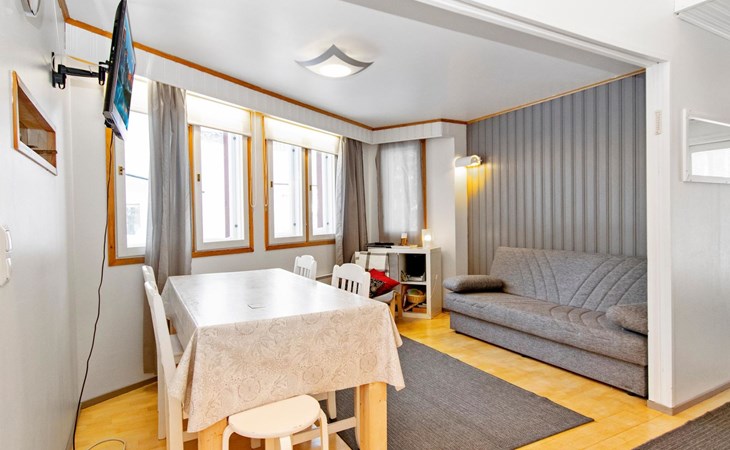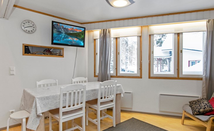 Maximal 1 Haustier/Hund erlaubt. Eine Doppelhaushälfte im Tourismuszentrum Ukkohalla, 43m2 + Dachboden 10m2, Baujahr 1989, Küche, Schlafzimmer, Dachboden, Sauna, Duschraum/Toilette, Balkon, Terrase, Kamin. Steile Treppe zum Dachboden. Doppelbett im Schlafzimmer, zwei Betten (80 cm) auf dem Dachboden und Schlafsofa im Wohnzimmer. Der Preis beinhaltet 1 Beutel Brennholz. Zur Mitbenutzung mit den Nachbarhäusern: Kinderfreundlicher Strand und Boot (Schwimmwesten für 4 Personen), Grill. In der Sommersaison 2x SUP Board Verleih, gegen Aufpreis von € 50/Reservierungszeitraum, verfügbar. Ukkohalla: Tourismuszentrum am Syväjärvi-See mit Informationszentrum, Geschäft, Restaurant, Spa, Pistenzentrum, Schneemobilspuren, Skipisten, Programmdienstleistungen, Strand (weitere Informationen unter www.ukkohalla.fi). Entfernung zu den Ukkohalla-Diensten 1.0 km, Kajaani Flughafen 86 km, Oulu 170 km, Helsinki 650 km, Bushaltestelle Hyrynsalmi 18 km, Bahnhof Kontiomäki 66 km. Haustiere sind erlaubt, gegen Aufpreis von € 25/Reservierung, bei nach 11.2.2020 vorgenommenen Buchungen. Blick über die Pisten und den Syväjärvi-See. Das Ferienhaus ist am Anreisetag um 16:00 Uhr verfügbar - am Abreisetag bis 12:00 Uhr.