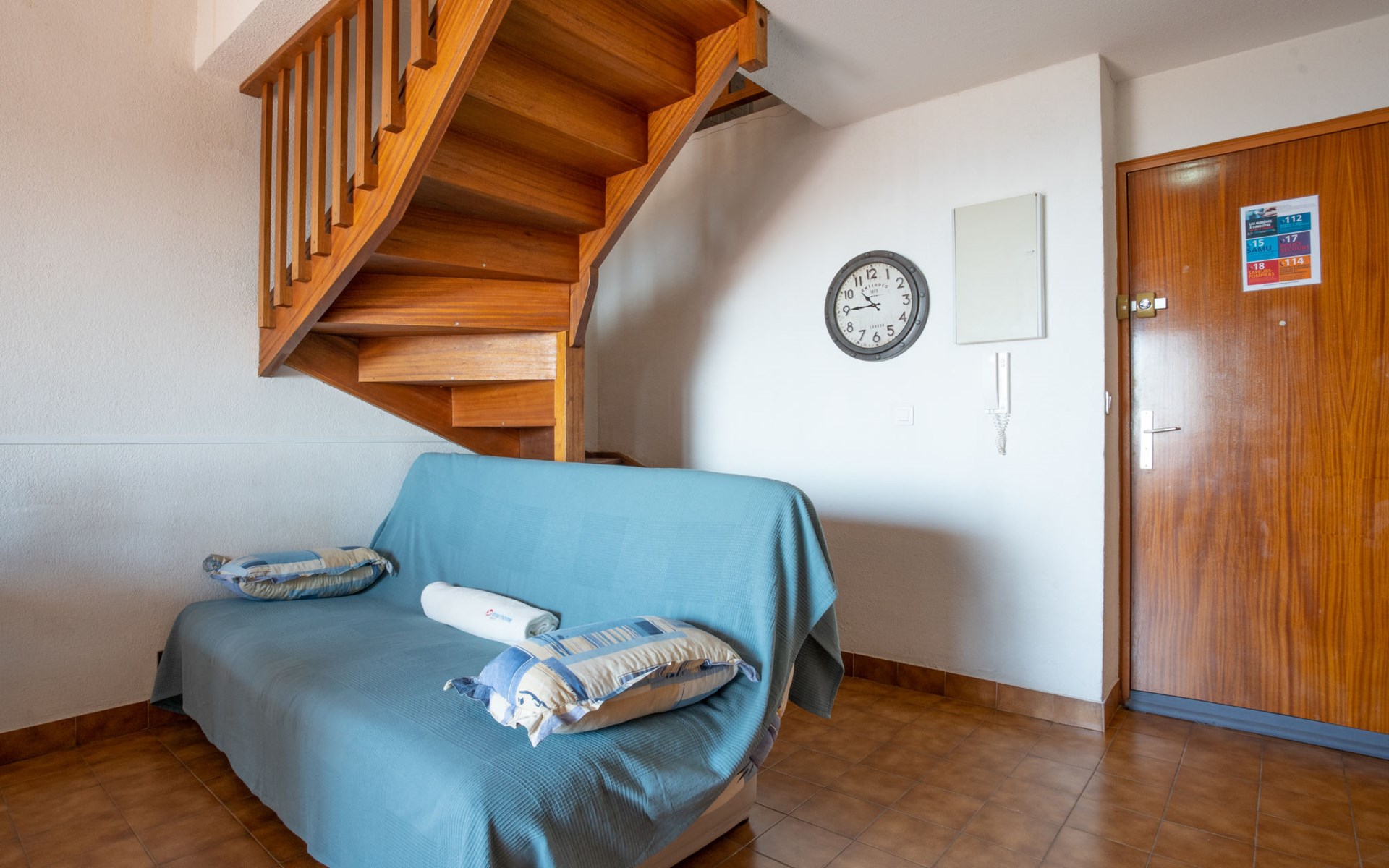 Mehrfamilienhaus "Le Victoria", auf 4 Stockwerken. Im Ortszentrum von St Aygulf, 300 m vom Meer, 300 m vom Strand, an einer Strasse. In der Anlage: Fahrstuhl. Öffentliche Parkplätze auf der Strasse. Einkaufsgeschäft 100 m, Einkaufszentrum 5 km, Zentrum zu Fuss in 2 Minuten erreichbar, Bushaltestelle "Grand Parc" 220 m, Bahnstation "Fréjus" 6 km, Sandstrand "de Saint-Aygulf" 800 m, Park "ARECA" 500 m, Tauchzentrum 6 km, Thermalbad "Thalasso de Port Fréjus" 6 km. Jacht-Hafen 800 m, Golfplatz (18 Loch) 8 km, Segelschule 7 km, Reitstall 1 km, Sportzentrum 200 m. Nahe gelegene Sehenswürdigkeiten: Aqualand, Luna Park 5 km, Fréjus 6 km, Saint-Raphael 8 km, Saint Tropez 29 km, Cannes 45 km, Nice 71 km. Bekannte Skigebiete sind gut erreichbar: Auron, Isola 2000 150 km. Bekannte Seen in der Umgebung sind gut erreichbar: Lac de St Cassien 45 km, Lac du Du Verdon 90 km. Wandergebiete: Estérel 16 km, Sentier du Littoral 200 m. Die Schlüsselübergabe findet bei der Agentur Interhome in Saint Aygulf statt.
