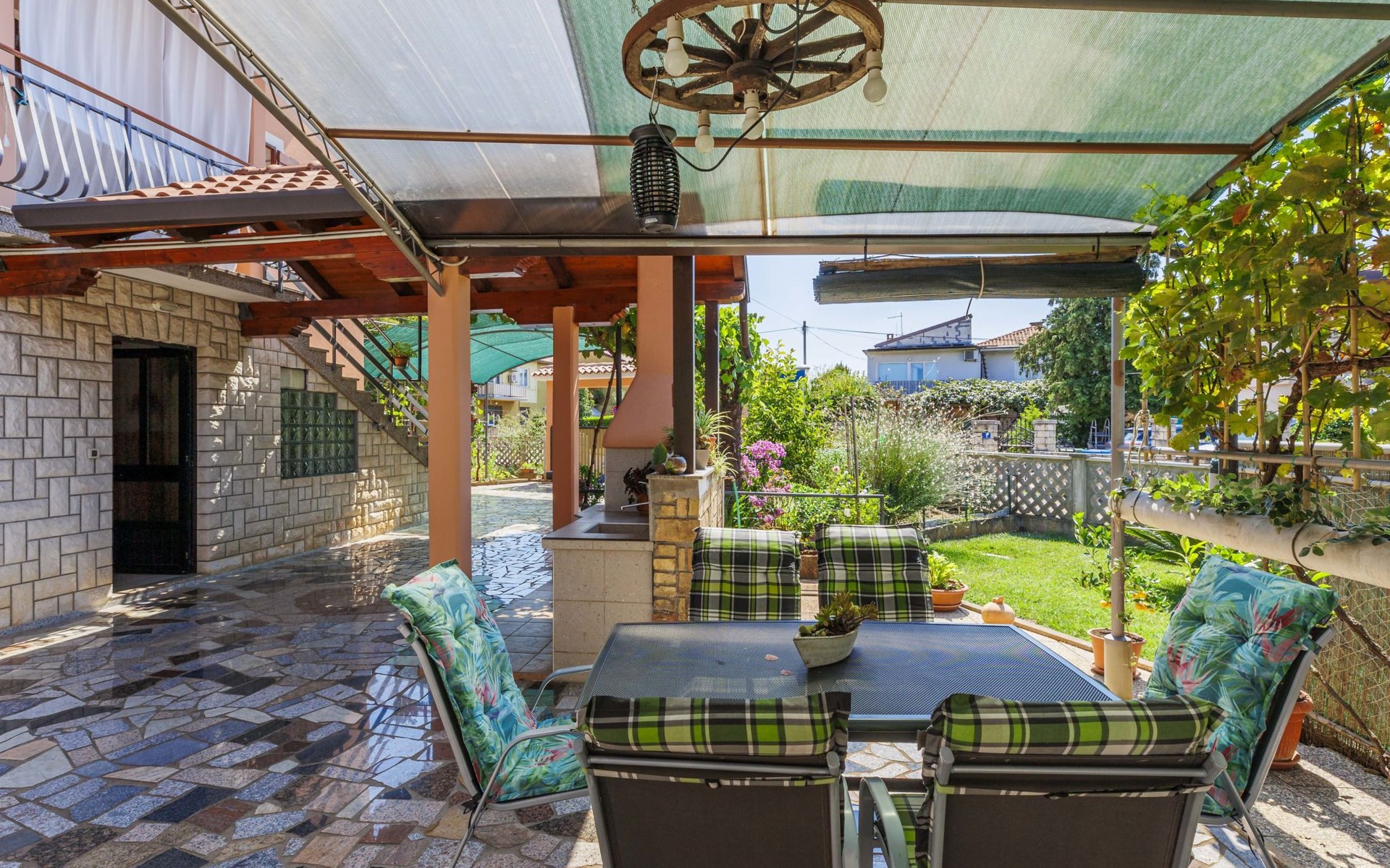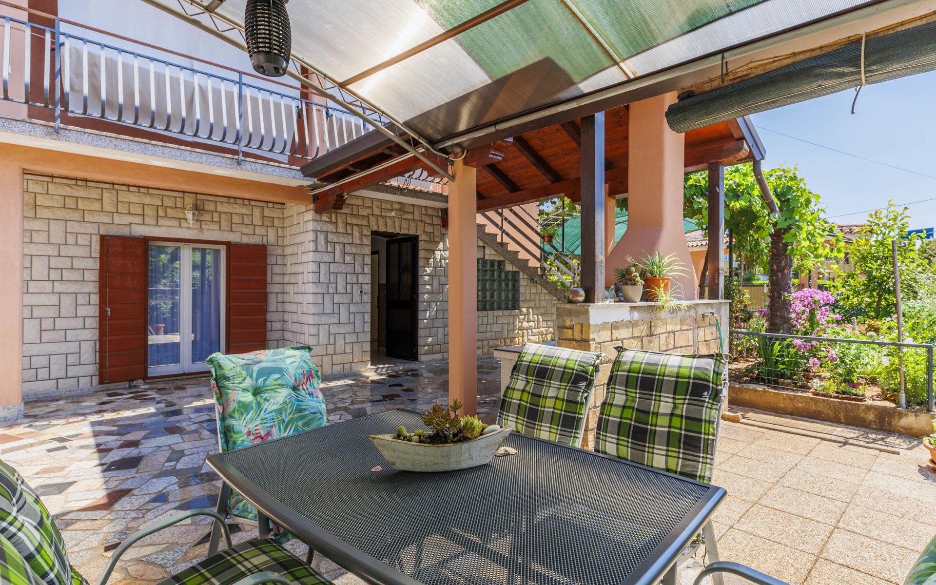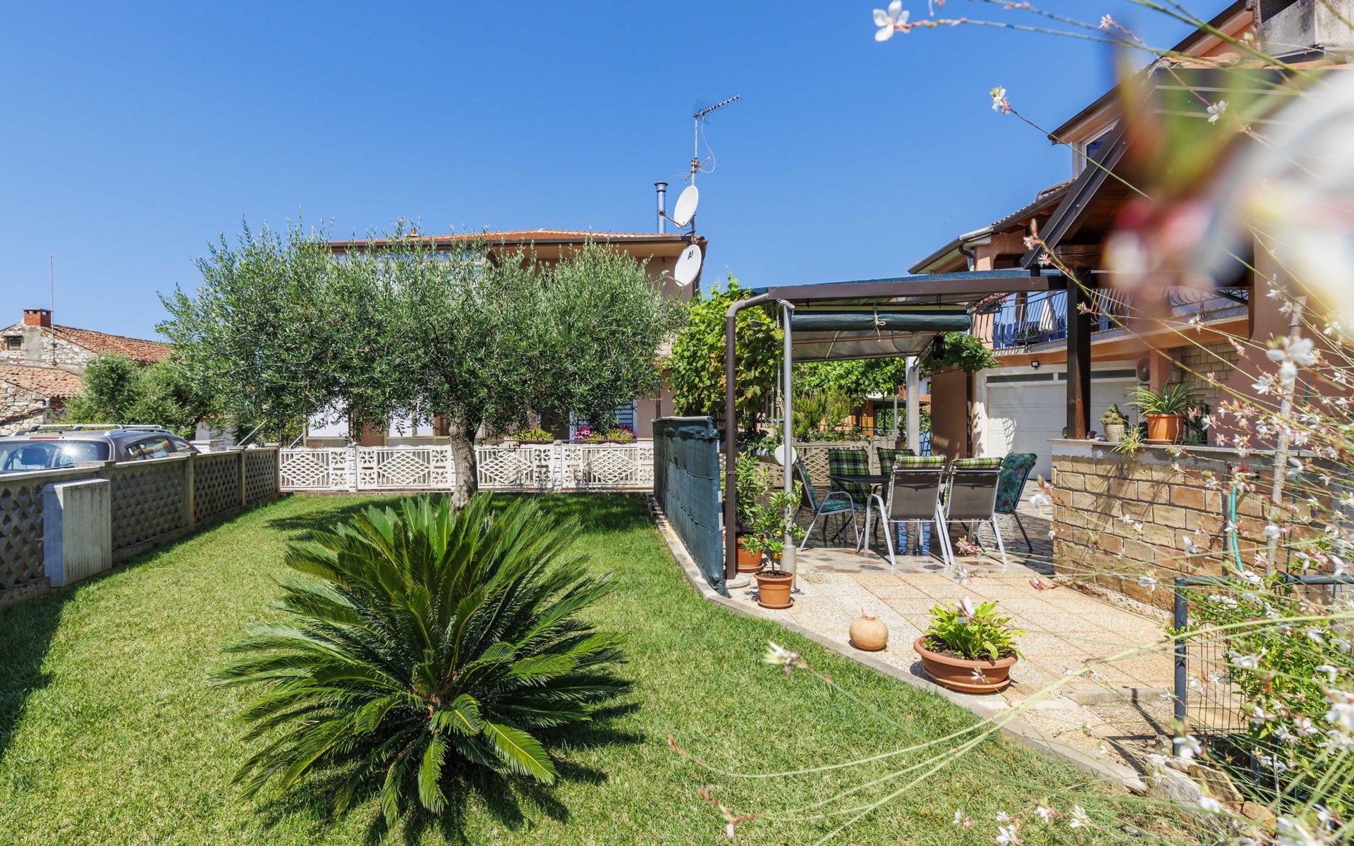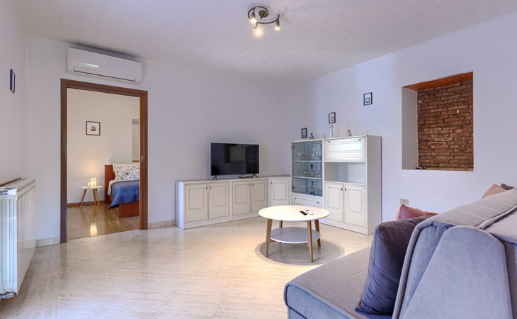 Schönes Zweifamilienhaus "Bumbak". 500 m vom Zentrum von Umag, ruhige, sonnige Lage, 400 m vom Meer, 700 m vom Strand. Zur Mitbenutzung: Grundstück 200 m2 (eingezäunt). Gartenmöbel, Grill. Im Hause: Internetzugang. Parkplatz beim Haus auf dem Grundstück. Einkaufsgeschäft, Restaurant 50 m, Bushaltestelle 1.1 km, Strandbad 700 m. Golfplatz (18 Loch) 10 km, Tennis 1 km, Wanderwege ab Haus 1 km, Radweg 1 km, Kinderspielplatz 20 m. Nahe gelegene Sehenswürdigkeiten: aquapark 16 km.