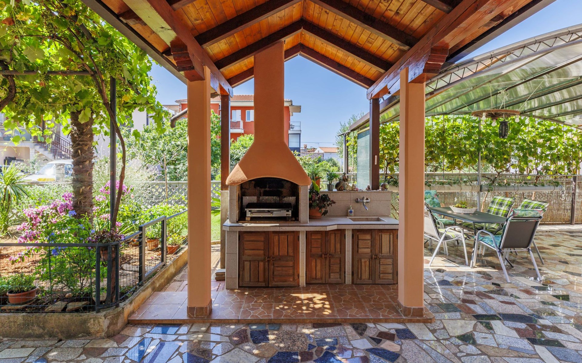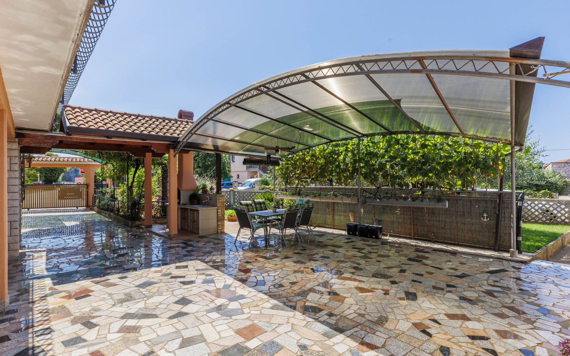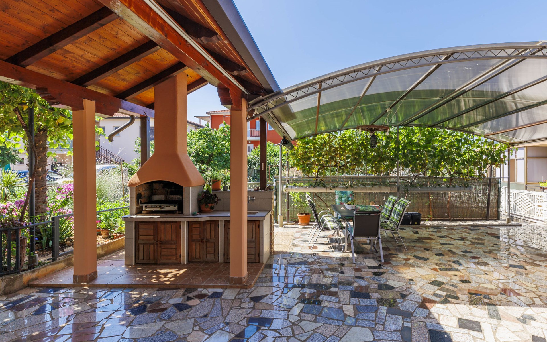 Schönes Zweifamilienhaus "Bumbak". 500 m vom Zentrum von Umag, ruhige, sonnige Lage, 400 m vom Meer, 700 m vom Strand. Zur Mitbenutzung: Grundstück 200 m2 (eingezäunt). Gartenmöbel, Grill. Im Hause: Internetzugang. Parkplatz beim Haus auf dem Grundstück. Einkaufsgeschäft, Restaurant 50 m, Bushaltestelle 1.1 km, Strandbad 700 m. Golfplatz (18 Loch) 10 km, Tennis 1 km, Wanderwege ab Haus 1 km, Radweg 1 km, Kinderspielplatz 20 m. Nahe gelegene Sehenswürdigkeiten: aquapark 16 km.