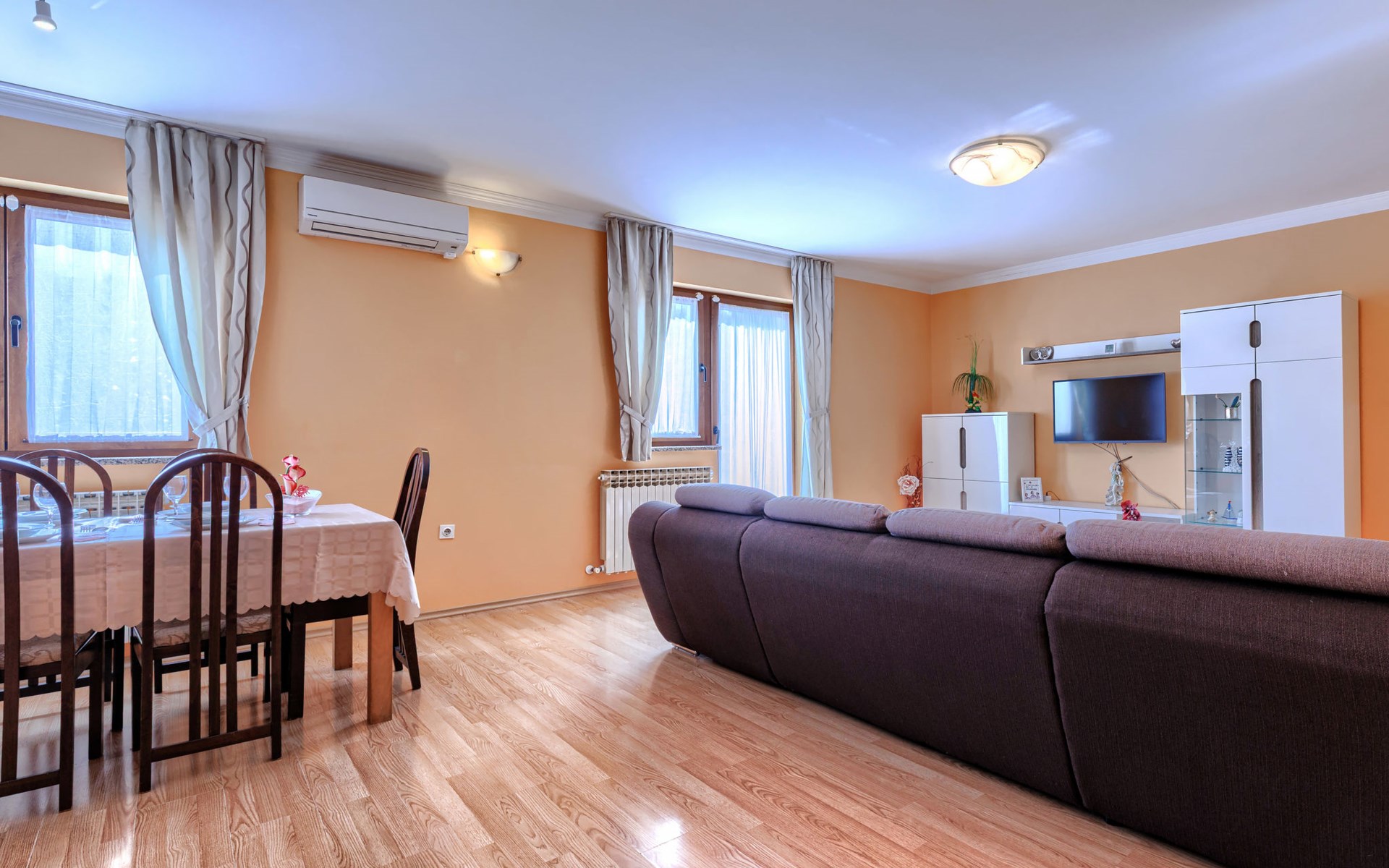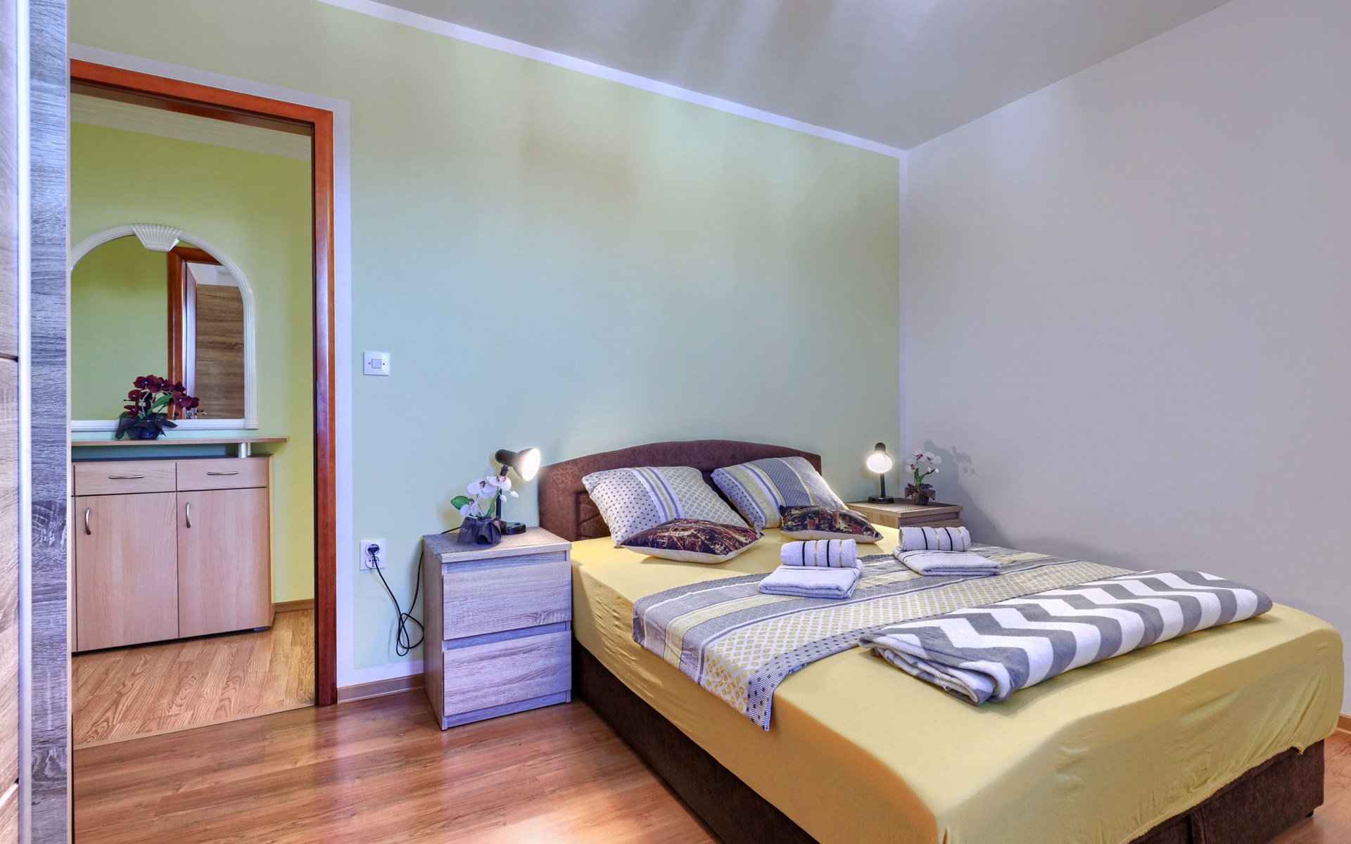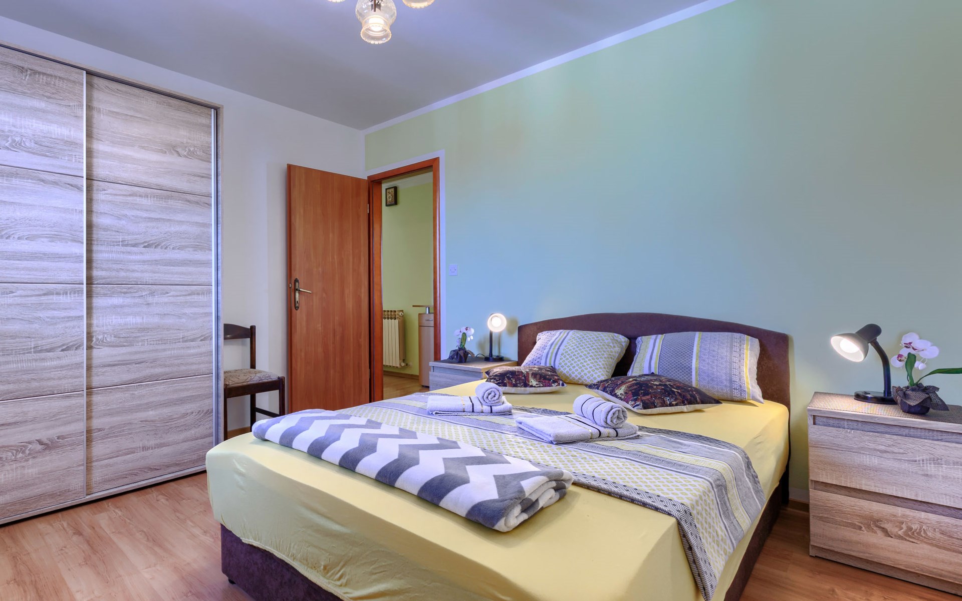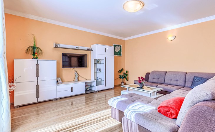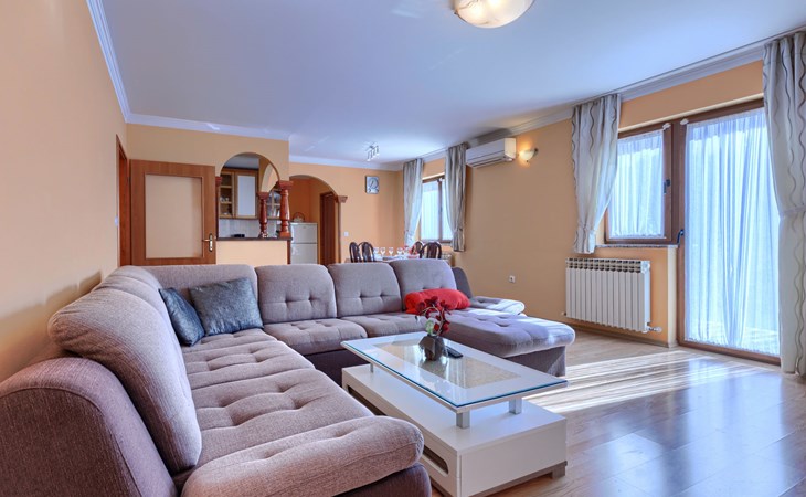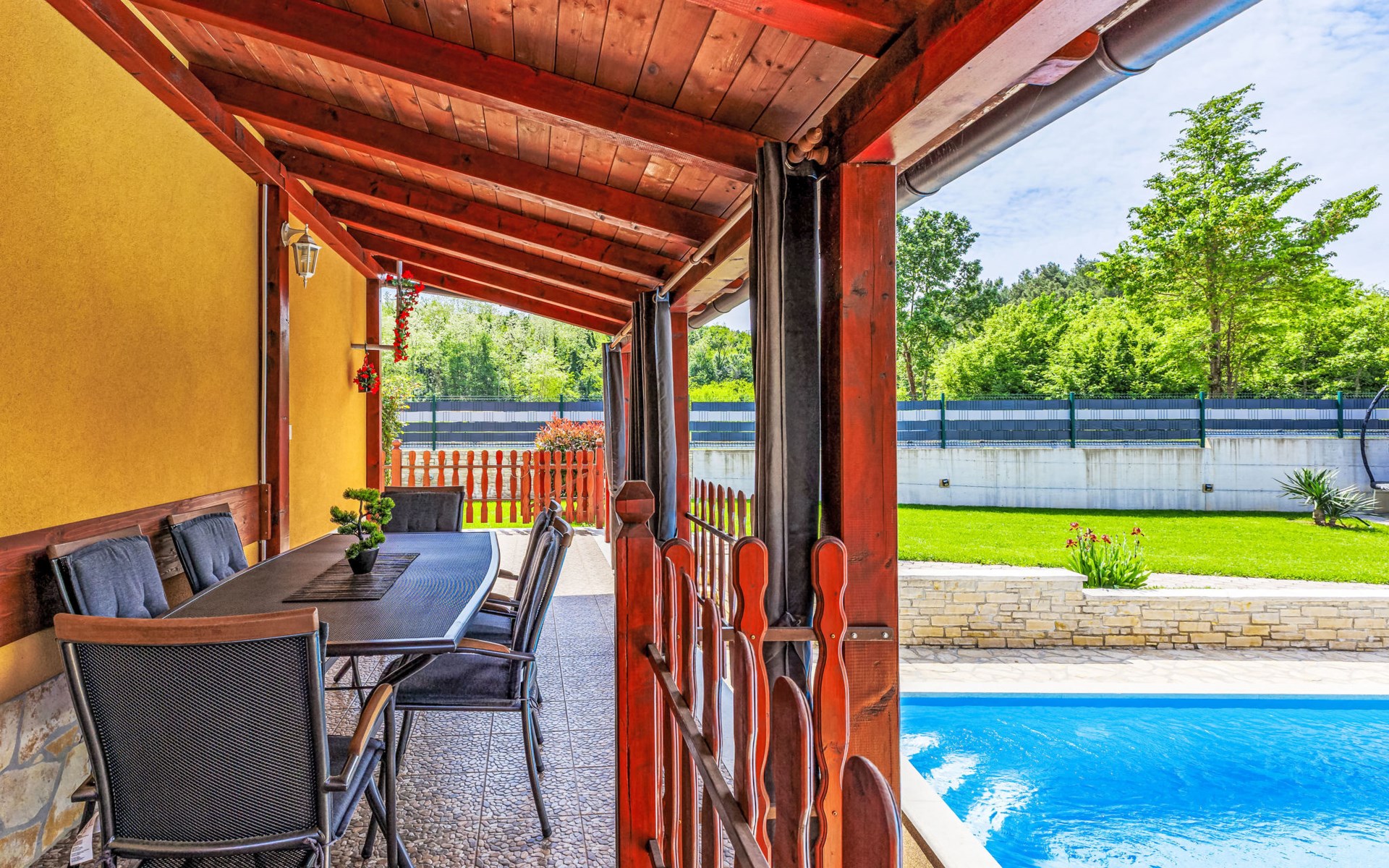 Zweifamilienhaus "Soriso", auf 2 Stockwerken. Im Weiler Rapki, 7 km vom Zentrum von Motovun, 2 km vom Zentrum von Karojba, 19 km vom Zentrum von Poreč, 19 km vom Meer. Zur Alleinbenutzung: Grundstück 450 m2 (eingezäunt) mit Rasen, Schwimmbad eckig (8 x 4 m, 32 m2, 150 cm tief, saisonale Verfügbarkeit: 15.Mai. - 15.Okt.) mit Innentreppe. Aussendusche, Gartenmöbel, Grill, Kinderspielplatz (Schaukel). Im Hause: Internetzugang, Trampolin, Waschmaschine. Parkplatz (für 2 Autos) beim Haus auf dem Grundstück. Einkaufsgeschäft 2 km, Restaurant 2 km, Bushaltestelle 18 km, Bahnstation 18 km, Kieselstrand 19 km. Der Besitzer akzeptiert keine Jugendgruppen. Bitte beachten: Der Besitzer wohnt im selben Haus. Videoüberwachung der Einfahrt und des Parkplatzes.