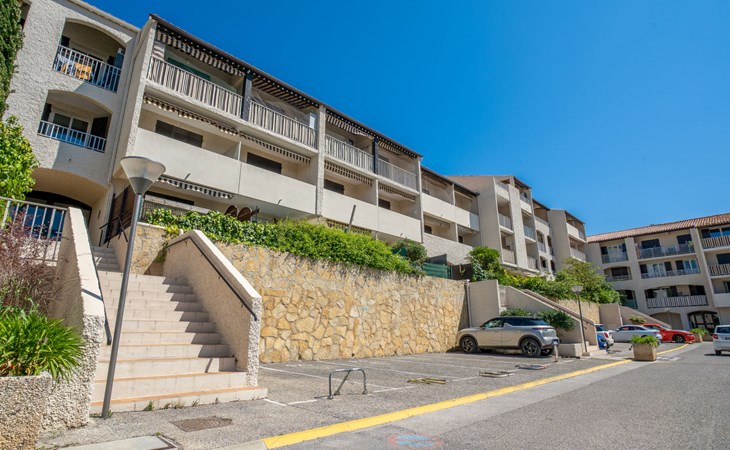 Residenz "Les Aigues Marines", auf 3 Stockwerken. Im Ort, 2 km vom Zentrum von Saint Cyr sur Mer, erhöhte Lage in einem Wohnquartier, 600 m vom Meer, 600 m vom Strand, an einer Strasse, im Grünen. Parkplatz (beschränkte Anzahl), öffentliche Parkplätze extra. Lebensmittelgeschäft 200 m, Restaurant 500 m, Bushaltestelle "Le Viguier" 2.3 km, Bahnstation "Saint Cyr les Lecques-La Cadière" 3.1 km, Sandstrand "La Madrague", Steinstrand 600 m. Sporthafen 500 m, Golfplatz (18 Loch) 4 km. Nahe gelegene Sehenswürdigkeiten: Aqualand 3 km, Sentier du Littoral 1 km. Wandergebiete: Sainte Baume, Sainte Victoire, Calanques Port-Cros, Porquerolles, Ile verte, Embiez, Figuerolles, Cassis. Bitte beachten: Die Schlüsselübergabe findet bei der Agentur INTERHOME in St Cyr La Madrague statt. Das Foto ist nur ein Hausbeispiel. Weitere Unterkünfte sind buchbar.
