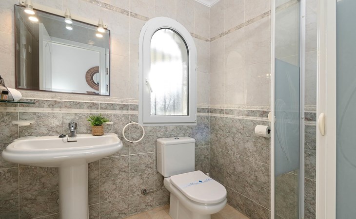- 2 Badezimmer, jedes mit Einzelwaschbecken, Dusche und Toilette