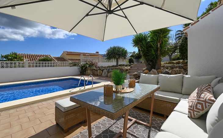 Wunderbare und komfortable Villa mit privatem Pool in Benitachell, Costa Blanca, Spanien, für 6 Personen. Das Haus befindet sich in einem Wohngebiet am Strand und ist 5 km von Xàbia (Javea) entfernt.
